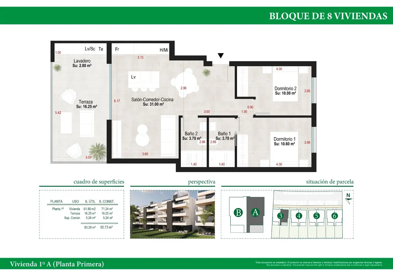 NOWE APARTAMENTY W CONDADO DE ALHAMA GOLF COURS Nowe apartamenty z dwiema sypialniami i dwiema łazienkami z widokiem na pole golfowe ALHAMA SIGNATURE GOLF, wspaniałe 18-dołkowe pole golfowe zaprojektowane przez Jacka Nicklausa. CONDADO DE ALHAMA to fantastyczny ośrodek golfowy z wieloma udogodnieniami i usługami. Centrum handlowe, centrum sportowe, szereg barów i restauracji, supermarket… i ponad 25 basenów i ogrodów. Tylko 18 minut samochodem od nowego międzynarodowego lotniska regionu Murcia. Apartamenty mają powierzchnię od 73,88m2 do 75,22m2 i składają się z 2 sypialni, 2 łazienek, otwartego salonu-kuchni-jadalni o powierzchni 26,80m2 oraz tarasu o powierzchni 17m2. Dołączony: Parking Kompletna łazienka Wstępna instalacja klimatyzacji Wideodomofon Ta promocja obejmuje całodobowy system nadzoru każdego dnia w roku. Będziemy również cieszyć się wspaniałymi widokami na pole golfowe i będziemy mogli być na plażach Mazarrón zaledwie 15 minut jazdy samochodem.