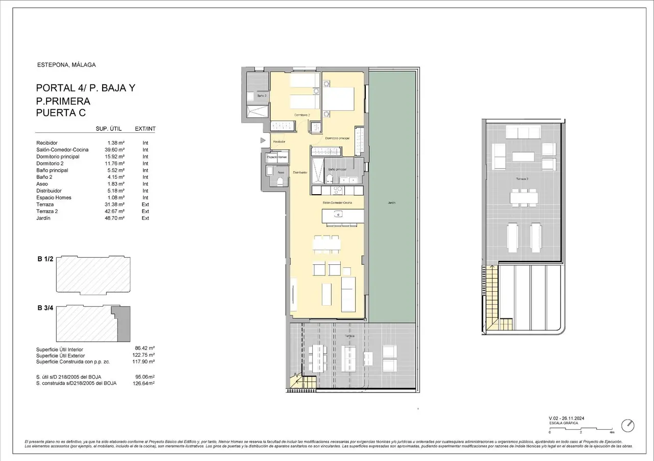 Luksusowe życie nad morzem: Ekskluzywna nowa konstrukcja w Esteponie Doskonała lokalizacja w Esteponie Ten ekskluzywny kompleks 25 luksusowych rezydencji znajduje się w jednym z najbardziej dynamicznych i poszukiwanych obszarów Estepony. Położona zaledwie 400 metrów od spokojnych plaż Arroyo Vaquero, nieruchomość oferuje idealne połączenie naturalnego piękna i nowoczesnej wygody. Położona w zachodniej części Estepony, w pobliżu spokojnej dzielnicy Arroyo Enmedio, lokalizacja zapewnia łatwy dostęp zarówno do tętniącego życiem centrum miasta, jak i spokoju otaczającego wybrzeża. Estepona, znana jako „Ogród Costa del Sol”, to śródziemnomorski klejnot. Urokliwe brukowane uliczki, ozdobione kolorowymi kwiatami i tętniąca życiem przystań odzwierciedlają połączenie tradycji i współczesnego uroku miasta. Z ponad 20 kilometrami plaż, Estepona jest rajem dla tych, którzy szukają luksusowego i wyluzowanego stylu życia. Wyjątkowa łączność Inwestycja jest strategicznie zlokalizowana, aby zapewnić doskonałą łączność z kluczowymi punktami zainteresowania: Centrum miasta Estepona: 4 km (8 minut jazdy) Lotnisko w Maladze: 82 km (około 1 godziny jazdy samochodem) Lotnisko w Gibraltarze: 45 km (35 minut jazdy samochodem) Przystań Estepona: 5 km (10 minut jazdy samochodem) Pole golfowe Estepona: 3 km (5 minut jazdy) Centrum handlowe Laguna Village: 7 km (12 minut jazdy) Niezrównane udogodnienia Kompleks oferuje wyjątkową gamę udogodnień, które poprawią Twój styl życia: Ogrody krajobrazowe: Starannie zaprojektowane tereny zielone otaczające osiedle tworzą oazę piękna i spokoju. Obszary te zachęcają mieszkańców do relaksu, cieszenia się przyrodą lub odpoczynku z książką w ręku. Centralny basen: Duży odkryty basen służy jako centralny element, oferując orzeźwiającą ucieczkę w słoneczne dni i spokojną przestrzeń do relaksu. W pełni wyposażona siłownia: Dogodnie zlokalizowana w pobliżu basenu siłownia zapewnia nowoczesną przestrzeń dla entuzjastów fitnessu, aby utrzymać zdrowy i aktywny tryb życia. Elegancja i komfort w każdym detalu Rezydencje zostały zaprojektowane z myślą o połączeniu luksusu i funkcjonalności. Podłogi wyłożone dużymi płytkami porcelanowymi, rozległe okna zapewniające dużą ilość naturalnego światła i przestronne układy zapewniają komfort i wyrafinowanie. Każdy dom posiada tarasy lub solaria, idealne do spożywania posiłków na świeżym powietrzu lub relaksu, podziwiając wspaniałe widoki na morze. Odkryj swój wymarzony dom Nie przegap tej wyjątkowej okazji, aby zamieszkać w jednej z najbardziej prestiżowych inwestycji w Esteponie. Skontaktuj się z nami już dziś, aby umówić się na oglądanie i doświadczyć idealnego połączenia luksusu, komfortu i śródziemnomorskiego uroku.
