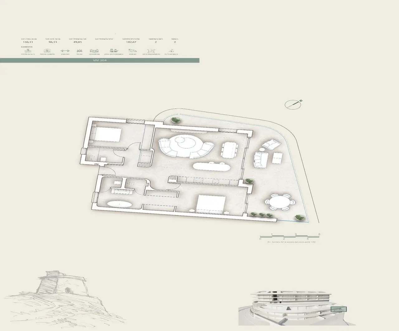 Luksusowe apartamenty z widokiem na morze, 100 m od plaży w Carvajal, Fuengirola Nowoczesny design i spokój nadmorskiej okolicy Ta ekskluzywna nowa inwestycja obejmująca 44 luksusowe domy znajduje się w Carvajal, Fuengirola, zaledwie 100 m od plaży. Zaprojektowana tak, aby połączyć nowoczesną architekturę ze spokojnym stylem życia nad Morzem Śródziemnym, każda nieruchomość posiada przestronne tarasy, otwarty widok na morze i wnętrza wypełnione naturalnym światłem. Projekt został starannie przemyślany, aby stworzyć spokojne otoczenie, w którym łączą się komfort, prywatność i piękno. Carvajal i Torreblanca należą do najbardziej pożądanych dzielnic mieszkaniowych Fuengirola, znanych z bliskości morza, doskonałych połączeń komunikacyjnych i swobodnej atmosfery, a jednocześnie położonych w pobliżu tętniącego życiem centrum miasta. Przestronne domy z wysokiej jakości wykończeniem Każdy apartament posiada 2 lub 3 miejsca parkingowe i 1 pomieszczenie gospodarcze. Domy są wykończone wysokiej jakości materiałami i luksusowymi elementami, takimi jak duże płytki podłogowe i ścienne, w pełni wyposażone kuchnie z urządzeniami Miele, łazienki z toaletką, lustrem i kabiną prysznicową oraz w pełni zainstalowaną klimatyzacją kanałową. System aerotermiczny zapewnia ciepłą wodę i ogrzewanie podłogowe w całym obiekcie, gwarantując energooszczędność i komfort przez cały rok. Wyjątkowe pomieszczenia wspólne i udogodnienia w stylu kurortowym Pomieszczenia wspólne są jedną z głównych atrakcji tej inwestycji, oferując udogodnienia rzadko spotykane w projektach mieszkaniowych: Pomieszczenie socjalne Gastroteca Przestrzeń coworkingowa W pełni wyposażona siłownia Kryty basen z podgrzewaną wodą Basen zewnętrzny z sauną i szatniami Taras zewnętrzny z kominkiem Recepcja z usługami concierge Panoramiczna winda Poczta z szafkami na przesyłki Przestrzenie te zostały zaprojektowane z myślą o poprawie samopoczucia, życia towarzyskiego i wygody mieszkańców. Doskonała lokalizacja w Fuengirola, blisko wszystkiego Inwestycja cieszy się doskonałą lokalizacją w pobliżu wszystkich usług i obiektów rekreacyjnych. Plaża 0,1 km Los Boliches 2 km Centrum miasta Fuengirola 3 km Zamek Sohail 5 km Reserva del Higueron i restauracja Sollo z gwiazdką Michelin 7 km Lotnisko w Maladze 25 km Miasto Malaga 30 km Marbella i Puerto Banus 35 km Torrequebrada Golf 8 km Przystań Benalmadena 10 km Idealna inwestycja i śródziemnomorski styl życia Fuengirola jest jednym z najbardziej dynamicznych nadmorskich miast na Costa del Sol, oferującym międzynarodowe szkoły, obiekty sportowe, centra handlowe i przyjazną, wielokulturową społeczność. Dzięki idealnej równowadze między morzem, górami i życiem miejskim, jest to doskonała okazja zarówno dla osób poszukujących odpowiedniego stylu życia, jak i inwestorów. Skontaktuj się z nami już dziś, aby uzyskać więcej informacji lub umówić się na prywatną wizytę w tych wyjątkowych domach z widokiem na morze w Carvajal, Fuengirola. 968