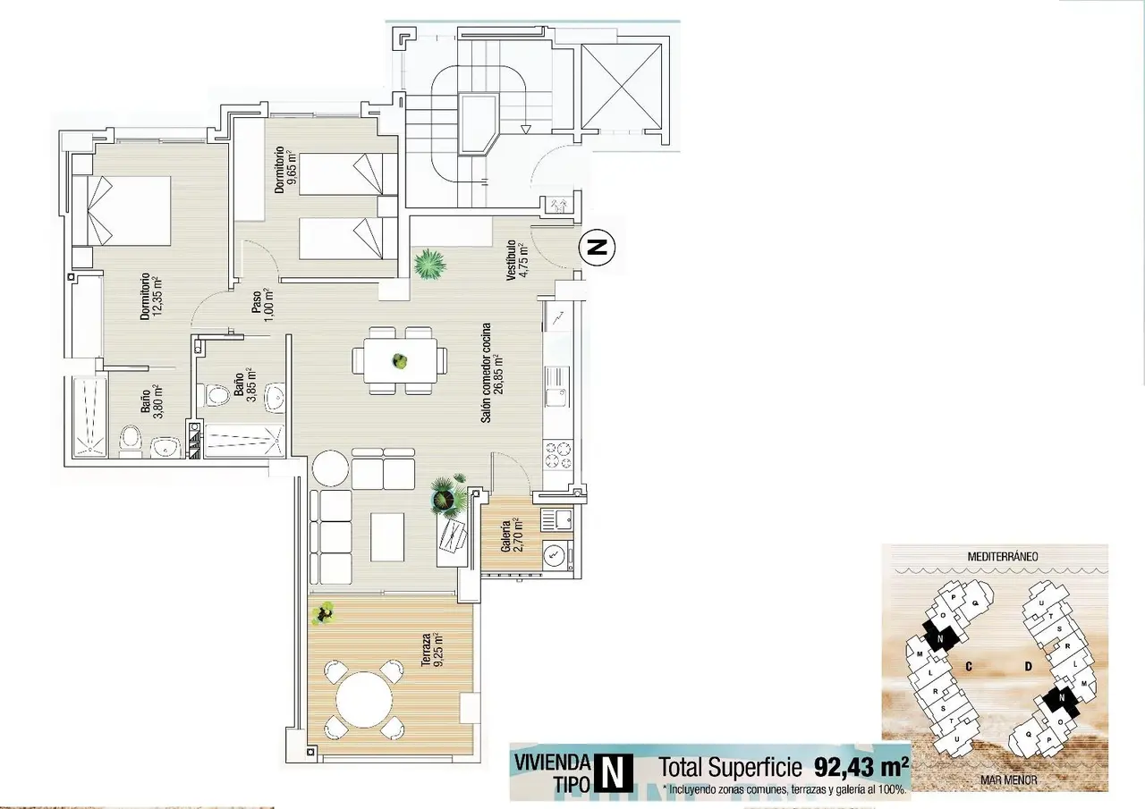 RYNEK PIERWOTNY KOMPLEKS MIESZKALNY W LA MANGA Rynek Pierwotny kompleks mieszkalny znajduje się w wyjątkowym i szczególnym miejscu, między dwoma morzami, w uprzywilejowanej lokalizacji i ze wszystkimi usługami, których możesz potrzebować na wyciągnięcie ręki w regionie Murcji, na pięknym wybrzeżu z przezroczystymi i płytkimi plażami. W tym kompleksie mieszkalnym apartamenty zostały zaprojektowane tak, aby maksymalnie wykorzystać każdy zakątek nieruchomości, a także wybór materiałów i projekt domów. Żyj w świecie wrażeń i przyjemnych chwil ze wszystkimi usługami i zajęciami, których pragniesz na wyciągnięcie ręki. Instalacje – Klimatyzacja: System klimatyzacji za pomocą kanałów, na ciepło i zimno, w całym domu (z wyjątkiem dystrybutorów i łazienek) i obsługiwany przez centralną konsolę. Urządzenia elektryczne: Piekarnik ze stali nierdzewnej. Czarna płyta ceramiczna z trzema palnikami. Lodówka ze stali nierdzewnej. Okap zintegrowany z meblami. Zintegrowana zmywarka. Części wspólne: Dostęp do budynku przez białe drzwi PCV i podwójne szyby z komorą powietrzną. Hole wejściowe i stopnie schodów specjalnie ozdobione krajowym marmurem. Biała, lakierowana termicznie aluminiowa poręcz na wewnętrznych klatkach schodowych. Oświetlenie wykrywające obecność w piwnicy i wewnętrznych częściach wspólnych. Biała segmentowa brama garażowa z napędem silnikowym. Balustrady urbanistyczne ze stali nierdzewnej. System wideodomofonowy. Antena satelitarna z kanałami europejskimi. Basen z zagospodarowanym solarium. La Manga del Mar Menor to naturalny pas lądu otoczony dwoma morzami, Mar Menor i Morzem Śródziemnym. Do tej rzadkości można dodać liczne opcje rekreacji i spędzania wolnego czasu, restauracje, supermarkety, centra medyczne, apteki, centra sportów wodnych, pola golfowe. La Manga znajduje się na północnym wybrzeżu Costa Calida i jest popularnym miejscem wypoczynku dla turystów. Wąski pas lądu oddzielający ciepłą lagunę od chłodniejszego morza ma unikalny mikroklimat. Jest to jeden z najbardziej egzotycznych obszarów w Hiszpanii. Lotnisko Corvera oddalone jest o około 1 godzinę jazdy samochodem, a lotnisko Alicante o około 2 godziny.