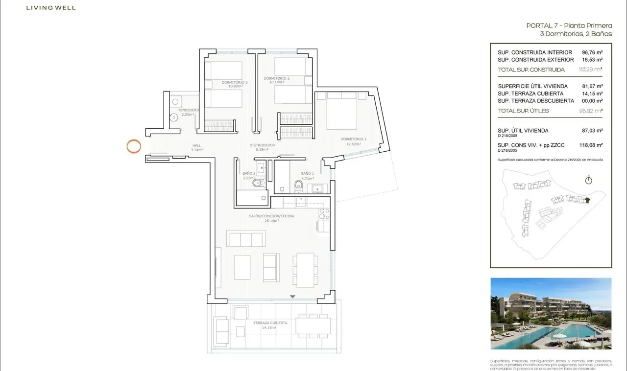 Nowe apartamenty z widokiem na morze w Mijas, Malaga – nowoczesne życie na Costa del Sol Ekskluzywna nowa inwestycja otoczona polem golfowym i naturą Ten nowy projekt mieszkaniowy w Mijas w Maladze oferuje 120 stylowych apartamentów z 1, 2 lub 3 sypialniami, starannie zaprojektowanych, aby zapewnić maksymalny komfort i nowoczesny styl życia. Kompleks, zbudowany na przestronnej działce o powierzchni 31 000 m², otoczony jest ogrodami krajobrazowymi, tworząc spokojne i zielone środowisko. Położenie na wzgórzu zapewnia spektakularny 180-stopniowy widok na morze, co sprawia, że jest to idealne miejsce do cieszenia się śródziemnomorskim klimatem przez cały rok. Apartamenty dostosowane do każdego stylu życia Domy są dostępne w różnych układach, w tym: Apartamenty na parterze z prywatnymi ogrodami Apartamenty na środkowych piętrach z przestronnymi tarasami Apartamenty typu penthouse z rozległymi tarasami na świeżym powietrzu, a niektóre z nich z prywatnymi solarium Wszystkie apartamenty mają otwarty układ, duże okna i wysokiej jakości wykończenia, które zapewniają jasność, funkcjonalność i elegancję. W pełni wyposażone kuchnie ze sprzętem AGD, klimatyzacja kanałowa i energooszczędna konstrukcja zapewniają nowoczesną wygodę. Udogodnienia w stylu kurortowym dla codziennego dobrego samopoczucia Ten kompleks mieszkaniowy oferuje szeroki wybór wspólnych przestrzeni przeznaczonych do relaksu, wellness i wypoczynku: Strefa wellness ze spa, podgrzewanym krytym basenem, sauną i salonem relaksacyjnym Centrum fitness z nowoczesnym sprzętem i przestrzeniami do aktywności fizycznej Strefa coworkingowa z naturalnym oświetleniem i strefami socjalnymi Baseny ze słoną wodą z ekologicznym systemem uzdatniania Strefa relaksu z grillem, idealna na spotkania towarzyskie Ścieżki spacerowe, boisko do siatkówki i putting green do zabawy na świeżym powietrzu Usługi concierge w zakresie prania, sprzątania, napraw i konserwacji wspólnych części Doskonała lokalizacja między La Cala de Mijas a Fuengirola Inwestycja jest strategicznie położona między La Cala de Mijas a Fuengirola, łącząc urok tradycyjnego andaluzyjskiego miasteczka nadmorskiego z energią nowoczesnego miasta. Najważniejsze odległości: La Cala de Mijas – 4 km Fuengirola – 5 km Costa del Sol Park – 1 km Cerrado del Águila Golf – 2 km El Chaparral Golf – 4 km Najbliższa plaża – 2 km Lotnisko w Maladze – 20 km Marbella – 30 km Żyj śródziemnomorskim stylem życia w Mijas To coś więcej niż tylko dom – to styl życia, w którym łączą się design, natura i komfort. Niezależnie od tego, czy szukasz miejsca do stałego zamieszkania, wakacyjnego wypoczynku, czy inwestycji, te apartamenty z widokiem na morze w Mijas stanowią doskonałą okazję. Skontaktuj się z nami już dziś, aby umówić się na wizytę i zapewnić sobie nowy dom na Costa del Sol.