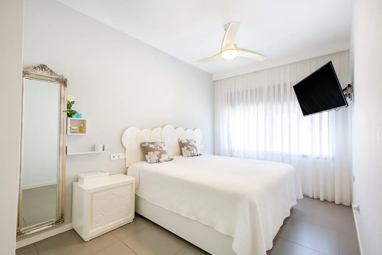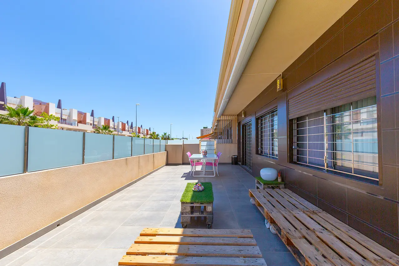 Przestronny bungalow na parterze w Torre de la Horadada. Ten nowoczesny, skierowany na południe dom oferuje 4 sypialnie, 3 łazienki, przestronny salon z jadalnią i otwartą kuchnią oraz bezpośrednie wyjście na taras i ogród o powierzchni 120 m². Znajduje się na terenie kompleksu, gdzie do dyspozycji Gości jest wspólny basen i ogród.