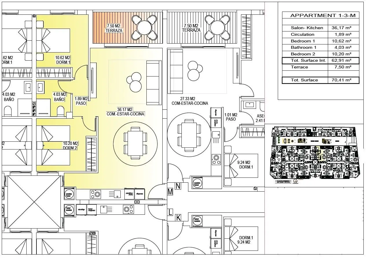 Nowoczesne apartamenty w centrum San Miguel de Salinas Współczesne życie w zdrowym śródziemnomorskim otoczeniu Położona w uroczej miejscowości San Miguel de Salinas, zaledwie 10 km od Morza Śródziemnego, ta nowa inwestycja mieszkaniowa oferuje idealną równowagę między nowoczesnym komfortem a naturalnym otoczeniem. Okolica ta znana jest z pobliskich słonych jezior i wyjątkowego mikroklimatu, uważanego za jeden z najzdrowszych w Europie. To spokojne, ale tętniące życiem miasteczko pozwala mieszkańcom cieszyć się autentycznym śródziemnomorskim stylem życia, a jednocześnie znajduje się w odległości spaceru od sklepów, restauracji, supermarketów i wszystkich niezbędnych usług. San Miguel de Salinas leży nieco w głębi lądu na południowym wybrzeżu Costa Blanca, oferując otwarte widoki, świeże powietrze i łatwy dostęp do plaż, pól golfowych i centrów handlowych. Stylowe apartamenty zaprojektowane z myślą o komforcie i wydajności Projekt składa się z dwóch nowoczesnych budynków oddzielonych zagospodarowanym ogrodem wspólnym. Dostępnych jest łącznie 56 nowoczesnych apartamentów z 1, 2 lub 3 sypialniami, każdy z prywatnym tarasem. Każdy dom został zaprojektowany z myślą o komforcie, estetyce i efektywności energetycznej, przy użyciu wysokiej jakości materiałów i nowoczesnych systemów izolacyjnych. Każdy apartament obejmuje: Bронированные входные двери Łazienki z szafkami pod umywalkę Preinstalacja klimatyzacji kanałowej Certyfikat energetyczny klasy A Rozkład i orientacja mieszkań zapewniają naturalne światło przez cały dzień, tworząc jasne i przytulne wnętrza, idealne zarówno do stałego zamieszkania, jak i do spędzania wakacji. Wyjątkowe przestrzenie wspólne do relaksu i życia towarzyskiego Przestrzeń wspólna na parterze została zaprojektowana jako centrum życia towarzyskiego osiedla, otoczona ogrodami krajobrazowymi, miejscami do siedzenia, parkingiem dla rowerów i placem zabaw dla dzieci. Jest to idealne miejsce spotkań dla mieszkańców w każdym wieku. Na dachu znajduje się imponująca strefa rekreacyjna o powierzchni 350 m2. Przestrzeń ta obejmuje basen o powierzchni 70 m2 z oddzielną strefą dla dzieci, pergole, leżaki i zacienione miejsca, umożliwiające mieszkańcom relaks przy podziwianiu panoramicznych widoków. Dach jest łatwo dostępny dzięki jednej z trzech wind i wyposażony w sanitariaty dla dodatkowego komfortu. Doskonała lokalizacja w pobliżu najważniejszych atrakcji Śródziemnomorskie plaże 10 km Centrum handlowe Zenia Boulevard 9 km Villamartin Golf 6 km Las Colinas Golf 8 km Marina Torrevieja 12 km Lotnisko w Alicante 60 km Lotnisko Murcia Corvera 55 km Inteligentna inwestycja na południowym wybrzeżu Costa Blanca Ten kompleks mieszkaniowy łączy w sobie nowoczesną architekturę, wysokiej jakości wykończenie i doskonałą lokalizację w centrum, co czyni go doskonałym wyborem do zamieszkania, spędzania wakacji lub inwestycji w wynajem. Skontaktuj się z nami już dziś, aby uzyskać więcej informacji lub umówić się na wizytę w tych nowoczesnych apartamentach w San Miguel de Salinas. 968