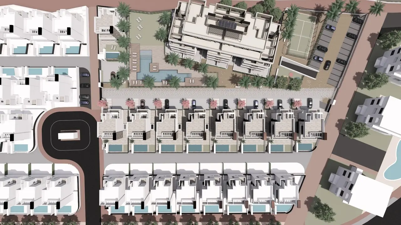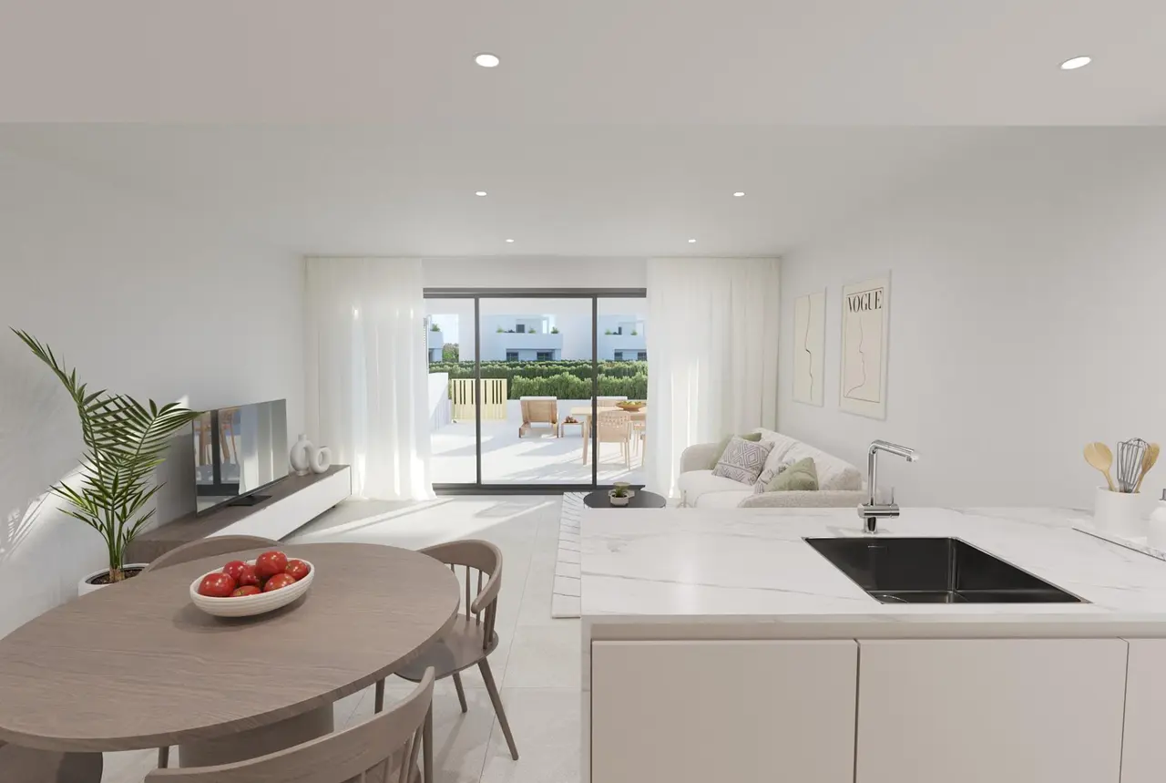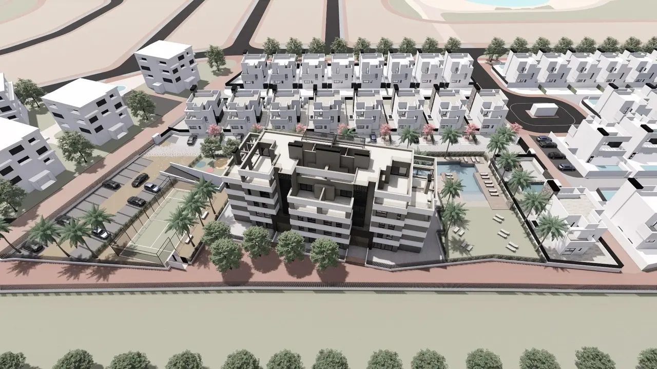 Ekskluzywne nowe apartamenty w prywatnym kurorcie 4 km od plaży Luksusowy kompleks mieszkalny z całodobową ochroną Położony w prestiżowym prywatnym kurorcie w prowincji Murcja, ten nowy kompleks mieszkaniowy oferuje 24 mieszkania o nowoczesnym designie, otoczone terenami zielonymi i z dostępem do imponującej gamy najwyższej klasy udogodnień i usług. Ośrodek ma całodobową ochronę, ograniczony dostęp i rozległe przestrzenie rekreacyjne, co czyni go idealną opcją dla osób poszukujących ekskluzywności, spokoju i uprzywilejowanego środowiska naturalnego. Nowoczesne apartamenty z różnymi opcjami układu Nieruchomości zostały zaprojektowane z wysokiej jakości wykończeniami i układem zoptymalizowanym pod kątem komfortu: Mieszkania z 2 i 3 sypialniami i 2 kompletnymi łazienkami. Kuchnia amerykańska zintegrowana z salonem, o nowoczesnym i funkcjonalnym designie. Duże tarasy z widokiem na tereny zielone. Mieszkania na parterze z prywatnym ogrodem, na środkowych piętrach z dużymi tarasami i penthousy z prywatnym solarium. Miejsce parkingowe i komórka lokatorska w cenie. Najwyższej jakości wyposażenie i instalacje Mieszkania wyposażone są w najnowocześniejsze materiały i technologie: Elektryczne rolety w sypialniach. Wysoce wydajny system aerotermalny do ciepłej wody użytkowej. W pełni zainstalowana klimatyzacja kanałowa (ciepło-zimno). Ogrzewanie podłogowe w łazienkach. Oświetlenie LED o niskim zużyciu energii. Lakierowana termicznie stolarka aluminiowa z mostkiem termicznym. Na terenie urbanizacji znajduje się wspólny basen, plac zabaw dla dzieci i kort do padla. Usługi kurortu Ośrodek, w którym znajduje się ta inwestycja, został zaprojektowany wokół imponującego terenu zielonego o powierzchni 126 000 m², który obejmuje: Pole do minigolfa. Korty tenisowe. Szlaki piesze i rowerowe. Place zabaw dla dzieci i tereny rekreacyjne. Dom klubowy z restauracją i pomieszczeniami socjalnymi. Parki dla psów. Spektakularne sztuczne jezioro o powierzchni 17 000 m² z krystalicznie czystą wodą, białymi piaszczystymi plażami i kilkoma barami plażowymi. Strategiczna lokalizacja w pobliżu plaż i udogodnień Ten ekskluzywny kompleks znajduje się w uprzywilejowanej lokalizacji, z łatwym dostępem do głównych atrakcji regionu: Plaża Los Alcazares – oddalona o mniej niż 4 km. Pola golfowe w pobliżu – kilka opcji w ciągu kilku minut. Cartagena – mniej niż 15 minut jazdy samochodem. Lotnisko Murcja – 22 km (około 20 minut jazdy). Zainwestuj w wyjątkowy styl życia w regionie Murcji Kompleks ten oferuje bezkonkurencyjne połączenie jakości, lokalizacji i udogodnień, idealne jako miejsce stałego zamieszkania, dom wakacyjny lub nieruchomość inwestycyjna. Skontaktuj się z nami już dziś, aby uzyskać więcej informacji lub umówić się na oglądanie.