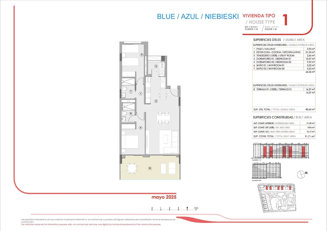 Nowe apartamenty w Punta Prima, zaledwie 250 metrów od morza Ekskluzywny kompleks mieszkaniowy z wysokiej klasy częściami wspólnymi na wybrzeżu Costa Blanca Przedstawiamy nowoczesny kompleks mieszkaniowy składający się z 250 apartamentów w Punta Prima, jednej z najbardziej poszukiwanych lokalizacji w Torrevieja. Położony zaledwie 250 metrów od morza, projekt ten oferuje wyjątkową okazję do zamieszkania w pobliżu plaży, z wszystkimi udogodnieniami prywatnego kurortu. Mieszkania z 2 i 3 sypialniami z przestronnymi tarasami Apartamenty są dostępne w konfiguracjach z 2 lub 3 sypialniami i 2 łazienkami, wszystkie z kuchnią amerykańską zintegrowaną z salonem, co maksymalizuje poczucie przestronności i naturalnego światła. Mieszkania na parterze mają prywatny ogród, mieszkania na środkowych piętrach oferują duże tarasy, a apartamenty na najwyższym piętrze mają solarium, aby cieszyć się słońcem przez cały rok. Każda jednostka posiada miejsce parkingowe i schowek, co zapewnia wygodę i dodatkową przestrzeń do przechowywania. Pomieszczenia wspólne dla całej rodziny Osiedle zostało zaprojektowane z myślą o wyjątkowej jakości życia. Wśród pomieszczeń wspólnych znajdują się trzy baseny (jeden z nich podgrzewany), siłownia z jacuzzi, kort do padla, boisko do gry w petanque i ogrody krajobrazowe. Najmłodsi mają do dyspozycji własny basen dla dzieci i plac zabaw zaprojektowany z myślą o ich bezpiecznej zabawie. Wysokiej jakości wykończenia i energooszczędność Zewnętrzna stolarka z PVC z przegrodą termiczną Podwójne szyby i rolety z napędem elektrycznym w sypialniach Umeblowana kuchnia z wyposażeniem AGD Łazienki wyposażone w kabinę prysznicową, szafkę, lustro i ogrzewanie podłogowe System klimatyzacji z pompą ciepła Wzmocnione drzwi wejściowe Parking dla rowerów Strategiczna lokalizacja z bliskością usług Punta Prima znajduje się zaledwie 5 km od centrum Torrevieja i posiada doskonałą infrastrukturę zdrowotną, edukacyjną i transportową. Międzynarodowe lotnisko w Alicante znajduje się zaledwie 45 km od hotelu. Plaża Punta Prima: 250 m Pole golfowe Villamartín: 7 km Centrum handlowe La Zenia Boulevard: 4 km Szpital Uniwersytecki w Torrevieja: 3 km Marina w Torrevieja: 6 km Idealna inwestycja na stałe lub na wakacje Ciesz się śródziemnomorskim otoczeniem z usługami dostępnymi przez cały rok, wysokiej jakości plażami i doskonałym połączeniem komunikacyjnym. Nie przegap okazji, aby nabyć swój nowy dom w jednej z najbardziej pożądanych lokalizacji na Costa Blanca. Skontaktuj się z nami już dziś, aby uzyskać więcej informacji lub umówić się na wizytę.