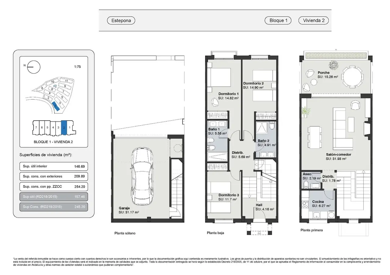 Nowoczesne domy w stylu śródziemnomorskim z widokiem na morze i pole golfowe w Esteponie na Costa del Sol Ekskluzywna nowa inwestycja w doskonałej lokalizacji Odkryj wyjątkową okazję do zamieszkania w samym sercu Costa del Sol, w jednej z najbardziej obiecujących dzielnic mieszkaniowych Estepony. Ta ekskluzywna nowa inwestycja obejmuje 87 stylowych domów szeregowych i bliźniaczych willi, idealnie położonych w zachodniej części Estepony, obok nowego szpitala High-Resolution Hospital i w pierwszej linii pola golfowego Azata Golf, w pobliżu pola golfowego Valle Romano. Ta tętniąca życiem okolica szybko staje się jedną z najbardziej prestiżowych i poszukiwanych lokalizacji mieszkaniowych w regionie. Przestronne domy zaprojektowane z myślą o nowoczesnym stylu życia Nieruchomości są rozmieszczone na dwóch głównych kondygnacjach oraz w piwnicy i oferują trzy sypialnie, dwie łazienki oraz toaletę dla gości. Każdy dom posiada duże prywatne tarasy, a wybrane jednostki wyposażone są w solarium na dachu z przepięknym widokiem na morze i okoliczne pola golfowe. Zaprojektowane w nowoczesnym stylu śródziemnomorskim domy oferują: Jasne i przestronne wnętrza Marmurowe podłogi Okna z podwójnymi szybami Elektryczne rolety Wanny z hydromasażem dla maksymalnego komfortu i relaksu Najwyższej klasy udogodnienia wspólne Ogrodzony kompleks mieszkaniowy oferuje wysokiej jakości udogodnienia, które poprawią jakość Twojego życia: Kryty i odkryty basen Spa i strefa wellness W pełni wyposażona sala fitness Ogrody krajobrazowe przeprojektowane tak, aby zapewnić spokój, harmonię i dobre samopoczucie Cała inwestycja, zarówno przestrzenie wewnętrzne, jak i zewnętrzne, jest obecnie w trakcie gruntownej renowacji, aby spełnić wysokie standardy elegancji, funkcjonalności i jakości. Doskonałe połączenia komunikacyjne i naturalne otoczenie Dzięki doskonałej lokalizacji zaledwie 2 km od plaży, inwestycja zapewnia łatwy dostęp do najważniejszych miejsc na wybrzeżu Costa del Sol: Centrum miasta Estepona – 5 km Marbella – 30 km Sotogrande – 35 km Międzynarodowe lotnisko w Maladze – 85 km Lotnisko w Gibraltarze – 45 km Pole golfowe Azata – w sąsiedztwie Valle Romano Golf – 1,5 km Port w Esteponie – 6 km Otoczona naturą i blisko wszystkich udogodnień, jest to lokalizacja, która oferuje zarówno spokój, jak i wygodę, dzięki czemu jest idealna dla rodzin, emerytów lub inwestorów poszukujących dochodowej okazji. Mieszkaj tam, gdzie inni spędzają wakacje Niezależnie od tego, czy szukasz domu wakacyjnego, stałego miejsca zamieszkania, czy też chcesz zainwestować w nieruchomości, ten projekt w Esteponie oferuje wszystko, co najlepsze w nowoczesnym życiu nad morzem. Skontaktuj się z nami już dziś, aby umówić się na wizytę i znaleźć swój idealny dom na Costa del Sol.