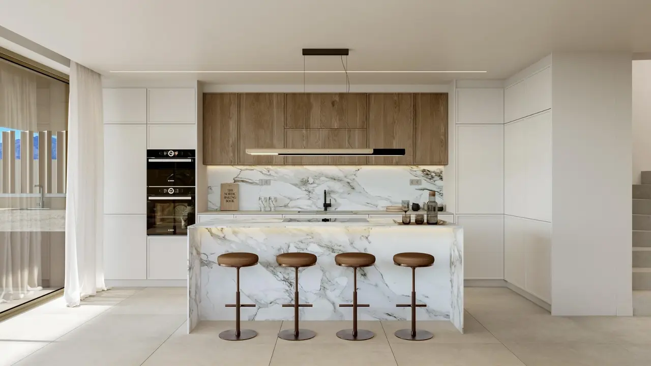 Nowoczesne bliźniacze wille nad morzem w Seghers Estepona Najlepsza lokalizacja mieszkaniowa w Seghers Estepona Ten atrakcyjny projekt nowych budynków mieszkalnych znajduje się w Seghers, jednej z najbardziej znanych i poszukiwanych dzielnic mieszkaniowych Estepony. Znana ze swojej spokojnej i ekskluzywnej atmosfery, Seghers oferuje zadbane ulice i niską gęstość zabudowy willi i kamienic. Kompleks znajduje się zaledwie 500 metrów od morza i niecałe 5 minut jazdy samochodem od mariny w Esteponie, gdzie dostępna jest szeroka gama restauracji, obiektów rekreacyjnych i usług codziennego użytku. Centrum miasta Estepona jest również łatwo dostępne, co sprawia, że lokalizacja ta jest idealna zarówno do stałego zamieszkania, jak i jako drugi dom. Ekskluzywna inwestycja nowoczesnych willi bliźniaczych Projekt składa się z zaledwie 16 nowoczesnych willi bliźniaczych, zaprojektowanych tak, aby przez cały rok cieszyć się stylem życia na świeżym powietrzu na Costa del Sol. Każdy dom został starannie zaprojektowany, aby zapewnić jasne wnętrza i płynne połączenie przestrzeni wewnętrznej z zewnętrzną. Czyste linie architektoniczne i elegancki design tworzą ponadczasowe środowisko mieszkalne w bardzo atrakcyjnej nadmorskiej okolicy. Prywatne ogrody, baseny i solaria na dachu Każda willa oferuje 3 sypialnie, prywatny ogród i własny basen, tworząc idealną przestrzeń do relaksu, cieszenia się życiem rodzinnym i rozrywki na świeżym powietrzu. Zagospodarowane tereny wspólne zapewniają prywatność, zieleń i spokojną atmosferę w całej inwestycji. Na szczycie każdego domu znajduje się przestronne solarium, które stanowi idealne miejsce do opalania się, spożywania posiłków na świeżym powietrzu lub stworzenia przestrzeni do relaksu, ciesząc się śródziemnomorskim klimatem. Wysokiej jakości wnętrza i nowoczesny komfort Domy zostały zaprojektowane z myślą o świetle, przestrzeni i komforcie. Duże okna z podwójnymi szybami poprawiają izolację i redukują hałas, zapewniając przyjemne wnętrza przez cały rok. Duże porcelanowe podłogi podkreślają współczesny charakter i maksymalizują naturalne światło. Otwarta kuchnia jest zintegrowana z częścią dzienną i wyposażona w eleganckie szafki, blaty kwarcowe i zintegrowane urządzenia, idealne do codziennego użytku i spotkań towarzyskich. Komfort dodatkowo zwiększa klimatyzacja kanałowa z funkcją ogrzewania i chłodzenia, ogrzewanie podłogowe na parterze i pierwszym piętrze, oświetlenie LED w kluczowych obszarach oraz wysokiej jakości wykończenia w całym domu. Każda nieruchomość posiada również piwnicę z łazienką i pralnią, a także prywatny parking na dwa samochody. Odległości do kluczowych punktów zainteresowania Plaża 0,5 km Marina Estepona 1,5 km Centrum miasta Estepona 2 km Najbliższe pola golfowe 3 km Lotnisko w Gibraltarze 45 km Międzynarodowe lotnisko w Maladze 80 km Idealny dom nad Morzem Śródziemnym Te nowo wybudowane bliźniacze wille w Seghers Estepona łączą w sobie lokalizację, design i komfort w jednym z najbardziej atrakcyjnych obszarów wybrzeża Costa del Sol. Skontaktuj się z nami już dziś, aby uzyskać więcej informacji lub umówić się na prywatną wizytę.
