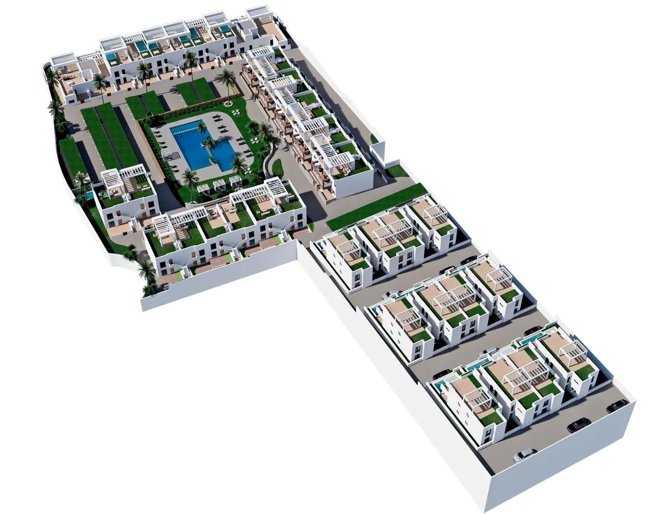 OSIEDLE MIESZKANIOWE NOWYCH BUDOWNICTWA W FINESTRAT Nowo wybudowane osiedle mieszkaniowe w Finestrat zlokalizowane w jednej z najlepszych dzielnic do życia na Costa Blanca. Nowy kompleks budowlany składa się z 60 bungalowów z 2 lub 3 sypialniami i 2 łazienkami z dostępem do części wspólnych i basenu. Niektóre apartamenty dysponują również prywatnym basenem. Wszystkie bungalowy posiadają miejsce parkingowe. Niektóre jednostki mają wspaniały widok na morze i panoramę Benidormu. Finestrat znajduje się w regionie Marina Baixa na wybrzeżu Costa Blanca, w pobliżu sąsiedniego Benidormu i około 40 kilometrów od miasta Alicante i międzynarodowego lotniska. Benidorm znajduje się zaledwie pięć minut jazdy od nieruchomości i oferuje wszystkie usługi, których możesz potrzebować, w tym sklepy, bary, restauracje, supermarkety, banki, apteki i kilka międzynarodowych szkół prywatnych. W pobliżu plaże Levante, Poniente i Cala de Finestrat, o długości ponad 6 km, które należą do najlepszych w Europie wyróżnionych przez Unię Europejską Błękitnymi Flagami. Wszystkie usługi rekreacyjne, takie jak parki tematyczne Aqua Natura, Terra Mítica, Terra Natura, Aqualandia i Mundomar, pola golfowe Sierra Cortina i Villaitana, wędrówki i wspinaczka w Puig Campana, niezrównanym otoczeniu przyrody lub sportach wodnych.