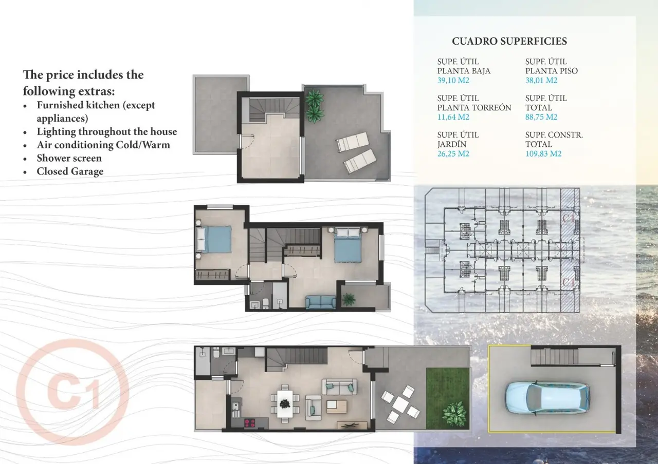 PIĘKNE KAMIENICE W LA MANGA To mieszkanie znajduje się na 14 km La Manga na wyjątkowej działce, na pierwszej linii kanału Estacio i zaledwie 50 metrów od Morze Śródziemne. Bezkonkurencyjny ze względu na swoją sytuację, zaledwie 800 metrów od portu Tomás Maestre, gdzie znajdziemy wybraną strefę rekreacyjną z barami, kawiarniami, restauracjami, sklepami, supermarketami, aptekami, bankami itp. Ten projekt ma 28 wspaniałych dupleksów z 2 i 3 sypialnie. W Residencial domy zostały zaprojektowane tak, aby wykorzystać każdy zakamarek domu jak staranność w doborze materiałów i ich konstrukcji La Manga del Mar Menor to naturalny pas lądu otoczony dwoma morzami, Mar Menor i Morzem Śródziemnym. Do tego rarytasu można dodać liczne możliwości spędzania wolnego czasu i spędzania wolnego czasu, restauracje, supermarkety, centra medyczne, apteki, ośrodki sportów wodnych, pola golfowe. La Manga znajduje się na północnym wybrzeżu Costa Calida i jest popularnym miejscem wypoczynku turystów. Wąski pas lądu oddzielający ciepłą lagunę od zimniejszego morza ma niepowtarzalny mikroklimat. To jeden z najbardziej egzotycznych obszarów w Hiszpanii. Lotnisko Corvera oddalone jest o około 1 godzinę jazdy od hotelu, a lotnisko w Alicante o około 2 godziny.