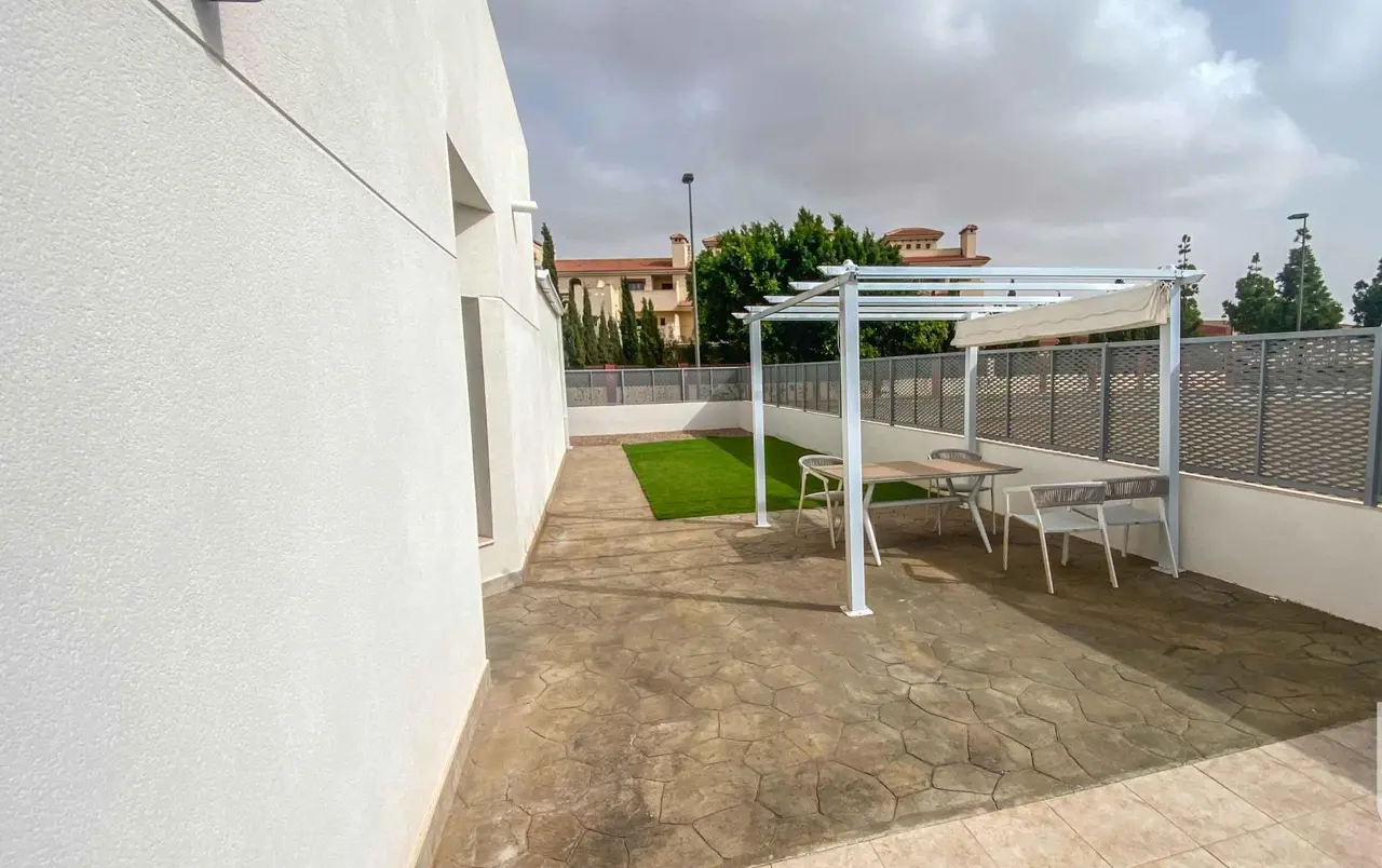 NOWE ZBUDUJ WILLE CZĘŚCIOWO ODDZIELNE W LOS ALCAZARES Te przestronne, dobrze zaprojektowane wille są budowane parami. Każda willa ma swoją prywatną działkę o powierzchni 175 m2 z dużymi tarasami, basenem i ogrodem z trzech stron willi. Wierzymy, że te wille oferują najlepszy stosunek jakości do ceny w Hiszpanii – oferujemy willę w zabudowie bliźniaczej z ponad 100m2 tarasem (możliwość dodania solarium za dodatkową opłatą), basenem lub ogrodem w cenie mieszkania. Wille zostały zaprojektowane z myślą o życiu na świeżym powietrzu. W salonie znajdują się dwoje dużych podwójnych drzwi wychodzących na taras i basen idealny do spożywania posiłków na świeżym powietrzu. Obszerne tarasy z przodu iz tyłu zapewniają właścicielom możliwość opalania się przez cały dzień. Wille posiadają nowocześnie wyposażone kuchnie z możliwością wyboru kolorów szafek kuchennych oraz płytek ściennych w kuchni i łazience, a także podłóg i tarasów. Dwie wygodne dwuosobowe sypialnie mają wbudowane szafy. W jednej sypialni znajduje się łazienka z prysznicem, a w drugiej sypialni znajduje się druga łazienka z prysznicem dla gości. Ogrody otoczone są 40 cm murem z żywopłotem zapewniającym prywatność od frontu z bramkami. Kupujący mogą zdecydować się na zwiększenie wysokości ściany wokół tylnego ogrodu do wysokości 180 cm (5 stóp 10 cali) lub dodać ogrodzenie lub żywopłot, aby zapewnić prywatność. Za dodatkową opłatą dostępny jest ogromny taras słoneczny na dachu ze spiralnymi schodami. Każda willa posiada sporych rozmiarów garaż, który może również służyć jako pracownia lub pracownia hobbystyczna. Baseny lub jacuzzi dostępne są za dodatkową opłatą. Mamy plany wybudowania trzeciej sypialni na dachu willi. Rezydencja willi położonych 1 km od plaży i miasta Los Alcázares, gdzie można uprawiać różne sporty wodne, otoczona kilkoma polami golfowymi. Miasto Cartagena mniej niż 15 minut samochodem i 30 minut od lotniska Murcia Corvera.
