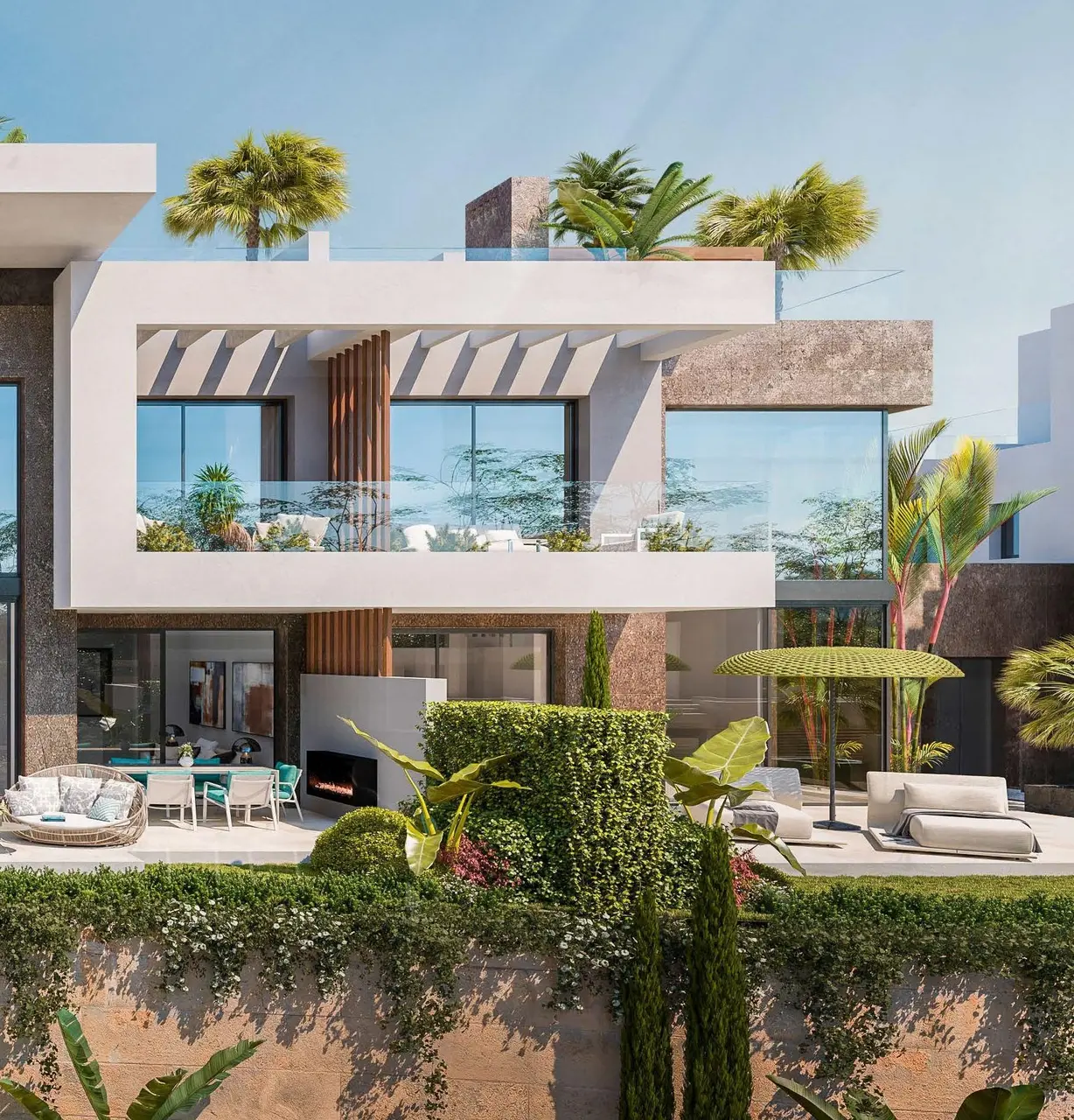 Luksusowe nowe domy w zabudowie szeregowej w Río Real, Marbella Ekskluzywna społeczność z udogodnieniami premium Położona w prestiżowej dzielnicy Río Real w Marbelli, ta oszałamiająca inwestycja oferuje 27 kamienic i domów w zabudowie bliźniaczej, zaprojektowanych tak, aby zapewnić idealne połączenie luksusu i komfortu. Te bogate domy oferują przestronne wnętrza, prywatne ogrody i prywatne baseny na dachu z tarasami słonecznymi, a wszystko to uzupełnione spektakularnymi widokami na Morze Śródziemne. Solarium na piętrze z prywatnym basenem i tarasem słonecznym to idealne miejsce na relaks i cieszenie się wspaniałym słońcem Marbelli. Elegancki projekt i układ Każda kamienica ma wielopoziomową konstrukcję, dzięki czemu można w pełni cieszyć się panoramicznym widokiem na morze z różnych punktów nieruchomości. Dostępne są dwie opcje układu, do wyboru są domy z 4 lub 5 sypialniami rozmieszczone w piwnicy, na parterze, na pierwszym piętrze i w solarium. Rozległe wnętrza charakteryzują się wysokiej klasy wykończeniami, dużymi oknami i otwartym planem, płynnie łącząc wewnętrzne i zewnętrzne przestrzenie mieszkalne. Każdy dom obejmuje również prywatny garaż podziemny dla dodatkowej wygody. Światowej klasy udogodnienia w doskonałej lokalizacji Kompleks został zaprojektowany z naciskiem na dobre samopoczucie i wypoczynek, oferując szereg wspólnych udogodnień, w tym: Odkryty basen otoczony bujnymi ogrodami. W pełni wyposażona siłownia do prowadzenia aktywnego trybu życia. Sauna i łaźnia turecka dla maksymalnego relaksu. Gabinet masażu poprawiający samopoczucie. Przestrzeń do pracy zespołowej. Ścieżki spacerowe zapewniające łatwy dostęp do wszystkich domów. Bliskość kluczowych punktów zainteresowania Położona zaledwie 5 minut od dziewiczej plaży Río Real, społeczność ta zapewnia bliskość niektórych z najbardziej poszukiwanych atrakcji i udogodnień Marbelli: Centrum miasta Marbella: 10 km Przystań Puerto Banús: 16 km Klub golfowy Santa Clara: 3 km Centrum handlowe La Cañada: 8 km Lotnisko w Maladze: 50 km Ta wyjątkowa lokalizacja łączy spokój Río Real z łatwym dostępem do tętniącego życiem stylu życia Marbelli, słynącego z wyśmienitej kuchni, ekskluzywnych sklepów i światowej klasy opcji rekreacyjnych. Domy gotowe do zamieszkania Te kamienice są gotowe do zamieszkania, oferując możliwość natychmiastowego cieszenia się niezrównanym stylem życia w jednej z najbardziej prestiżowych dzielnic Marbelli. Zaplanuj oglądanie już dziś Odkryj idealne połączenie luksusu, komfortu i wygody w Río Real. Skontaktuj się z nami już teraz, aby umówić się na wizytę i zapewnić sobie wymarzony dom w Marbelli!
