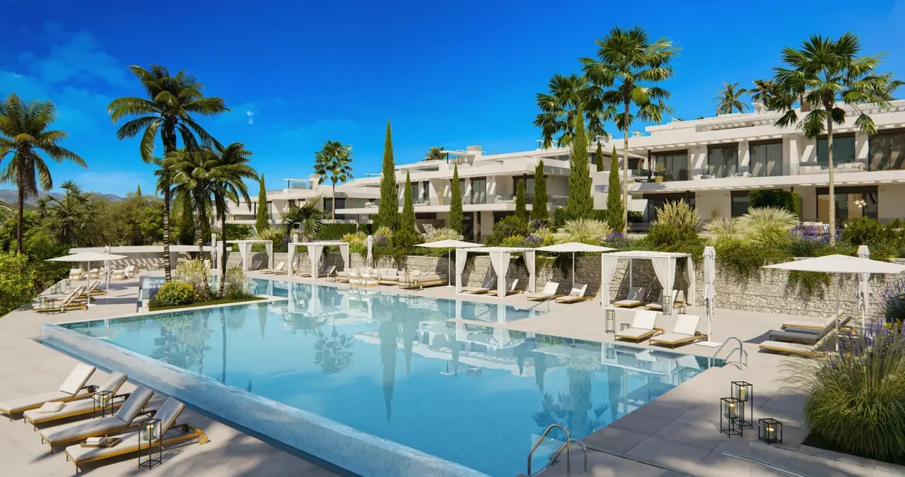 Nowe mieszkania w Marbella Este z widokiem na morze i pole golfowe Ekskluzywna rezydencja obok pola golfowego Santa Clara z apartamentami i bliźniaczymi willami Odkryj luksusowy styl życia w tej nowej inwestycji położonej w Marbella Este, jednej z najbardziej pożądanych lokalizacji na Costa del Sol. Ten ekskluzywny, prywatny kompleks składa się z 68 mieszkań, w tym apartamentów z 2, 3 i 4 sypialniami, parterów z ogrodem, pięter z dużymi tarasami i prywatnymi solarium, a także eleganckich bliźniaczych willi. Niektóre jednostki posiadają nawet prywatny basen, oferując maksymalny komfort w wyjątkowym otoczeniu. Wyjątkowe otoczenie natury zaledwie kilka minut od centrum Marbelli Położona obok prestiżowego pola golfowego Santa Clara Golf Club, ta rezydencja łączy w sobie spokój, naturę i bliskość wszystkich usług. Jej podwyższone położenie zapewnia imponujące widoki na pole golfowe i Morze Śródziemne, w ekskluzywnej dzielnicy mieszkalnej otoczonej śródziemnomorską roślinnością. Najbliższe atrakcje: Najbliższa plaża: 1,5 km Centrum Marbelli: 5 km Port Banús: 12 km Lotnisko w Maladze: 47 km Pola golfowe, takie jak Río Real, Marbella Golf i Santa Clara: mniej niż 5 km Centra handlowe i międzynarodowe szkoły: mniej niż 10 minut Najwyższej klasy pomieszczenia wspólne dla zdrowego i wyrafinowanego stylu życia Kompleks oferuje szereg usług premium dla mieszkańców: 4 baseny zewnętrzne i 1 kryty basen z podgrzewaną wodą Spa i sauna W pełni wyposażona siłownia Coworking i gastrobar Klub towarzyski i kawiarnia Miejsce na rowery Usługi konsjerża i kontrolowany dostęp Nowoczesny design z śródziemnomorską duszą i luksusowymi wykończeniami Każdy dom został zaprojektowany w stylu współczesnym, inspirowanym wartościami śródziemnomorskiego stylu życia. Wnętrza w naturalny sposób łączą się z przestronnymi tarasami, ogrodami lub solarium, tworząc otwartą i jasną atmosferę. Najważniejsze cechy: Umeblowane kuchnie z wyposażeniem AGD Ogrzewanie podłogowe i klimatyzacja kanałowa System domotyki w części dziennej Zainstalowane kabiny prysznicowe Co najmniej jedno miejsce parkingowe i schowek w cenie Winda w budynkach mieszkalnych Poczuj esencję Morza Śródziemnego dzięki niezrównanym widokom i udogodnieniom Jeśli szukasz nowoczesnego domu w strategicznej lokalizacji we wschodniej części Marbelli, w otoczeniu natury i blisko wszystkiego, ta oferta jest dla Ciebie. Skontaktuj się z nami już dziś, aby uzyskać więcej informacji lub umówić się na indywidualną wizytę.