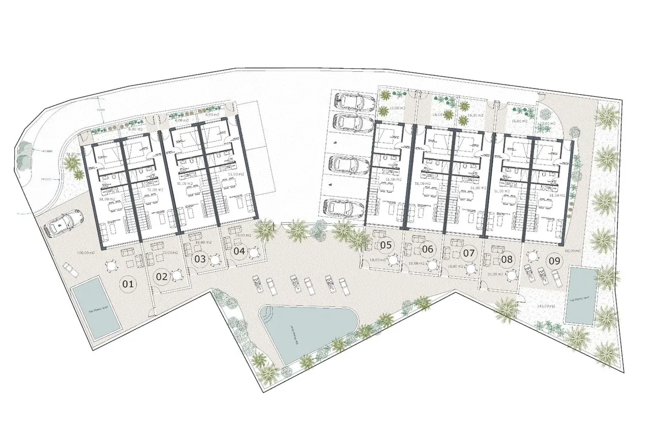 RYNEK PIERWOTNY WILLE W ZABUDOWIE BLIŹNIACZEJ W ORIHUELA COSTA Osiedle składa się z 9 kamienic i willi w zabudowie bliźniaczej, rozmieszczonych na 2 piętrach z 3 sypialniami, 3 łazienkami, kuchnią na otwartym planie z częścią wypoczynkową, prywatnym ogrodem, dużym tarasem i solarium. Zaprojektowany, aby cieszyć się najlepszą temperaturą zarówno zimą, jak i latem, posiadający prywatne obszary z praktycznie całym domem z widokiem i dostępem do dużego i luksusowego ogrodu i części wspólnych. Kompleks posiada duży piaszczysty basen oraz tropikalne i rajskie ogrody, które sprawią, że poczujesz się jak w luksusowym kurorcie i tropikalnym raju. Przestronny salon i jadalnia z dużymi oknami tworzą strefę komfortu z naturalnym światłem w całym domu. Rezydencja położona w najlepszej dzielnicy mieszkalnej Orihuela Costa, posiada wszystkie usługi, doskonale skomunikowana 2 minuty od autostrady A-7. Los Dolses znajduje się w pobliżu bardzo popularnego obszaru Villamartin z turystami i mieszkańcami, większość społeczności składa się z zachodnioeuropejskich emigrantów, którzy osiedlili się tam w ciągu ostatnich 15 lat, praktycznie przekształcając oryginalną wioskę w tętniące życiem całoroczne miejsce docelowe. W pobliżu znajdują się 3 pola golfowe, a plaże wyróżnione Błękitną Flagą oddalone są o zaledwie 10 minut jazdy samochodem. Kompleks znajduje się 40 minut od lotniska w Alicante i 1 godzinę od lotniska Murcja-Corvera.