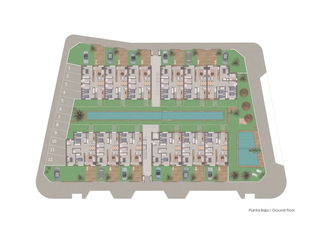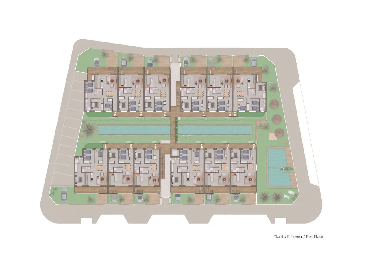 NOWY KOMPLEKS MIESZKALNY W PILAR DE LA HORADADA New Build piękne mieszkalne z 24 bungalowów, zaprojektowany i stworzony do życia z maksymalnym komfortem w uprzywilejowanej lokalizacji w otoczeniu wszystkich rodzajów usług i tylko 4 km od morza. Te nieruchomości składają się z 2 lub 3 sypialni, 2 łazienek, kuchni na otwartym planie z częścią wypoczynkową, wyposażonych szaf. Parterowe bungalowy z prywatnym ogrodem i bungalowy na najwyższym piętrze z prywatnym solarium. Wszystkie właściwości ma miejsce parkingowe. Kompleks mieszkalny posiada doskonały obszar komunalny z basenem i odkrytym basenem. Pilar de la Horadada to typowa hiszpańska wioska w najbardziej południowej części Costa Blanca. Duża główna ulica ma supermarkety, wiele sklepów, restauracji i barów oraz kilka uroczych placów. Piękne plaże Torre de la Horadada i Mil Palmeras z drobnym piaskiem promenady jest tylko 5 minut od hotelu. W Pilar de la Horadada jest również dobrze rozwinięta sieć ścieżek rowerowych i spacerowych, a także istnieje duża oferta różnych zajęć sportowych. 18-dołkowe pole golfowe Lo Romero znajduje się w odległości krótkiej jazdy samochodem od miasta. Lotniska w Corvera (Murcja) i Alicante oddalone są odpowiednio o 40 i 55 minut jazdy.