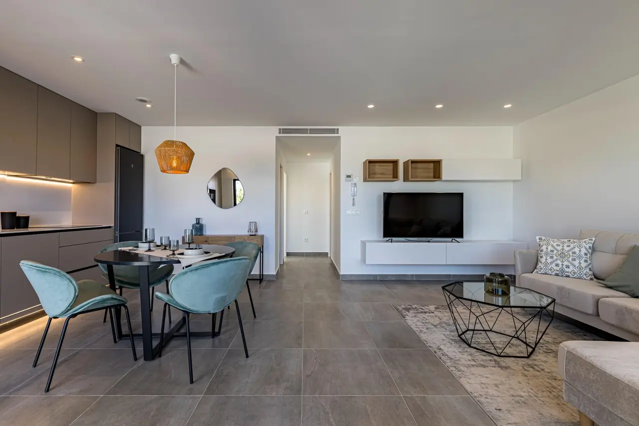 NOWE BUDOWNICTWO MIESZKANIOWE APARTAMENTÓW TYPU BUNGALOW W PILAR DE LA HORADADA New Build ekskluzywny kompleks mieszkalny składający się z 22 najwyższej jakości apartamentów typu bungalow z wykończeniami PORCELANOSA w Pilar de la Horadada. Nowoczesne bungalowy z 2 sypialniami, 2 łazienkami, kuchnią na otwartym planie z salonem, wyposażonymi szafami. Domy na parterze mają duży ogród wykończony sztuczną trawą, a na ostatnim piętrze będziesz mógł cieszyć się słońcem przez cały rok na tarasie i solarium, a także wspólnym terenem z basenem i wygodnym miejscem parkingowym. Pilar de la Horadada to typowa hiszpańska wioska położona w najbardziej południowej części Costa Blanca. Duża główna ulica ma supermarkety, wiele sklepów, restauracji i barów oraz kilka uroczych placów. Piękne plaże Torre de la Horadada i Mil Palmeras z drobnym piaskiem promenady jest tylko 5 minut od hotelu. Lotniska Corvera (Murcia) i Alicante są odpowiednio 40 i 55 minut od hotelu.