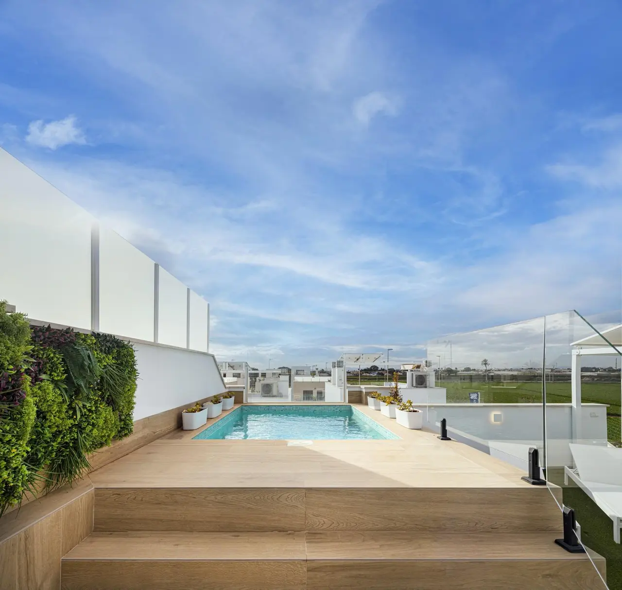 RYNEK PIERWOTNY KOMPLEKS MIESZKALNY W TORRE DE LA HORADADA Rynek Pierwotny kompleks apartamentów typu bungalow ze wspólnym basenem w Torre de la Horadada, położony 800 m od plaży. Wszystkie nieruchomości mają 3 sypialnie, 2 łazienki, kuchnię na otwartym planie z częścią wypoczynkową, wbudowane szafy i taras. Wszystkie nieruchomości mają prywatne ogrody i miejsca parkingowe. Dodatkowo bungalowy na najwyższym piętrze mają prywatne solarium. Torre de la Horadada znajduje się na południe od Alicante, w pięknej lokalizacji na wybrzeżu. Piękne plaże Torre de la Horadada i Mil Palmeras mają drobny piasek i piękną promenadę. Znajduje się tu wiele restauracji, barów i sklepów, a także sporty wodne, nurkowanie i snorkeling. Jest dobrze skomunikowany, zaledwie 40 minut od lotnisk Alicante i Murcias Corvera, z dużymi komercyjnymi centrami handlowymi i wieloma polami golfowymi w zasięgu ręki.