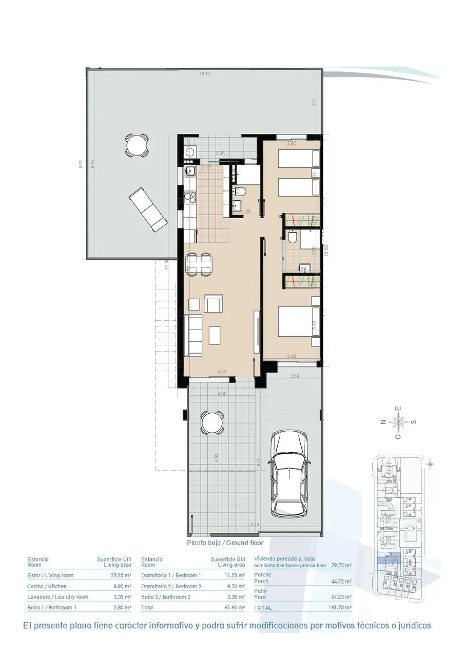 Nowe rezydencje budowlane zaledwie 200 metrów od plaży Las Higuericas Nowoczesne domy w Torre de la Horadada Położona w malowniczym nadmorskim miasteczku Torre de la Horadada, ta nowa inwestycja jest doskonale usytuowana zaledwie 200 metrów od oszałamiającej plaży Las Higuericas. Oferując nowoczesne dupleksy, parterowe bungalowy z prywatnymi ogrodami, bungalowy na najwyższym piętrze z solarium i eleganckie apartamenty, społeczność ta łączy współczesny design z odrobiną ekskluzywności. Domy są dostępne w układach z 2 i 3 sypialniami, zaspokajając różne potrzeby związane ze stylem życia. Wyjątkowe udogodnienia dla mieszkańców Każda rezydencja wyposażona jest w prywatne miejsce parkingowe, przestronne tarasy, zagospodarowane tereny zielone i dostęp do wspólnego basenu. Starannie zaprojektowane, aby zwiększyć komfort i wygodę, domy te oferują idealne warunki do relaksu i przyjemności. Funkcje premium dla maksymalnego komfortu Każda nieruchomość obejmuje: Zmotoryzowane rolety we wszystkich pokojach. Wzmocnione drzwi wejściowe zapewniające dodatkowe bezpieczeństwo. Ogrzewanie podłogowe w łazienkach. Meble łazienkowe i parawany prysznicowe. Oświetlenie zewnętrzne tarasów i ogrodów. Wyposażenie: okap, płyta ceramiczna, piekarnik, lodówka, zmywarka, kuchenka mikrofalowa i pralka. Ponadto bungalowy i solaria na parterze wyposażone są w prysznice z ciepłą i zimną wodą, a wszystkie domy korzystają z energooszczędnego systemu aerotermalnego do podgrzewania wody. Doskonała lokalizacja w Torre de la Horadada Osiedle położone jest w tętniącej życiem, ale spokojnej okolicy, z łatwym dostępem do najważniejszych udogodnień i atrakcji: Plaża Las Higuericas: zaledwie 200 metrów. Lotnisko Murcja: Około 30 km. Pole golfowe Lo Romero: Tylko 10 km. Centrum handlowe Dos Mares: 11 km. Port San Pedro del Pinatar: 8 km. Ciesz się wyjątkowym nadmorskim stylem życia, łączącym piękne plaże, restauracje i zajęcia rekreacyjne w bliskiej odległości. Twój wymarzony dom czeka Nie przegap okazji posiadania nowoczesnego, dobrze wyposażonego domu w jednej z najbardziej pożądanych lokalizacji na Costa Blanca. Skontaktuj się z nami już dziś, aby dowiedzieć się więcej lub zaplanować wizytę!