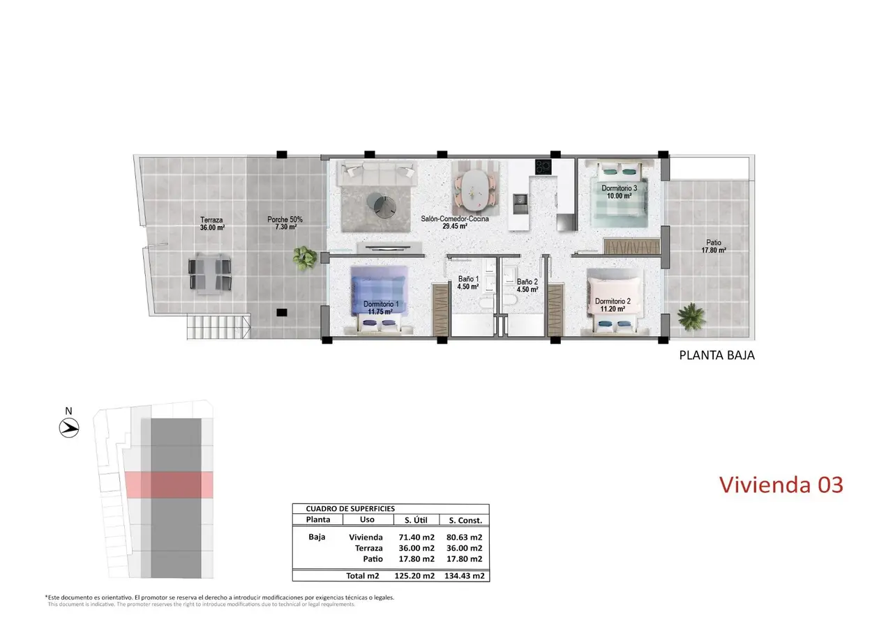 Nowo wybudowane bungalowy w Pilar de la Horadada blisko plaży i centrum miasta Współczesne życie w sercu Costa Blanca Witamy w butikowym kompleksie mieszkalnym składającym się z 12 nowo wybudowanych bungalowów położonych w Pilar de la Horadada, tętniącym życiem nadmorskim miasteczku na południowym krańcu Costa Blanca. Ta doskonała lokalizacja oferuje idealne połączenie spokojnego śródziemnomorskiego życia i wygody, ze wszystkimi niezbędnymi usługami, sklepami, restauracjami i udogodnieniami w odległości spaceru. Piękne piaszczyste plaże Torre de la Horadada i Mil Palmeras oddalone są o zaledwie 3 km, idealne na relaksujące dni na plaży lub uprawianie sportów wodnych. Wybór bungalowów na parterze lub na najwyższym piętrze Ta ekskluzywna inwestycja oferuje dwa rodzaje nowoczesnych domów dostosowanych do Twojego stylu życia: Bungalowy na parterze z 3 sypialniami, 2 łazienkami i dużymi prywatnymi tarasami z przodu i z tyłu z bezpośrednim dostępem do wspólnego basenu i ogrodów. Bungalowy na najwyższym piętrze z 2 sypialniami, 2 łazienkami i rozległym prywatnym solarium na dachu, wraz z letnią kuchnią, pergolą i toaletą dla gości. Wszystkie domy dysponują jasną częścią dzienną na otwartym planie, w pełni wyposażoną kuchnią, klimatyzacją kanałową i prywatnym parkingiem. W sypialniach znajdują się wbudowane szafy, a w łazienkach ogrzewanie podłogowe zapewniające dodatkowy komfort. Funkcje premium dla nowoczesnego śródziemnomorskiego stylu życia Domy zostały zaprojektowane z wysokiej jakości wykończeniami i praktycznymi funkcjami, w tym Pancerne drzwi wejściowe z aluminiowym wykończeniem Elektryczne rolety w salonie i sypialniach Aerotermiczny system ciepłej wody użytkowej Urządzenia kuchenne BALAY lub ich odpowiedniki solaria na dachu ze sztuczną trawą, prysznicem zewnętrznym, oświetleniem i w pełni wyposażoną letnią kuchnią ze zmywarką, małą lodówką, płytą indukcyjną i wyciągiem. Strategiczna lokalizacja z doskonałą łącznością Pilar de la Horadada jest dobrze skomunikowana z głównymi atrakcjami na wybrzeżu Costa Blanca i Costa Cálida: Plaże (Torre de la Horadada / Mil Palmeras) – 3 km Pole golfowe Lo Romero – 6 km Lotnisko Corvera (Murcja) – 40 km Lotnisko Alicante – 55 km Centrum handlowe Zenia Boulevard – 14 km Przystań San Pedro del Pinatar – 11 km Twój idealny dom w słońcu Niezależnie od tego, czy szukasz wakacyjnej ucieczki, całorocznej rezydencji czy inwestycji na wynajem, te bungalowy w Pilar de la Horadada oferują doskonałą wartość i jakość w jednym z najbardziej pożądanych miast Costa Blanca. Skontaktuj się z nami już dziś, aby umówić się na oglądanie lub uzyskać więcej informacji!