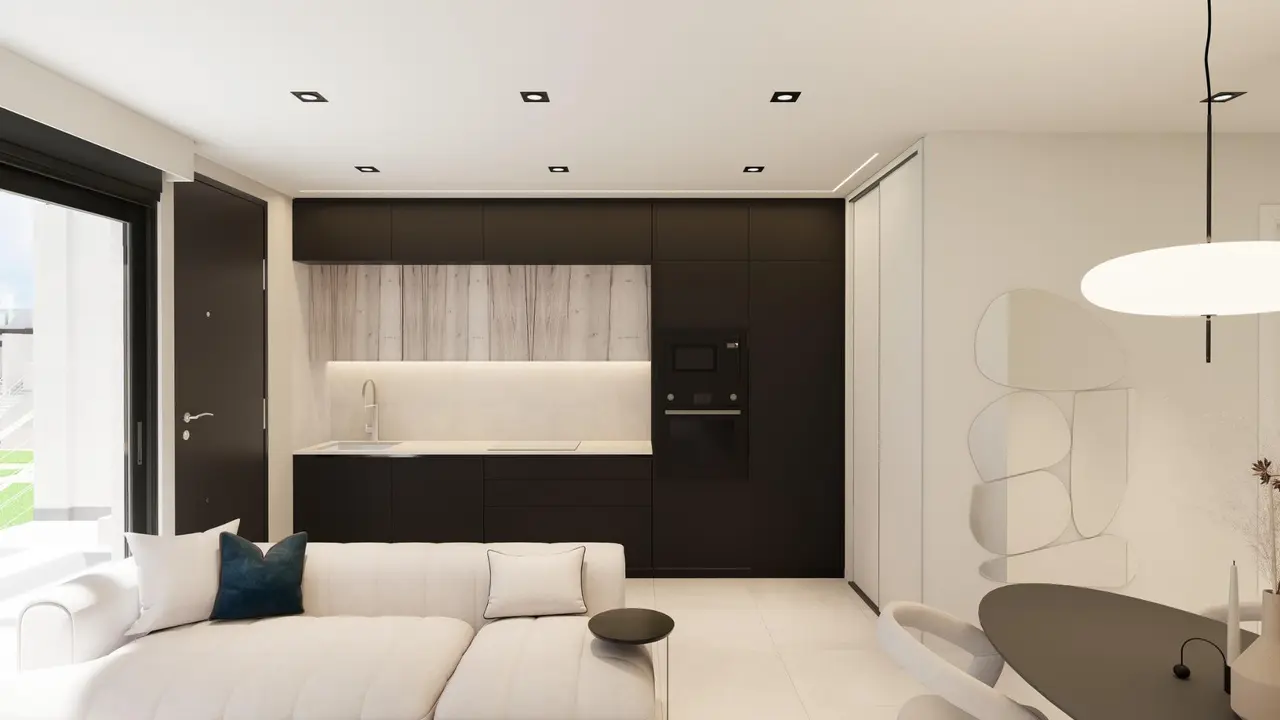 Nowe bungalowy z ogrodem lub solarium w pobliżu plaży w Pilar de la Horadada Nowoczesne domy w stylu śródziemnomorskim zaprojektowane z myślą o komforcie Odkryj ten ekskluzywny kompleks mieszkaniowy w Pilar de la Horadada, oferujący nowoczesne bungalowy położone niecałe 2 km od plaży. Zaprojektowane z myślą o połączeniu komfortu, stylu i funkcjonalności, domy te są idealne do zamieszkania przez cały rok, spędzania wakacji lub jako mądra inwestycja na Costa Blanca. Inwestycja oferuje wybór między bungalowami na parterze z prywatnymi ogrodami a bungalowami na najwyższym piętrze z prywatnymi solarium na dachu. Każda nieruchomość została starannie zaprojektowana, aby zmaksymalizować przestrzeń zewnętrzną i jak najlepiej wykorzystać śródziemnomorski klimat. Przestronne nieruchomości z 2 sypialniami i wysokiej jakości wykończeniem Każdy bungalow posiada 2 sypialnie i 2 łazienki, z których jedna jest łazienką przy sypialni, a także prywatne miejsce parkingowe w podziemnym garażu. Domy są zbudowane z wysokiej jakości materiałów i nowoczesnych wykończeń, które zapewniają energooszczędność i trwałość. Najważniejsze cechy to: Instalacja pod klimatyzację kanałową Aluminiowe okna z podwójnymi szybami i roletami elektrycznymi Bezpieczne drzwi wejściowe zapewniające spokój ducha System aerotermiczny do wydajnego wytwarzania ciepłej wody Wbudowane szafy we wszystkich sypialniach W pełni wyposażone łazienki z meblami i kabinami prysznicowymi Te specyfikacje zapewniają komfortowy i praktyczny dom odpowiedni na każdą porę roku. Prywatna społeczność z basenem i ogrodami krajobrazowymi Kompleks mieszkaniowy jest prywatny i bezpieczny, z pięknie zaprojektowanymi ogrodami wspólnymi i dużym basenem wspólnym. Tworzy to przyjemne i relaksujące środowisko, w którym mieszkańcy mogą odpocząć i cieszyć się doskonałym klimatem. Położona na obrzeżach centrum miasta inwestycja pozwala mieszkańcom na spacer do supermarketów, restauracji, barów, szkół i niezbędnych usług bez konieczności korzystania z samochodu. Doskonała lokalizacja w pobliżu plaż i usług Pilar de la Horadada to urocze hiszpańskie miasteczko w najbardziej wysuniętej na południe części Costa Blanca, znane z żywej atmosfery, lokalnych sklepów, tradycyjnych placów i przyjaznej społeczności. Piaszczyste plaże Torre de la Horadada i Mil Palmeras znajdują się zaledwie 2 km od hotelu i oferują drobny złoty piasek, malowniczą promenadę i przystań dla jachtów. Okolica jest również idealna do jazdy na rowerze, spacerów i uprawiania sportów na świeżym powietrzu. Odległości do najważniejszych punktów Lo Romero Golf 5 km La Zenia Boulevard 15 km Lotnisko Murcia Corvera 40 km Lotnisko Alicante 55 km Przystań Torre de la Horadada 3 km Zarezerwuj swój nowy dom już dziś Nie przegap okazji, aby stać się właścicielem nowego bungalowu w pobliżu plaży, w jednej z najbardziej pożądanych lokalizacji na wybrzeżu Costa Blanca. Skontaktuj się z nami już dziś, aby uzyskać więcej informacji i umówić się na wizytę. 968