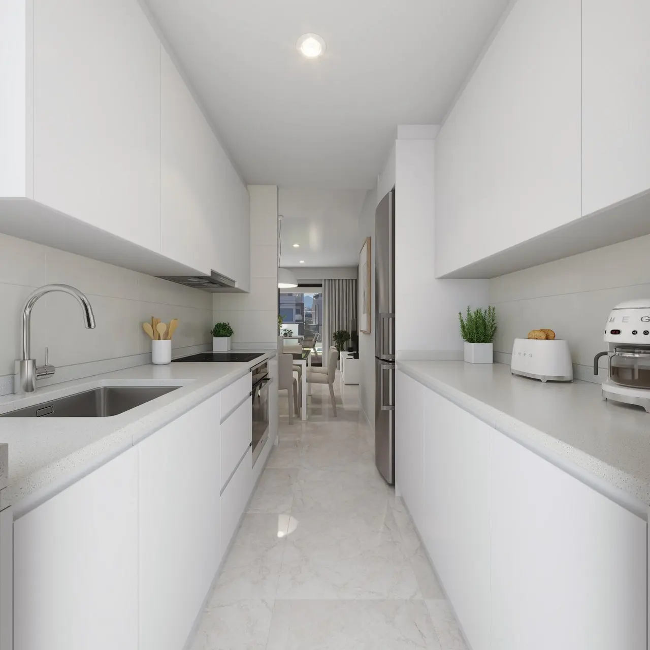 Nowe domy zaledwie 150 metrów od plaży w Puerto de Mazarrón Ekskluzywny projekt mieszkaniowy w pobliżu Playa Negra Odkryj tę butikową inwestycję składającą się zaledwie z 8 nowoczesnych domów położonych zaledwie 150 metrów od Playa Negra w Puerto de Mazarrón w Murcji. Ten nowy projekt budowlany oferuje idealne połączenie życia nad morzem, prywatności i współczesnego komfortu, idealne zarówno do zamieszkania na stałe, jak i na wakacje. Ciesz się widokiem na morze, spokojną okolicą i łatwym dostępem do jednej z najpiękniejszych plaż na wybrzeżu Costa Cálida. Osiedle położone jest w spokojnej dzielnicy mieszkalnej, w pobliżu wszystkich niezbędnych usług, w tym supermarketów, restauracji, szkół i placówek medycznych. Rodzaje nieruchomości i rozkłady pomieszczeń Osiedle oferuje domy na parterze lub na najwyższym piętrze: Mieszkania na parterze: 3 sypialnie i 2 łazienki z prywatnymi ogrodami. Opcjonalnie dostępny prywatny basen za dodatkową opłatą. Mieszkania na najwyższym piętrze: 2 sypialnie i 2 łazienki z dużymi tarasami i prywatnymi solarium na dachu, idealnymi do opalania się i spożywania posiłków na świeżym powietrzu. Wszystkie nieruchomości posiadają pomieszczenie gospodarcze i przypisane miejsce parkingowe w podziemnym garażu. Nowoczesne wyposażenie i wysokiej jakości wykończenie Te nowo wybudowane domy zostały zaprojektowane z wykorzystaniem wysokiej jakości materiałów i przemyślanych detali, aby zapewnić komfort i funkcjonalność: Zewnętrzna stolarka z PVC z podwójnymi szybami i komorą powietrzną dla lepszej izolacji Wzmocnione drzwi wejściowe Elektryczne ogrzewanie podłogowe w łazienkach W pełni wyposażone kuchnie ze sprzętem AGD Zainstalowana klimatyzacja kanałowa Basen wspólny z ogrodem krajobrazowym Instalacja pod telewizję satelitarną Doskonała lokalizacja w Puerto de Mazarrón Puerto de Mazarrón to jedna z najbardziej pożądanych nadmorskich miejscowości w regionie Murcji, znana z malowniczych plaż, tętniącej życiem mariny i relaksującej śródziemnomorskiej atmosfery. Okolica oferuje szeroki wachlarz zajęć na świeżym powietrzu, od żeglarstwa i nurkowania po wędrówki i jazdę na rowerze w pobliskich górach Sierra de las Moreras. Odległości do najważniejszych atrakcji: Playa Negra: 150 metrów Marina Mazarrón: 2 km Kartagena: 35 km Miasto Murcja: 70 km Lotnisko Corvera (Murcja): 45 km Pola golfowe (Camposol, Hacienda del Álamo): 25–35 km Centrum handlowe Mazarrón Park: 5 km Nie przegap tej wyjątkowej okazji, aby stać się właścicielem nowego domu nad morzem. Skontaktuj się z nami już dziś, aby dowiedzieć się więcej lub umówić się na wizytę i zobaczyć dostępne lokale oraz doświadczyć śródziemnomorskiego stylu życia na własnej skórze. Nie przegap tej rzadkiej okazji, aby stać się właścicielem nowego domu w pobliżu plaży w Puerto de Mazarrón. Skontaktuj się z nami już dziś, aby dowiedzieć się więcej lub umówić się na wizytę, aby obejrzeć dostępne lokale i doświadczyć śródziemnomorskiego stylu życia.