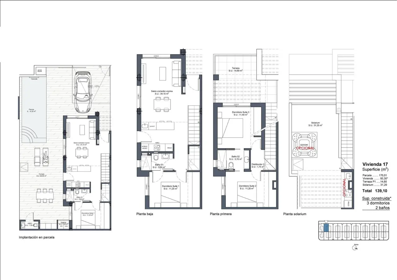 RYNEK PIERWOTNY QUADY W ROJALES Rynek Pierwotny Nowy projekt nowoczesnych quadów i willi z prywatnymi basenami w Rojales. Nowoczesne nieruchomości mają 3 sypialnie, 2 łazienki, toaletę dla gości, kuchnię na otwartym planie z częścią wypoczynkową, wbudowane szafy, solarium, prywatny ogród z basenem i miejsce parkingowe przy drodze. Przestrzenie zaprojektowane z myślą o zapewnieniu prywatności i komfortu, z dużymi ogrodami, które pozwalają cieszyć się świeżym powietrzem w całkowitym spokoju. Współczesny design z przestronnymi sypialniami i łazienkami wyposażonymi w wysokiej jakości wykończenia. Ogród idealny na spotkania rodzinne i z przyjaciółmi, z prywatnym basenem, aby cieszyć się słonecznymi dniami i zewnętrzną toaletą dla dodatkowej wygody podczas przyjmowania gości. Duże solarium i taras: Przestronne i dobrze połączone przestrzenie, aby cieszyć się śródziemnomorskim klimatem i panoramicznymi widokami. Wysokie standardy wykończenia i detali: Najwyższej jakości materiały i projekt z dbałością o szczegóły, oferujący elegancką i przyjazną atmosferę. Ekskluzywność i komfort w sercu Morza Śródziemnego w Rojales, Alicante, to wymarzone miejsce dla osób poszukujących jakości życia, spokoju i dostępu do najwyższej klasy usług. Ta ekskluzywna dzielnica mieszkaniowa oferuje doskonałe połączenie nowoczesności i natury, co czyni ją idealnym miejscem do życia. Strategicznie położona w dobrze ugruntowanym i cieszącym się dużym popytem obszarze, lokalizacja ta zapewnia dostęp do pełnej infrastruktury miejskiej, zachowując jednocześnie naturalne i spokojne otoczenie. Rojales znajduje się 15 minut jazdy od jednych z najpiękniejszych plaż Guardamar del Segura i Torrevieja. Bliskość tych plaż oferuje szereg korzyści i zalet, które sprawiają, że życie tutaj jest wyjątkowym doświadczeniem. Oprócz codziennej przyjemności, życie w pobliżu tych plaż oferuje możliwości aktywnego i zdrowego stylu życia. Sporty wodne, takie jak surfing, paddle surfing i nurkowanie są łatwo dostępne, podobnie jak spacery wzdłuż brzegu lub szlaki turystyczne przez pobliskie wydmy i parki przyrody. Główne lotniska: – Lotnisko Alicante-Elche (ALC): oddalone o około 38 km, dojazd samochodem zajmuje około 35 minut. Lotnisko Murcja-Corvera (RMU): Oddalone o około 65 km, dojazd samochodem zajmuje około 50 minut. Sieć drogowa: – Autostrada AP-7 i droga krajowa N-332 umożliwiają szybki i wygodny dostęp do głównych miast i atrakcji turystycznych w regionie. Transport publiczny: – Obszar ma regularne połączenia autobusowe łączące Ciudad Quesada z pobliskimi miastami i głównymi punktami zainteresowania.