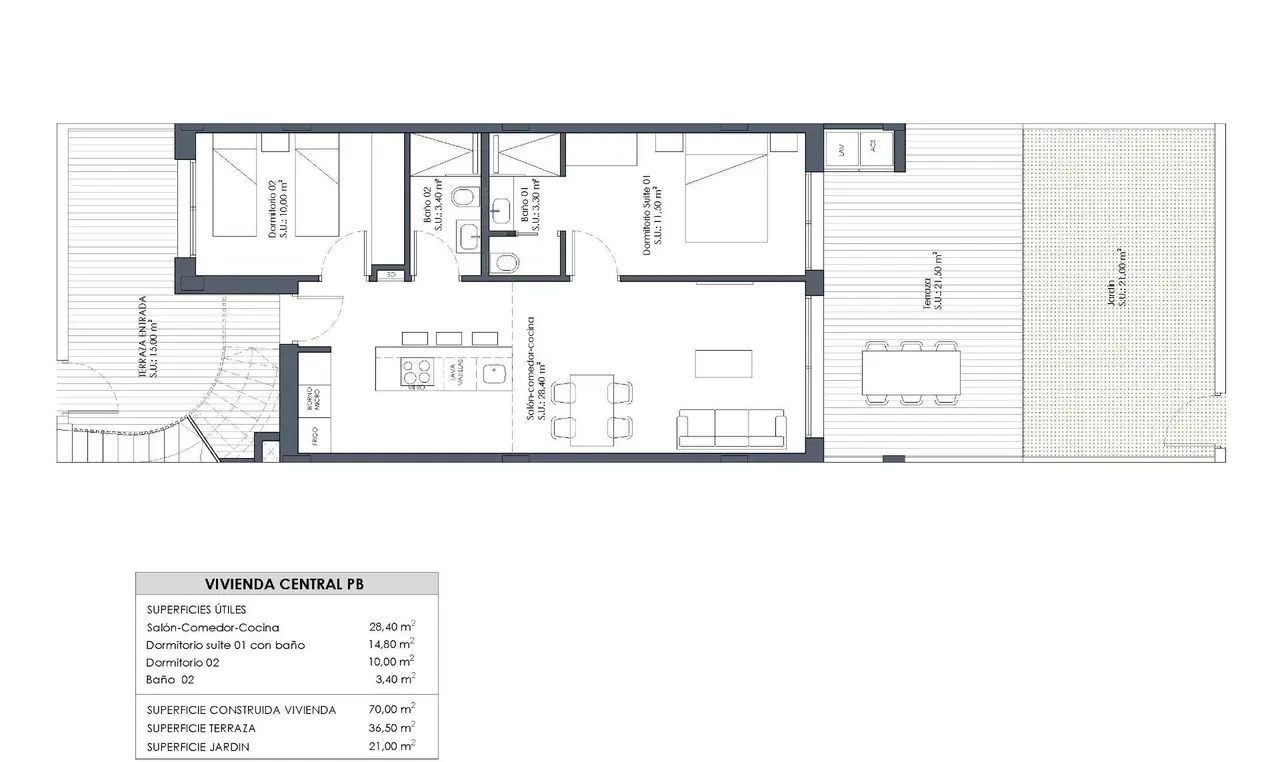 Nowo wybudowane bungalowy w San Miguel de Salinas – natura, golf i komfort Uprzywilejowana lokalizacja w naturalnym środowisku To ekskluzywne osiedle nowo wybudowanych bungalowów znajduje się niecałe 3 km od San Miguel de Salinas, w cichej okolicy otoczonej przyrodą i z pięknymi, niczym niezakłóconymi widokami. Jego doskonała lokalizacja pozwala cieszyć się spokojem bez rezygnacji z bliskości wszystkich usług. W odległości zaledwie 7 km znajdują się plaże Orihuela Costa i miasto Torrevieja, gdzie można korzystać z szerokiej oferty rekreacyjnej, gastronomicznej i sklepów. Nowoczesny design i niezakłócone widoki Nieruchomości są zaprojektowane w nowoczesnym stylu i mają wysokiej jakości wykończenia wewnętrzne i zewnętrzne. Można wybierać pomiędzy: Parterami z prywatnym ogrodem, idealnymi dla osób szukających wypoczynku na świeżym powietrzu. Najwyższe piętra z prywatnym solarium, idealne do opalania i relaksu z panoramicznym widokiem. Ponadto wszystkie domy obejmują przydzielone miejsce parkingowe. Obszary wspólne dla maksymalnego komfortu Osiedle oferuje piękny wspólny basen, otoczony terenami zielonymi, idealny do cieszenia się śródziemnomorskim klimatem. Naturalne środowisko zachęca do zdrowego stylu życia, z dala od stresu i zanieczyszczeń, w enklawie przypominającej prawdziwy raj. Bliskość najlepszych pól golfowych San Miguel de Salinas jest idealnym miejscem dla miłośników golfa. W odległości mniejszej niż 4 km znajdują się trzy najbardziej prestiżowe pola golfowe na Costa Blanca: Villamartin Golf – 3,5 km. Las Colinas Golf & Country Club – 4 km. Campoamor Golf – 4 km. Połączenie z głównymi punktami zainteresowania Ta rezydencja znajduje się w strategicznej lokalizacji z łatwym dostępem do: San Miguel de Salinas – 3 km. Plaże Orihuela Costa – 7 km. Torrevieja – 7 km. Centrum handlowe La Zenia Boulevard – 10 km. Lotnisko Alicante – 55 km. Lotnisko Murcja (Corvera) – 50 km. Zabezpiecz swój dom w San Miguel de Salinas Jeśli szukasz domu na Costa Blanca, gdzie możesz cieszyć się spokojem, przyrodą i golfem, ta rezydencja jest najlepszą opcją. Skontaktuj się z nami już dziś, aby uzyskać więcej informacji i umówić się na oglądanie.