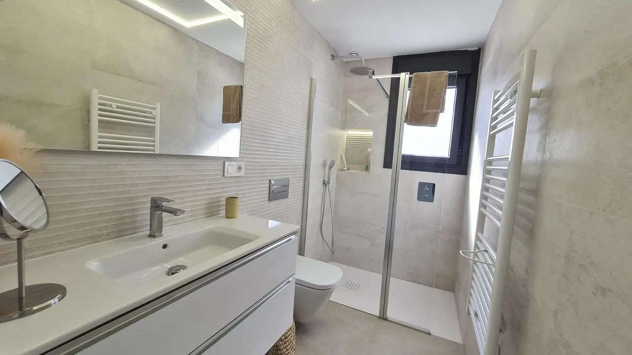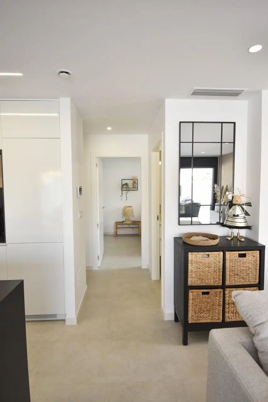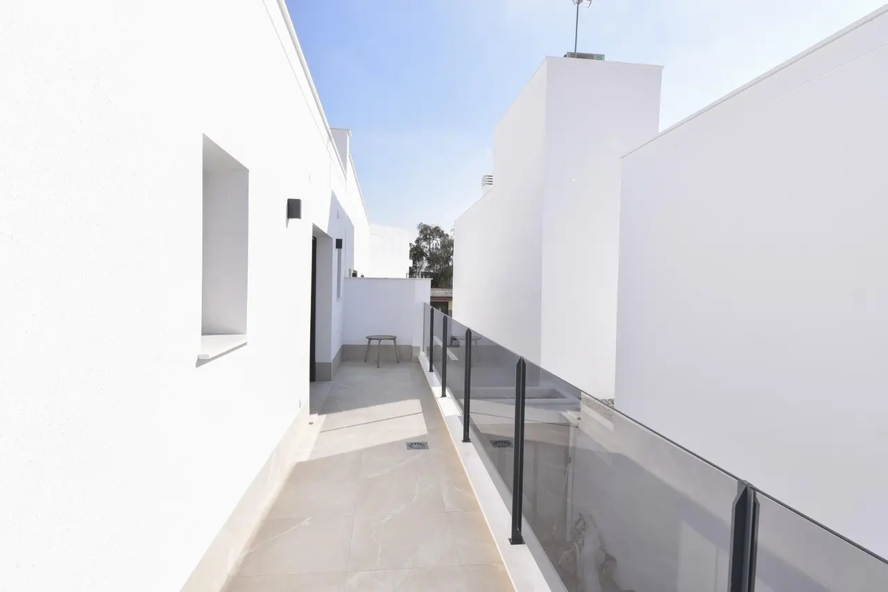 Nowoczesne nowe wille w San Pedro del Pinatar z prywatnym basenem Elegancki design i najwyższa jakość Witamy w drugiej fazie ekskluzywnej inwestycji w San Pedro del Pinatar, gdzie nowoczesność łączy się z funkcjonalnością. Te 12 willi w zabudowie bliźniaczej ma minimalistyczny design i wysokiej jakości wykończenia, oferując wyrafinowane i stylowe wrażenia z życia. Każda willa obejmuje 3 przestronne sypialnie, 3 łazienki i prywatny basen, a także tarasy i prywatny ogród. Jest to idealne sanktuarium dla osób poszukujących spokoju, prywatności i niezrównanego komfortu. Starannie zaprojektowane domy dla nowoczesnego stylu życia Te nowo wybudowane wille oferują kuchnię na otwartym planie połączoną z jasnym salonem, tworząc jednolitą przestrzeń do życia rodzinnego i rozrywki. Kluczowe cechy obejmują: 3 sypialnie z wbudowanymi szafami. 3 łazienki z przezroczystymi szklanymi ekranami prysznicowymi dla eleganckiego wyglądu. Prywatny basen i ogród, idealne do relaksu na świeżym powietrzu. Tarasy na pierwszym piętrze i opcjonalne solarium na dachu do opalania. Miejsce parkingowe na działce. Duże okna w salonie zapewniają bezpośredni dostęp do basenu, zalewając wnętrze naturalnym światłem. Energooszczędne dodatki, takie jak panele słoneczne i wstępnie zainstalowana klimatyzacja kanałowa, zapewniają nowoczesny komfort i zrównoważony rozwój. Dołączone urządzenia firmy Balay (płyta indukcyjna, piekarnik, kuchenka mikrofalowa, wyciąg, lodówka, zintegrowana zmywarka i pralka) sprawiają, że wprowadzenie się nie wymaga wysiłku. Doskonała lokalizacja w San Pedro del Pinatar Położone na pięknym wybrzeżu Mar Menor i Morza Śródziemnego, San Pedro del Pinatar jest wymarzonym miejscem dla entuzjastów sportów wodnych i miłośników plaży. Obszar ten słynie ze spokojnych plaż, naturalnych kąpieli błotnych i tętniącej życiem przystani, oferując całoroczne zajęcia w łagodnym klimacie. Interesujące miejsca w pobliżu tych willi obejmują: Centrum handlowe Dos Mares: 5 km (5 minut jazdy samochodem). Lotnisko Murcja-Corvera: 30 km (30 minut jazdy samochodem). Lotnisko Alicante: 80 km (1 godzina jazdy samochodem). Lokalne pola golfowe: Różne opcje w promieniu 10-15 km. Plaże Lo Pagán: Zaledwie 3 km jazdy samochodem. Okolica jest dobrze obsługiwana przez szkoły, obiekty sportowe, sklepy i transport publiczny, co czyni ją idealną zarówno dla rodzin, jak i emerytów. Odkryj swój wymarzony dom już dziś Nie przegap szansy na posiadanie jednej z tych ekskluzywnych willi w kwitnącej społeczności. Doświadcz tego, co najlepsze w życiu na wybrzeżu i uczyń San Pedro del Pinatar swoim nowym domem. Skontaktuj się z nami już teraz, aby umówić się na oglądanie i zabezpieczyć swój kawałek raju!