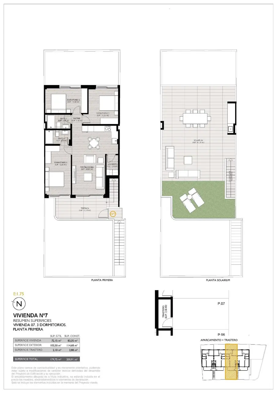 Nowo wybudowane bungalowy w San Pedro del Pinatar – nowoczesne życie nad morzem Ekskluzywny kompleks mieszkalny z nowoczesnymi bungalowami Odkryj nowy kompleks mieszkaniowy składający się z 8 nowoczesnych bungalowów w San Pedro del Pinatar, jednej z najbardziej pożądanych lokalizacji na Costa Cálida. Te nowoczesne domy oferują 3 sypialnie, 2 łazienki, kuchnię na otwartym planie z przestronną częścią dzienną, wbudowane szafy i prywatny taras. Do wyboru są następujące opcje: Bungalowy na parterze z prywatnym ogrodem i parkingiem na działce. Bungalowy na najwyższym piętrze z prywatnym solarium, idealne do cieszenia się śródziemnomorskim klimatem. Wysokiej jakości funkcje w każdym domu Każdy bungalow posiada najwyższej jakości wykończenia i nowoczesne funkcje zapewniające maksymalny komfort: Klimatyzacja w zestawie. System aerotermalny do energooszczędnego wytwarzania ciepłej wody. W pełni wyposażona kuchnia z urządzeniami BOSCH. W pełni wyposażone łazienki z meblami, lustrami, ekranami prysznicowymi i elektrycznym ogrzewaniem podłogowym. Elektryczne rolety we wszystkich oknach. Oświetlenie LED wewnątrz i na zewnątrz nieruchomości. Dodatkowe funkcje dla bungalowów na najwyższym piętrze: Aluminiowa pergola zapewniająca cień i styl. Letnia kuchnia na świeżym powietrzu, idealna do rozrywki. Prywatne miejsce parkingowe i pomieszczenie do przechowywania rowerów. Udogodnienia dla społeczności Mieszkańcy tego ekskluzywnego kompleksu będą cieszyć się: Pięknie zagospodarowany teren wspólny. Wspólny basen, w którym można się zrelaksować i odświeżyć. Doskonała lokalizacja w San Pedro del Pinatar San Pedro del Pinatar to uprzywilejowane nadmorskie miasto położone między Mar Menor a Morzem Śródziemnym. Jest dobrze znane ze swoich plaż, naturalnych kąpieli błotnych i doskonałych udogodnień żeglarskich, w tym marin i klubów jachtowych. Obszar ten jest rajem dla entuzjastów sportów wodnych i oferuje relaksujący śródziemnomorski styl życia ze wszystkimi niezbędnymi usługami w pobliżu. San Pedro del Pinatar szczyci się ugruntowaną całoroczną społecznością, z dostępem do obiektów sportowych, krytego basenu i tętniącej życiem sceny towarzyskiej, dzięki łagodnemu zimowemu klimatowi regionu. Słynny obszar Lo Pagán znacznie się rozwinął, oferując pełen zakres udogodnień, sklepów, restauracji i opcji rozrywki. Odległości do najważniejszych atrakcji Centrum handlowe Dos Mares – 5 minut. Plaże Mar Menor – 10 minut. Lotnisko Murcja-Corvera – 30 minut. Lotnisko Alicante – 1 godzina. Zainwestuj w jakość i styl życia Te nowoczesne bungalowy oferują wyjątkową okazję do posiadania domu w jednym z najbardziej poszukiwanych obszarów Costa Cálida. Niezależnie od tego, czy jest to miejsce na wakacje, inwestycję czy stałe miejsce zamieszkania, jest to szansa na przyjęcie śródziemnomorskiego stylu życia. Skontaktuj się z nami już dziś, aby zaplanować wizytę i zabezpieczyć swój wymarzony dom w San Pedro del Pinatar!