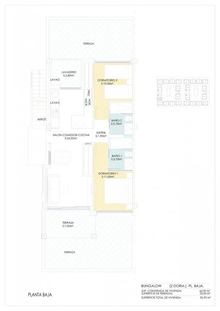 NOWY BUDYNEK MIESZKALNY Z APARTAMENTAMI TYPU BUNGALOW W LOS BALCONES, TORREVIEJA Nowy budynek mieszkalny kompleks z wspaniałymi widokami na różowe słone jezioro w Los Balcones. Kompleks składa się z 104 bungalowów z 2 i 3 sypialniami, bungalowy na ostatnim piętrze mają prywatne solarium z panoramicznym widokiem na słone jezioro, a bungalowy na parterze mają duże tarasy z widokiem na zieleń. Te bungalowy mają wspólne piękne tereny zielone i 2 duże baseny. Opcjonalnie dostępne są podziemne miejsca parkingowe i komórki lokatorskie. Osiedle oferuje nowoczesny design, wyselekcjonowane materiały, apartamenty wykończone zgodnie z najwyższymi standardami przy użyciu wyłącznie materiałów najwyższej jakości. Rezydentnej zostanie zbudowany na wzgórzu, w ten sposób widok, a także powietrze jest czyste i unikalne jakości. Los Balcones znajduje się tuż obok Torrevieja z wszystkich dostępnych usług, zaledwie 5 minut od Playa de Los Náufragos, supermarkety, szkoła i La Zenia Boulevard Shopping Centre, a minutę od Torrevieja University Hospital. Ponadto w pobliżu znajdują się 4 pola golfowe, w tym nagradzane Las Colinas Golf & Country Club. Kompleks znajduje się 40 minut od lotniska w Alicante i 1 godzinę od lotniska Murcia – Corvera.