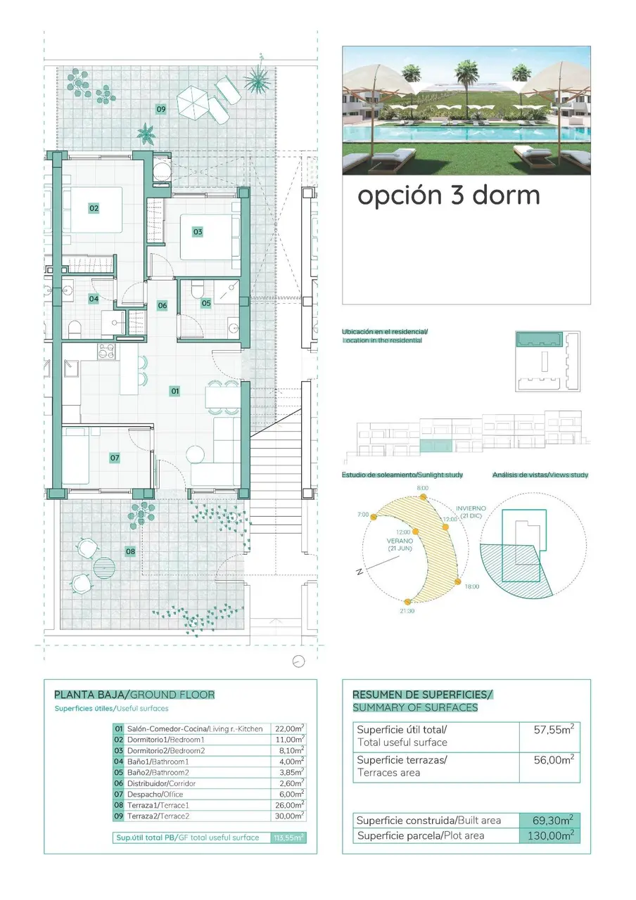 RYNEK PIERWOTNY APARTAMENTY TYPU BUNGALOW W LOS BALCONES Odkryj idealną harmonię między luksusem i komfortem w naszych apartamentach na parterze z ogrodem lub na piętrze z balkonem i solarium. Rezydencje składają się z 2 sypialni i 2 łazienek, z opcją trzeciej sypialni w zależności od potrzeb. Każdy apartament oferuje spektakularne widoki na różową lagunę Torrevieja, tworząc wyjątkowe doświadczenie, w którym natura staje się integralną częścią codziennego życia. Wspólne obszary są przedłużeniem prywatnej oazy. Zanurz się w naszym basenie bez krawędzi, podziwiając panoramiczne widoki na różową lagunę, baw się z dziećmi na placu zabaw lub spaceruj po zielonych terenach krajobrazowych. Strategicznie położony, znajduje się kilka minut od plaż Torrevieja, tętniącego życiem centrum handlowego Zenia Boulevard oraz wielu udogodnień, takich jak supermarkety, apteki i restauracje. Bliskość pól golfowych i zjazdu z autostrady na lotnisko w Alicante zapewnia łatwy dostęp do wszystkiego, co kochasz. Te nieruchomości to coś więcej niż dom; to styl życia, który obejmuje naturalne piękno, nowoczesny komfort i wygodę. Wyjątkowe osiedle mieszkaniowe to idealne miejsce do prowadzenia życia, jakie zawsze sobie wyobrażałeś. Witamy w nowym osiedlu, gdzie każdy dzień jest arcydziełem luksusu i spokoju!