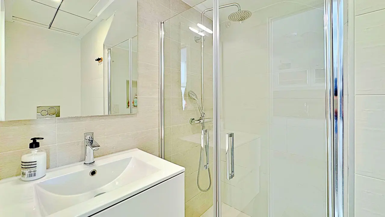 Na piętrze znajdują się dwie kolejne sypialnie, obie z wbudowanymi szafami. Sypialnia główna jest wyjątkowo jasna i ma bezpośrednie wyjście na prywatny taras z widokiem na dzielnicę mieszkalną i basen. Na tym poziomie znajdują się również dwie dodatkowe łazienki z nowoczesnym wykończeniem.