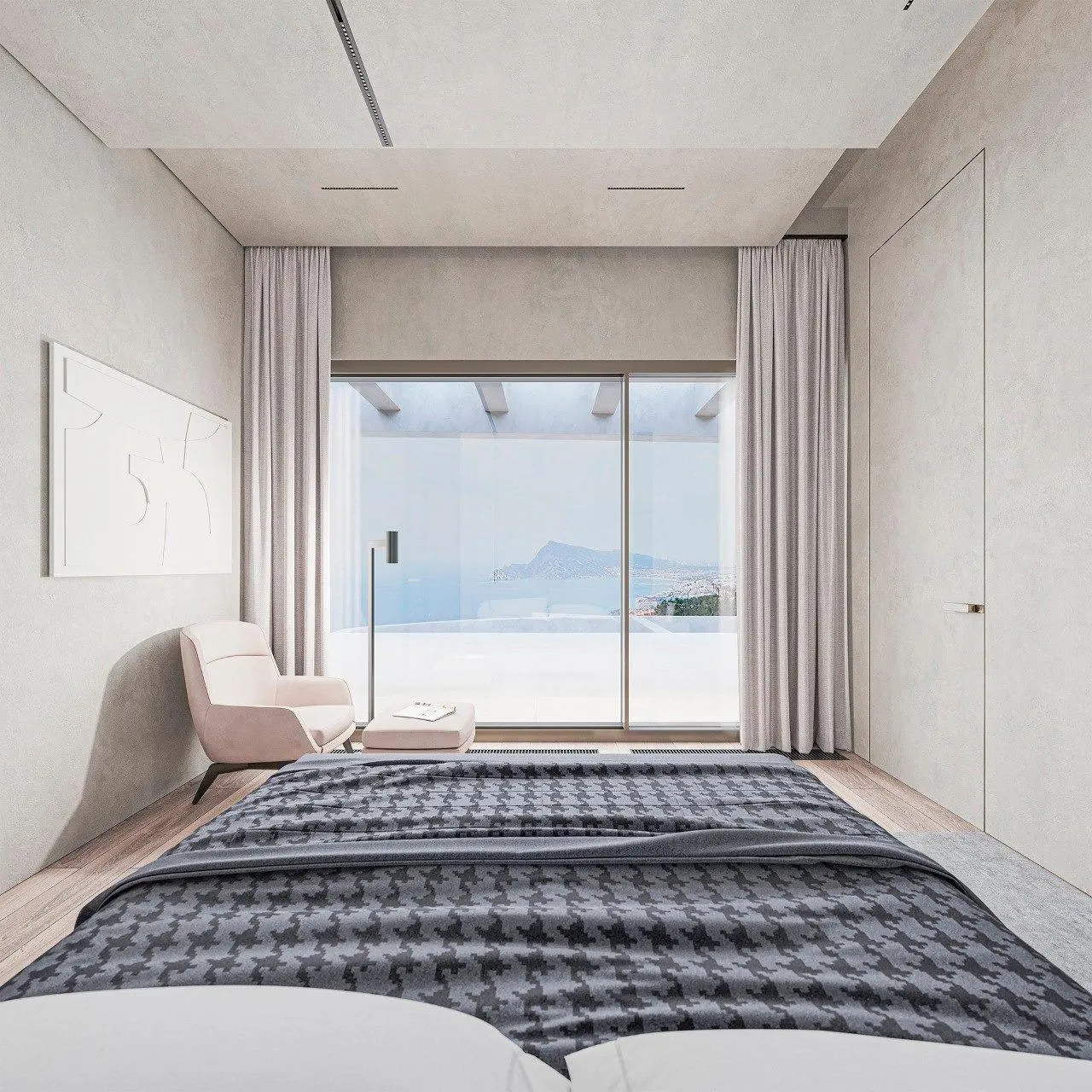 Nowoczesna, luksusowa willa z panoramicznym widokiem na morze w Altea Hills, na północnym wybrzeżu Costa Blanca Ekskluzywna, nowoczesna willa w prestiżowej społeczności Altea Hills Ta wyjątkowa, nowoczesna willa znajduje się w prestiżowej, ogrodzonej społeczności Altea Hills, jednej z najbardziej poszukiwanych dzielnic mieszkaniowych na Costa Blanca. Położona na wzniesionej działce, nieruchomość oferuje zapierające dech w piersiach panoramiczne widoki na Morze Śródziemne i otaczające góry, zapewniając jednocześnie całkowitą prywatność, spokój i doskonałe nasłonecznienie przez cały dzień. Zaprojektowana z wykorzystaniem nowoczesnej architektury i czystych linii, willa płynnie łączy przestrzenie mieszkalne wewnątrz i na zewnątrz. Duże okna od podłogi do sufitu zapewniają obfite natężenie światła naturalnego we wnętrzach, jednocześnie maksymalizując wspaniałe widoki na morze oraz bezpośredni dostęp do tarasów i przestrzeni zewnętrznych. Przestronny salon na planie otwartym o ekskluzywnym wystroju Willa rozkłada się na trzech poziomach połączonych prywatną windą, co zapewnia maksymalny komfort i dostępność. Główna część dzienna to jasna, otwarta przestrzeń, w której salon, jadalnia i designerska kuchnia płynnie się ze sobą łączą. Nowoczesna kuchnia wyposażona jest we włoskie szafki i sprzęt AGD marki Siemens, tworząc stylowe i funkcjonalne środowisko idealne zarówno do codziennego życia, jak i do przyjmowania gości. Duże okna zapewniają ciągłe połączenie z zewnętrznymi tarasami, pozwalając w pełni cieszyć się śródziemnomorskim stylem życia. Cztery eleganckie apartamenty sypialne z widokiem na morze Nieruchomość oferuje cztery przestronne sypialnie z łazienkami, z których każda została zaprojektowana jako prywatna oaza spokoju z wysokiej jakości wykończeniem i bezpośrednim dostępem do tarasów. Apartament główny wyróżnia się garderobą typu walk-in oraz luksusową łazienką z wolnostojącą wanną z widokiem na morze, tworząc prawdziwie relaksującą atmosferę inspirowaną luksusowymi spa. Dodatkowe udogodnienia obejmują ogrzewanie podłogowe, w pełni zainstalowaną klimatyzację kanałową, kominek, panele słoneczne zapewniające oszczędność energii, pralnię, schowki oraz pakiet włoskich mebli. Najwyższej klasy przestrzeń na świeżym powietrzu z basenem bez krawędzi i strefami rozrywki Wygląd zewnętrzny willi został starannie zaprojektowany, aby zapewnić maksymalny komfort i przyjemność. Spektakularny basen bez krawędzi wizualnie wtapia się w horyzont, a zadbane ogrody, strefy relaksu i tarasy jadalne stanowią idealne miejsce na koktajle o zachodzie słońca lub kolacje na świeżym powietrzu. Nieruchomość obejmuje również przestrzeń na prywatną siłownię, najnowocześniejsze kino domowe oraz prywatny garaż, dopełniając tę ekskluzywną ofertę stylu życia. Doskonała lokalizacja na Costa Blanca Altea Hills to bezpieczna społeczność mieszkaniowa znana z luksusowych willi, prywatności i spektakularnych widoków na morze. Urocze miasteczko Altea, słynące ze swojej historycznej starówki, białych domów i kościoła z niebieską kopułą, znajduje się zaledwie 6 km dalej i oferuje szeroki wybór restauracji, butików oraz atrakcji kulturalnych. Odległości do kluczowych punktów zainteresowania to: międzynarodowe lotnisko w Alicante 70 km, lotnisko w Walencji 140 km, klub golfowy Altea Club de Golf 5 km, port Marina Greenwich 4 km oraz plaże w Altea i Calpe w odległości od 3 do 10 km. Ta wyjątkowa nieruchomość łączy w sobie współczesną architekturę, uprzywilejowaną lokalizację i wyjątkowy śródziemnomorski styl życia. Skontaktuj się z nami już dziś, aby uzyskać więcej informacji lub umówić się na prywatną wizytę w tej niezwykłej willi. 968