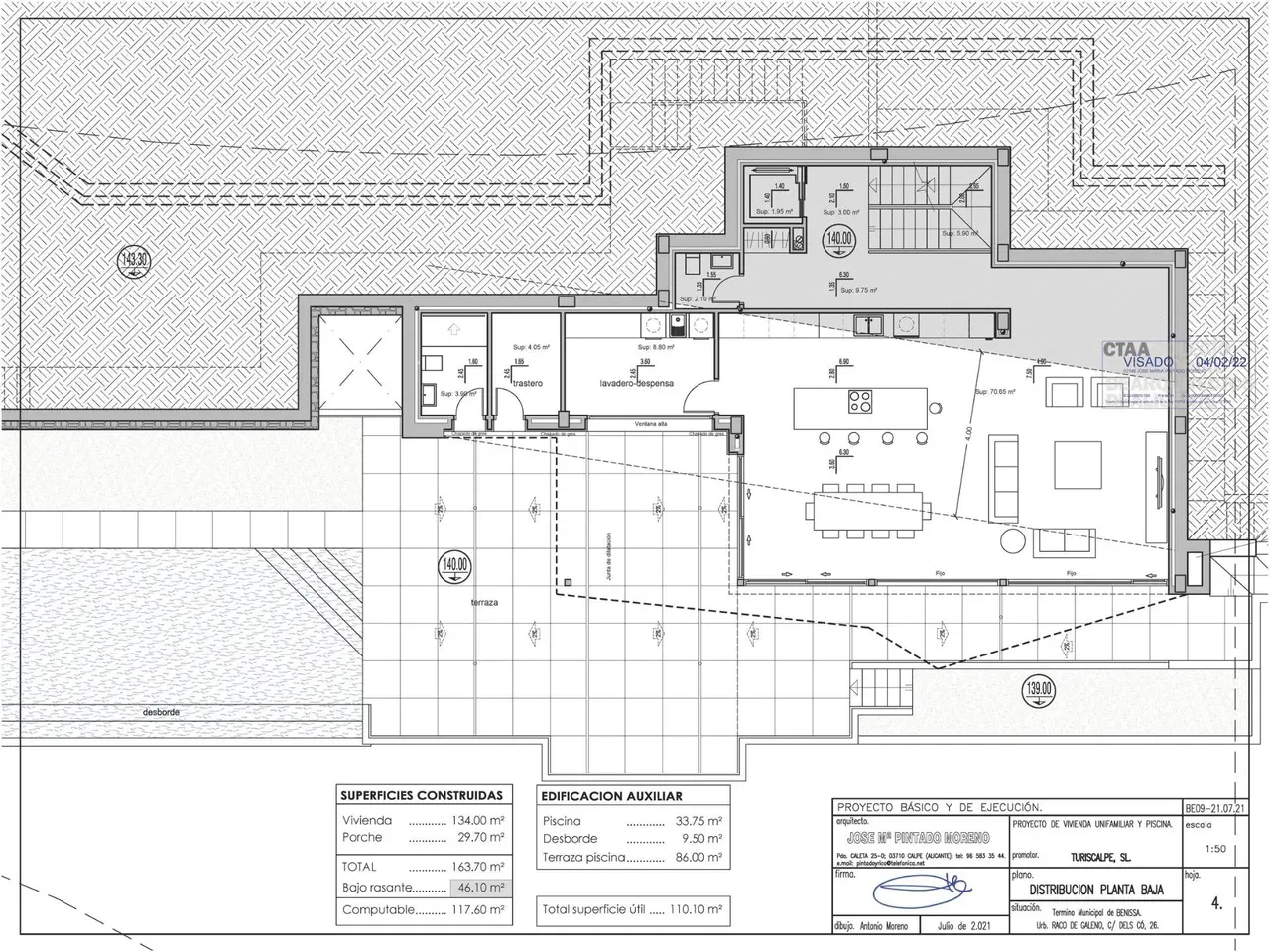 Luksusowa nowa willa z panoramicznym widokiem na morze w Raco de Galeno, Benissa Costa Ekskluzywna lokalizacja na Costa Blanca Położona w prestiżowej urbanizacji Raco de Galeno w Benissa Costa, ta luksusowa willa oferuje idealne połączenie nowoczesnego designu i śródziemnomorskiego uroku. Nieruchomość znajduje się zaledwie 2 km od najbliższych plaż i tylko 5 km od autostrady AP-7, zapewniającej szybki dojazd do Moraira, Calpe i innych znanych miejscowości na wybrzeżu Costa Blanca. Międzynarodowe lotnisko w Alicante znajduje się w odległości około 80 km, a prestiżowe pola golfowe, takie jak Club de Golf Ifach i Altea Golf, znajdują się w odległości 10-15 km. Nowoczesna architektura i przestronne wnętrza Zaprojektowana z myślą o maksymalnym wykorzystaniu naturalnego światła i spektakularnych widoków na morze, willa charakteryzuje się współczesną architekturą z dużymi oknami od podłogi do sufitu i płynnym przejściem między wnętrzem a otoczeniem zewnętrznym. Dom, rozłożony na kilku poziomach i połączony prywatną windą, oferuje cztery przestronne sypialnie, każda z łazienką, oraz dodatkową toaletę dla gości. Apartament główny ma bezpośredni dostęp do prywatnego tarasu z rozległym widokiem na Morze Śródziemne. Wyjątkowe przestrzenie mieszkalne i rozrywkowe Otwarta część dzienna z jadalnią uzupełniona jest w pełni wyposażoną designerską kuchnią z najwyższej klasy sprzętem AGD, idealną zarówno do codziennego życia, jak i organizowania przyjęć. Nieruchomość otaczają rozległe tarasy, tworząc wiele miejsc do relaksu i rozrywki na świeżym powietrzu. Luksusowy styl życia na świeżym powietrzu Najważniejszym atutem tej willi jest basen bez krawędzi, z którego roztacza się panoramiczny widok na wybrzeże. Obszerny taras przy basenie stanowi idealne miejsce do opalania się, spożywania posiłków na świeżym powietrzu lub podziwiania niezapomnianych zachodów słońca z rodziną i przyjaciółmi. Najwyższej klasy wyposażenie i komfort Ta nowo wybudowana willa wyposażona jest w zaawansowaną technologię inteligentnego domu, ogrzewanie podłogowe i klimatyzację kanałową, zapewniającą komfort przez cały rok. Nieruchomość posiada również podziemną kondygnację z dużą przestrzenią do dodatkowego wykorzystania. Idealna jako dom stały lub wakacyjny Dzięki pełnej licencji budowlanej i przewidywanemu zakończeniu budowy w ciągu 18 miesięcy od rezerwacji, willa ta stanowi wyjątkową okazję do posiadania współczesnego arcydzieła w jednej z najbardziej pożądanych lokalizacji na Costa Blanca. Bliskość piaszczystych plaż, uroczych nadmorskich miasteczek, marin, centrów handlowych i możliwości uprawiania sportów na świeżym powietrzu zwiększa jej atrakcyjność zarówno jako miejsca stałego zamieszkania, jak i ekskluzywnego miejsca wypoczynku. Zabezpiecz swoją wymarzoną willę w Raco de Galeno, Benissa Costa i ciesz się najlepszym śródziemnomorskim stylem życia z zapierającymi dech w piersiach widokami na morze i niezrównanym komfortem.