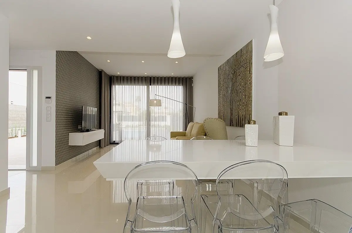 NOWA WYBUDOWANA WILLA W PLAYA HONDA Willa z piwnicą, garażem, prywatnym basenem i solarium, w pełni wykończona i gotowa do zamieszkania. Znajduje się na działce o powierzchni ponad 400 m2 i 1 km od plaży Mar Menor w Playa Honda, ze wszystkimi usługami wokół. W pobliżu słynnego pola golfowego La Manga i parku przyrody Calblanque.