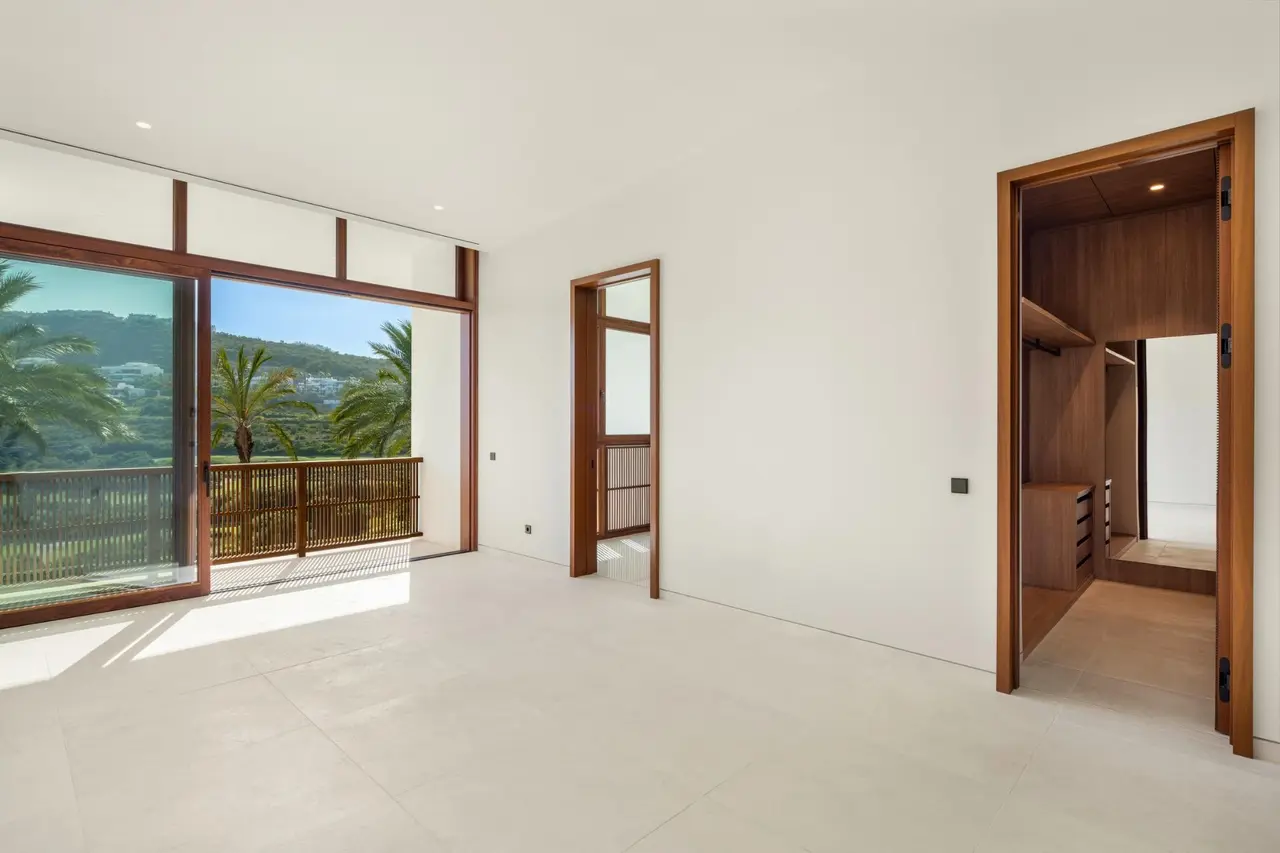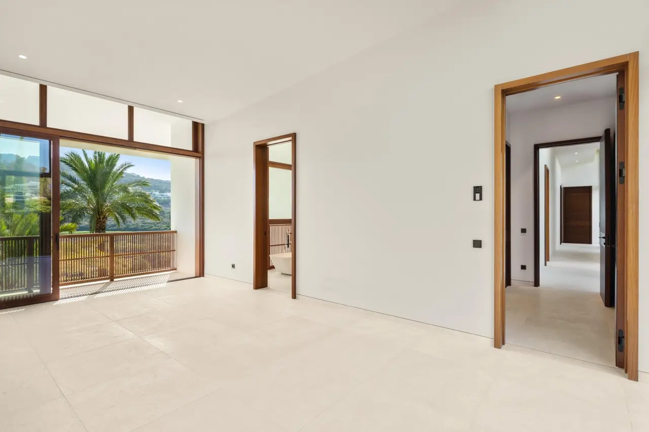 RYNEK PIERWOTNY EKSKLUZYWNA WILLA W FINCA CORTESÍN, CASARES Ta wyjątkowa rezydencja, ekskluzywna dla ośrodka Finca Cortesin, emanuje urzekającą mieszanką luksusu i elegancji. Zaprojektowane przez renomowanych architektów Jose Maria Sierra, to architektoniczne arcydzieło nie ma sobie równych na Costa del Sol, szczycąc się niezwykłą działką i zapierającymi dech w piersiach widokami. Nieruchomość posiada mnóstwo okien sięgających od podłogi do sufitu, które zdobią oba poziomy, pozwalając naturalnemu światłu zalać wnętrza. Uderzająca biała fasada, ozdobiona drewnianymi akcentami, nadaje ton płynnemu przejściu między przestrzenią zewnętrzną i wewnętrzną. Na szczególną uwagę zasługuje imponująca wysokość sufitu, sięgająca aż 9 metrów w części dziennej na parterze. Unikalną cechą jest mniejsza część mieszkalna na najwyższym piętrze, zapewniająca punkt widokowy z widokiem na przestrzeń mieszkalną na parterze – prywatne zacisze, podobne do ukrytego tarasu w obrębie nieruchomości. Górny poziom przeznaczony jest na główną sypialnię i dwa pokoje gościnne, z których każdy oferuje swój własny urok z oszałamiającym widokiem na pole golfowe i Morze Śródziemne. Niższy poziom obejmuje pozostałe sypialnie, część dzienną i kuchnię – harmonijne połączenie funkcjonalności i stylu. Cały parter bez wysiłku otwiera się na ogród, witając świeże powietrze i naturalne światło w nieruchomości. Perłą w koronie tej rezydencji jest spektakularny ogród, rozległy i starannie wypielęgnowany. Ogród jest rajem dla entuzjastów spędzania czasu na świeżym powietrzu i oferuje kuszący basen z ciemnymi lazurowymi kafelkami, który zachęca do orzeźwiającej kąpieli, a zintegrowana altana obok basenu zapewnia idylliczne miejsce do relaksu. Majestatyczne palmy otaczają ogród, uzupełniając rozległe widoki na pole golfowe i wybrzeże Morza Śródziemnego. Zachwycająca architektura krajobrazu, obejmująca wspaniałe klomby i starannie przycięte krzewy, dodaje odrobinę naturalnego piękna. Dzięki uprzywilejowanej lokalizacji przy polu golfowym, inspirującej architekturze i niezrównanej atmosferze, ta naprawdę wyjątkowa nieruchomość jest świadectwem uroku Finca Cortesin Resort.