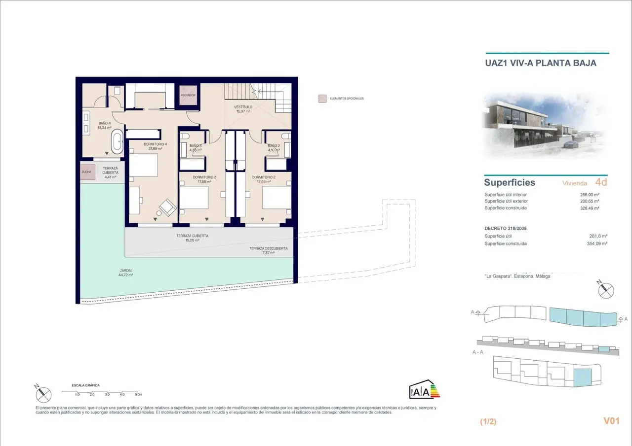 Ekskluzywne nowe wille z widokiem na morze w Esteponie Wille z 4 sypialniami, prywatnym basenem i indywidualnym projektem Odkryj tę wyjątkową ofertę 8 niezależnych, nowo wybudowanych willi w Esteponie, zaprojektowanych na miarę Twojego stylu życia. Każda nieruchomość posiada 4 sypialnie rozmieszczone na dwóch kondygnacjach, prywatny basen, ogród o powierzchni do 100 m² oraz przestronne tarasy, idealne do cieszenia się wyjątkowym klimatem Costa del Sol przez cały rok. Niezrównana lokalizacja na Costa del Sol Położone w jednej z najbardziej ekskluzywnych i poszukiwanych dzielnic Estepony, wille te znajdują się zaledwie 400 metrów od plaży i w pobliżu wszystkich niezbędnych usług: supermarketów, restauracji, międzynarodowych szkół i centrów medycznych. Ponadto są doskonale skomunikowane drogami, co zapewnia szybki dojazd do kluczowych punktów, takich jak: Marina w Esteponie: 4 km (5 minut jazdy samochodem) Puerto Banús (Marbella): 20 km Sotogrande: 35 km Lotnisko w Gibraltarze: 55 km (45 minut) Lotnisko Malaga-Costa del Sol: 80 km (50 minut) Pobliskie pola golfowe: Valle Romano Golf i Finca Cortesín, oba w odległości mniej niż 10 km Nowoczesny design i przestrzenie zaprojektowane z myślą o dobrym samopoczuciu Z najwyższego piętra domów rozciąga się panoramiczny widok na morze, tworząc atmosferę spokoju i odprężenia. Istnieje możliwość personalizacji elementów, takich jak klimatyzacja basenu lub instalacja windy wewnętrznej (za dodatkową opłatą). Wszystkie przestrzenie zostały starannie zaprojektowane, aby zapewnić funkcjonalność, estetykę i komfort. Najwyższa jakość i efektywność energetyczna Wille charakteryzują się wysokiej klasy wykończeniem i zrównoważonym podejściem do środowiska, obejmującym: Ogrzewanie podłogowe w całym domu Klimatyzację kanałową System aerotermiczny zapewniający efektywność energetyczną W pełni wyposażoną kuchnię z wysokiej klasy sprzętem AGD Zasłony z napędem elektrycznym w sypialniach Panele słoneczne zapewniające oszczędność energii Prywatny garaż na 2 samochody z automatyczną bramą Luksusowe życie w niezrównanym otoczeniu natury Ciesz się idealnym połączeniem współczesnego designu, natury i komfortu. Niezależnie od tego, czy szukasz stałego miejsca zamieszkania, czy drugiego domu, ta inwestycja oferuje wszystko, czego potrzebujesz, aby cieszyć się prawdziwym śródziemnomorskim stylem życia. Nie przegap tej wyjątkowej okazji w Esteponie. Skontaktuj się z nami już dziś, aby uzyskać więcej informacji lub umówić się na indywidualną wizytę.