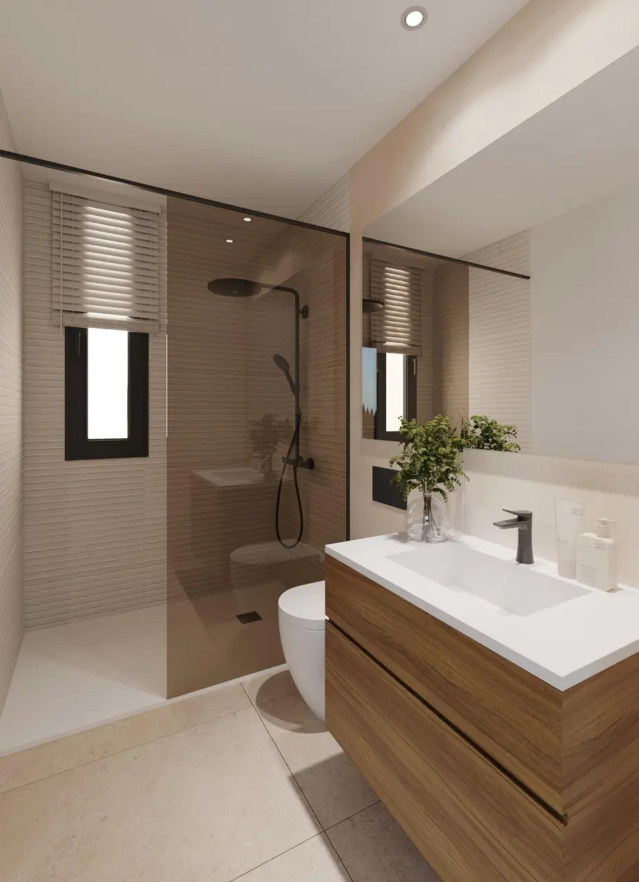 Nowe wille w Hacienda del Álamo Golf Resort, Murcja Nowoczesne domy w naturalnym i ekskluzywnym otoczeniu Odkryj te fantastyczne nowe wille w prestiżowym Hacienda del Álamo Golf Resort, zamkniętym osiedlu w regionie Murcji, które łączy spokój, bezpieczeństwo i pełną ofertę usług. Otoczony naturą i cieszący się wyjątkowym klimatem kompleks jest idealnym miejscem dla osób poszukujących relaksującego stylu życia bez rezygnacji z komfortu. Wille z 3 sypialniami na jednym poziomie z solarium Osiedle składa się z 15 willi na działkach o powierzchni od 550 m2. Wszystkie domy mają 3 sypialnie i 2 łazienki na jednym piętrze, a także taras z prywatnym basenem i prywatny solarium na dachu z widokiem na pole golfowe. Wysokiej jakości wykończenie i gwarantowany komfort Domy zostały zaprojektowane z wysokiej jakości materiałów i z myślą o energooszczędności i komforcie: Zewnętrzna stolarka z przegrodami termicznymi Ciepła woda dzięki systemowi aerotermicznemu Instalacja klimatyzacji kanałowej Prywatny basen Niezależna instalacja wody do nawadniania z zbiornikiem akumulacyjnym i indywidualną pompą ciśnieniową, z przyłączami nawadniania w garażu i ogrodzie. Zmotoryzowana brama wjazdowa. Ośrodek z pełnym zakresem usług i polem golfowym Hacienda del Álamo to jeden z najbardziej kompletnych kompleksów na Costa Cálida. Oferuje: Profesjonalne 18-dołkowe pole golfowe Hotel ze spa Supermarket Restauracje i bary Boiska sportowe i tereny zielone Całodobowa ochrona Osiedle odtwarza atmosferę tradycyjnej śródziemnomorskiej wioski, z cichymi uliczkami i starannie zaprojektowaną zabudową. Strategiczna lokalizacja blisko wszystkiego Międzynarodowe lotnisko w Murcji (Corvera): 20 km Dodatkowe pola golfowe: mniej niż 10 km Kartagena: 35 km Plaże Morza Menor: 30 km Centrum handlowe Espacio Mediterráneo: 28 km Port w Mazarrón: 40 km Żyj stylowo na wybrzeżu Costa Cálida Te wille stanowią doskonałą okazję do zamieszkania lub zainwestowania w jednej z najbardziej perspektywicznych dzielnic Murcji. Skontaktuj się z nami już teraz i odkryj swój nowy dom w Hacienda del Álamo Golf Resort.
