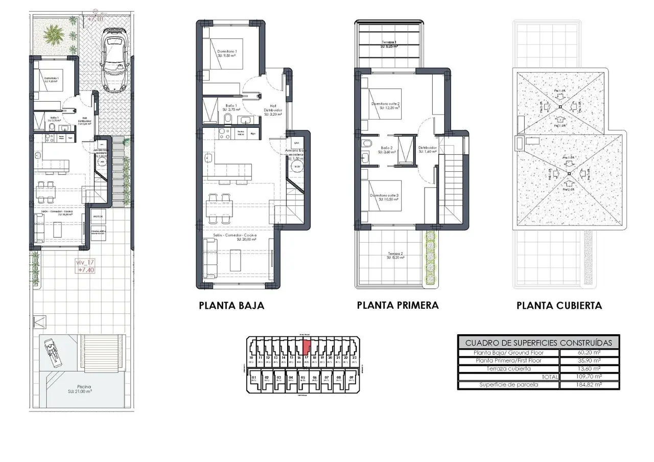 NOWO WYBUDOWANE WILLE W STYLU IBICENCAN W LOS ALCAZARES Wille w stylu Ibizy zbudowane na 2 piętrach, mają 3 sypialnie, 2 łazienki, salon, kuchnię, taras, parking i prywatny basen. Opcje prywatnego solarium za dodatkową opłatą. Starannie zaprojektowana obudowa z wysokiej jakości materiałów, aby zadowolić najbardziej wymagających klientów. Wille znajdują się 1 km od plaży i miasta Los Alcázares, gdzie można uprawiać różne sporty wodne, w otoczeniu kilku pól golfowych. Miasto Cartagena mniej niż 15 minut jazdy samochodem i 30 minut od lotniska Murcia Corvera.
