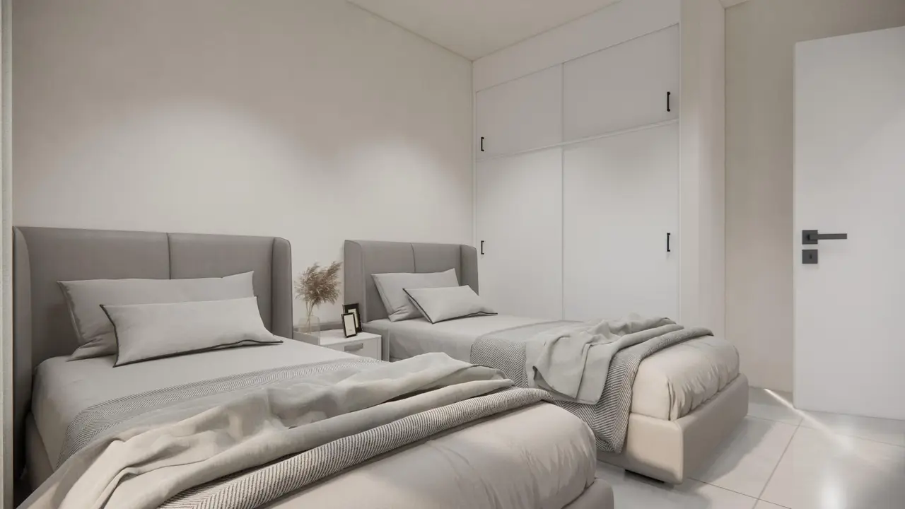 Nowoczesne, nowo wybudowane wille w La Herrada Los Montesinos z prywatnym basenem Ekskluzywny projekt mieszkaniowy w spokojnej okolicy Położona w prestiżowej urbanizacji La Herrada w Los Montesinos, ta ekskluzywna inwestycja obejmująca 16 nowoczesnych willi zapewnia prywatność, komfort i doskonałą jakość życia. La Herrada słynie z spokojnej atmosfery, bliskości codziennych usług i uprzywilejowanego położenia pomiędzy słynnymi słonymi jeziorami Torrevieja i La Mata. Jest to idealna lokalizacja dla osób poszukujących relaksującego i zdrowego śródziemnomorskiego stylu życia na południu Costa Blanca. Nowoczesny design z optymalną przestrzenią wewnętrzną Każda willa ma 110 m² dobrze zaplanowanej powierzchni mieszkalnej rozmieszczonej na dwóch piętrach, zaprojektowanej tak, aby maksymalnie wykorzystać naturalne światło i funkcjonalność. Nieruchomości, zbudowane na działkach o powierzchni od 185 m², oferują przestronne obszary zewnętrzne, idealne do opalania się, rozrywki lub relaksu przy prywatnym basenie. Wygodny układ na dwóch piętrach Na parterze znajduje się otwarty salon z w pełni zintegrowaną kuchnią i bezpośrednim dostępem do ogrodu i basenu. Na tym poziomie znajduje się również jedna sypialnia, w pełni wyposażona łazienka i wygodna pralnia. Na piętrze znajdują się dwie przestronne sypialnie, każda z własną łazienką, z których jedna jest łazienką przylegającą. Obie sypialnie mają dostęp do prywatnego otwartego tarasu o powierzchni 17 m². Dla tych, którzy chcą mieć jeszcze więcej przestrzeni na świeżym powietrzu, dostępne jest opcjonalne solarium na dachu, dostępne za dodatkową opłatą. Wysokiej jakości wykończenia i nowoczesne wyposażenie Wille wyposażone są w wysokiej jakości elementy wykończeniowe, takie jak meble łazienkowe, lustra, kabiny prysznicowe i ogrzewanie podłogowe we wszystkich łazienkach. Istnieje możliwość instalacji klimatyzacji kanałowej, bramy wjazdowej z napędem elektrycznym, prywatnego parkingu na działce oraz ogrodzonego dostępu do osiedla przez prywatną wewnętrzną ulicę. Doskonała lokalizacja w pobliżu kluczowych udogodnień i atrakcji Plaże Guardamar i Torrevieja 9 km La Marquesa Golf, La Finca Golf i Vistabella Golf w promieniu 5 km Lotnisko w Alicante 29 km Parki przyrodnicze, słone jeziora, trasy rowerowe i szlaki turystyczne w pobliżu Komfortowe życie w samym sercu Costa Blanca Te nowo wybudowane wille w Los Montesinos oferują idealne połączenie nowoczesnego komfortu, naturalnego otoczenia i doskonałej dostępności. Niezależnie od tego, czy szukasz stałego miejsca zamieszkania, czy domu wakacyjnego, ta inwestycja zapewnia wszystko, czego potrzebujesz, aby cieszyć się spokojnym i wygodnym śródziemnomorskim stylem życia. Skontaktuj się z nami już dziś, aby umówić się na oglądanie nieruchomości i zapewnić sobie nowy dom w La Herrada.