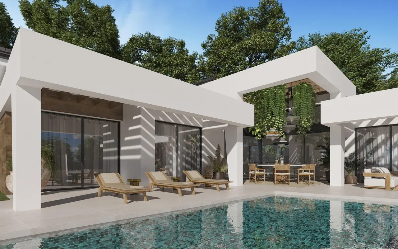 EKSKLUZYWNA LUKSUSOWA WILLA NA WYBRZEŻU COSTA DEL SOL Trzy wyjątkowe wille zbudowane na jednym piętrze, każda z własnym ogrodem krajobrazowym i ekologicznym ogrodem warzywnym o powierzchni 36 m2. Przestronne tarasy, obszary ogrodowe z trawnikami z automatycznym nawadnianiem z dyfuzorami, basen z chlorowaniem soli i strefa relaksu z zimowym ogniskiem. Posiadają podziemny garaż i dużą piwnicę, którą można dostosować do gustu i stylu życia każdej rodziny. Każda willa będzie wyposażona w najbardziej zaawansowane technologie (aerotermia, oświetlenie LED, automatyka domowa). Wszystko to pozwala nam osiągnąć komfortowy, nowoczesny i wydajny dom, dom XXI wieku. Połączenie naturalnych kolorów i wykorzystanie drewna tworzą wyjątkowe wrażenie absolutnego komfortu i intymnego związku z naturą. W jednej z najbardziej znanych dzielnic mieszkaniowych Marbelli, ze wszystkimi usługami i udogodnieniami, w otoczeniu najbardziej znanych pól golfowych w okolicy. Gdzie tętni życie nocne z restauracjami serwującymi najbardziej zróżnicowane i pyszne dania kuchni międzynarodowej, a także piękną promenadą i szerokimi piaszczystymi plażami w okolicy. Położony zaledwie 5 minut jazdy od Puerto Banús, najbardziej luksusowego i najważniejszego portu jachtowego na świecie, ze słynną mariną. Spośród wszystkich wybrzeży Morza Śródziemnego, plaże, miasta i pola golfowe Costa del Sol są jedynymi, gdzie można cieszyć się ponad 320 słonecznymi dniami w roku i średnią roczną temperaturą 20º Celsjusza. Miejsce, w którym można cieszyć się prawdziwym śródziemnomorskim stylem życia.