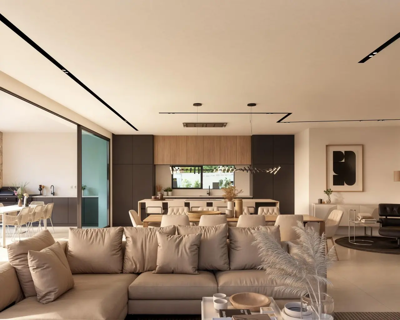 Luksusowa nowa willa z widokiem na morze w Moraira Doskonała lokalizacja w pobliżu plaży i centrum miasta Ta luksusowa willa w Moraira jest idealnie położona zaledwie 1,8 km od plaży i tętniącego życiem centrum miasta, oferując idealną równowagę między prywatnością a wygodą. Moraira, urocze nadmorskie miasteczko na Costa Blanca, znane jest z pięknych piaszczystych plaż, krystalicznie czystej wody i śródziemnomorskiego stylu życia. Miasto oferuje szeroki wybór restauracji, barów, supermarketów i tętniącą życiem marinę. Międzynarodowe lotnisko w Alicante znajduje się w odległości około 90 km (1h15) autostradą A7, a lotnisko w Walencji leży w podobnej odległości na północ, co zapewnia łatwy i wygodny dojazd. Nowoczesny design i przestronne wnętrza Willa zbudowana na działce o powierzchni 912 m² ma łączną powierzchnię 350 m² na dwóch kondygnacjach. Dom posiada 4 sypialnie z łazienkami oraz toaletę dla gości, wszystkie wykończone materiałami najwyższej jakości. Na parterze znajduje się jasny salon z jadalnią i nowoczesną kuchnią z wyspą. Z tego pomieszczenia duże przesuwane drzwi prowadzą bezpośrednio na taras, letnią kuchnię i prywatny basen. Na tym poziomie znajduje się również sypialnia z łazienką, toaleta dla gości, pralnia i wielofunkcyjne pomieszczenie. Eleganckie piętro z widokiem na morze Designerskie schody prowadzą na piętro, na którym znajdują się trzy dodatkowe sypialnie z łazienkami, a także przestronny hol wejściowy i prywatny taras z przepięknym widokiem na morze. Nieruchomość oferuje również garaż, prywatny parking, ogrzewanie podłogowe, klimatyzację, podwójne szyby i wzmocnione drzwi antywłamaniowe, zapewniające maksymalny komfort i spokój ducha. Śródziemnomorska oaza na świeżym powietrzu Zewnętrzna część nieruchomości została zaprojektowana jako prywatna oaza, łącząca ogrody krajobrazowe, zadaszone i otwarte tarasy, prywatny basen z prysznicem na świeżym powietrzu oraz miejsce na grilla, idealne do rozrywki. Położenie od strony południowo-wschodniej gwarantuje mnóstwo naturalnego światła przez cały dzień, dzięki czemu każdy zakątek willi jest jasny i przytulny. Styl życia w Moraira Moraira słynie z relaksującej, a jednocześnie kosmopolitycznej atmosfery. Rodziny pokochają bezpieczną piaszczystą plażę, a miłośnicy przyrody będą mogli cieszyć się wspaniałymi spacerami wzdłuż wybrzeża z widokiem na Peñón de Ifach w Calpe, oddalonym o zaledwie 12 km. Miłośnicy golfa również znajdą doskonałe pola golfowe w odległości od 10 do 15 km. Twoja wymarzona willa czeka Doświadcz luksusowego życia w Moraira dzięki tej ekskluzywnej willi. Skontaktuj się z nami już dziś, aby umówić się na oglądanie i sprawić, że ten śródziemnomorski raj stanie się Twoim nowym domem.