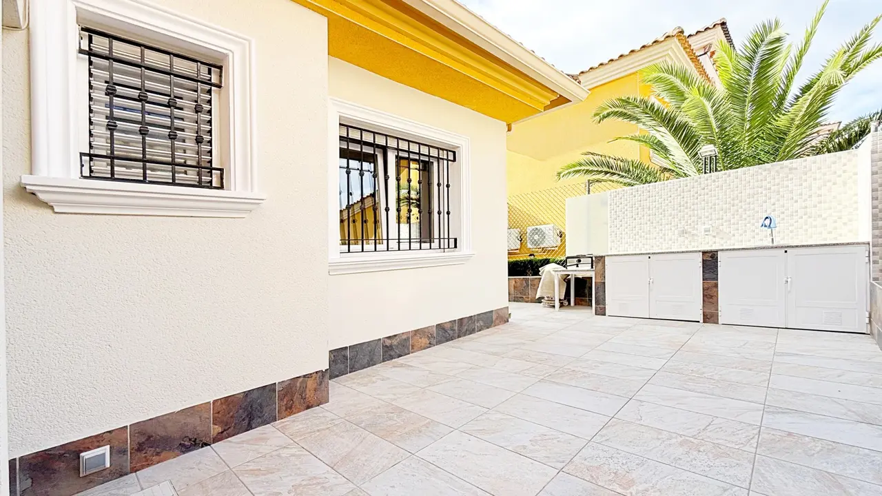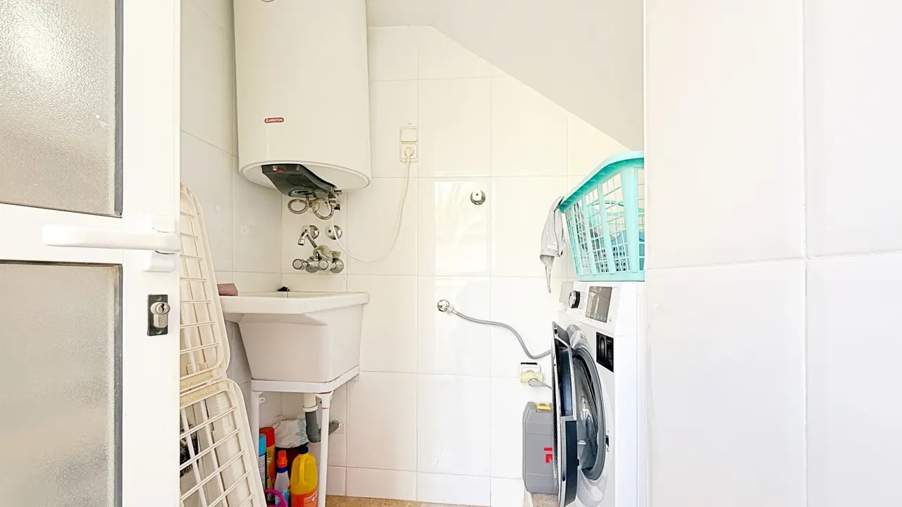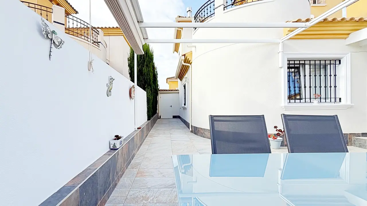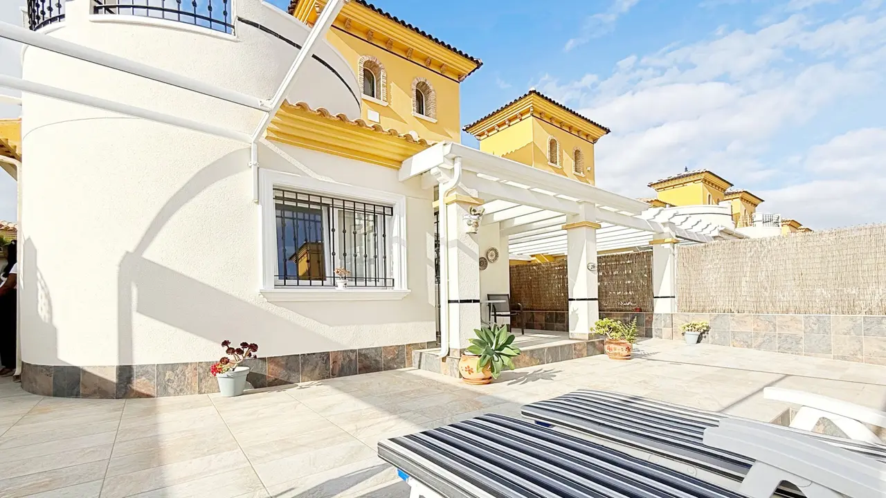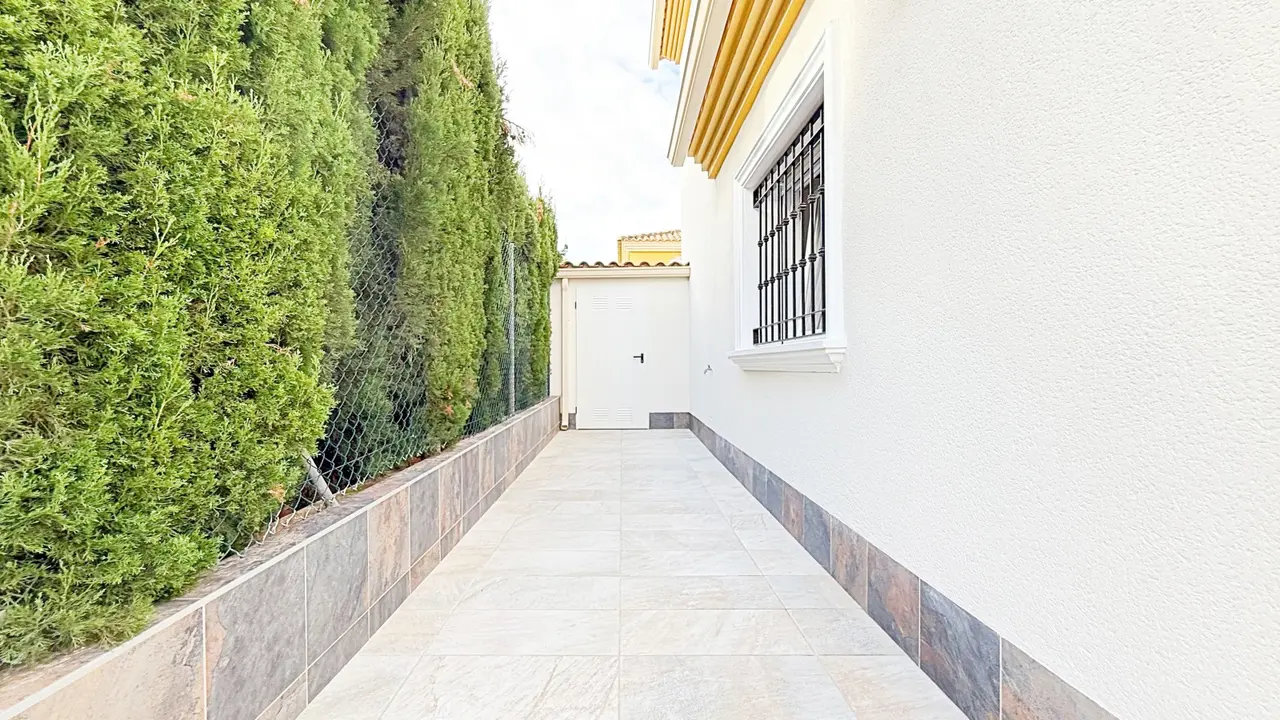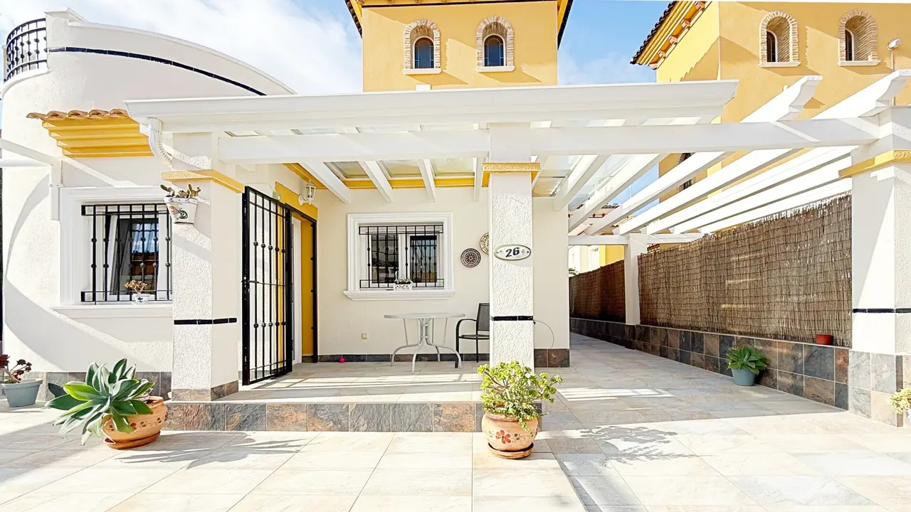 Na zewnątrz willa oferuje prywatną działkę z miejscem parkingowym i schowkiem, co zapewnia dodatkową wygodę i przestrzeń. Osiedle strzeżone oferuje zagospodarowane części wspólne i wspólny basen, idealny do cieszenia się śródziemnomorskim klimatem.