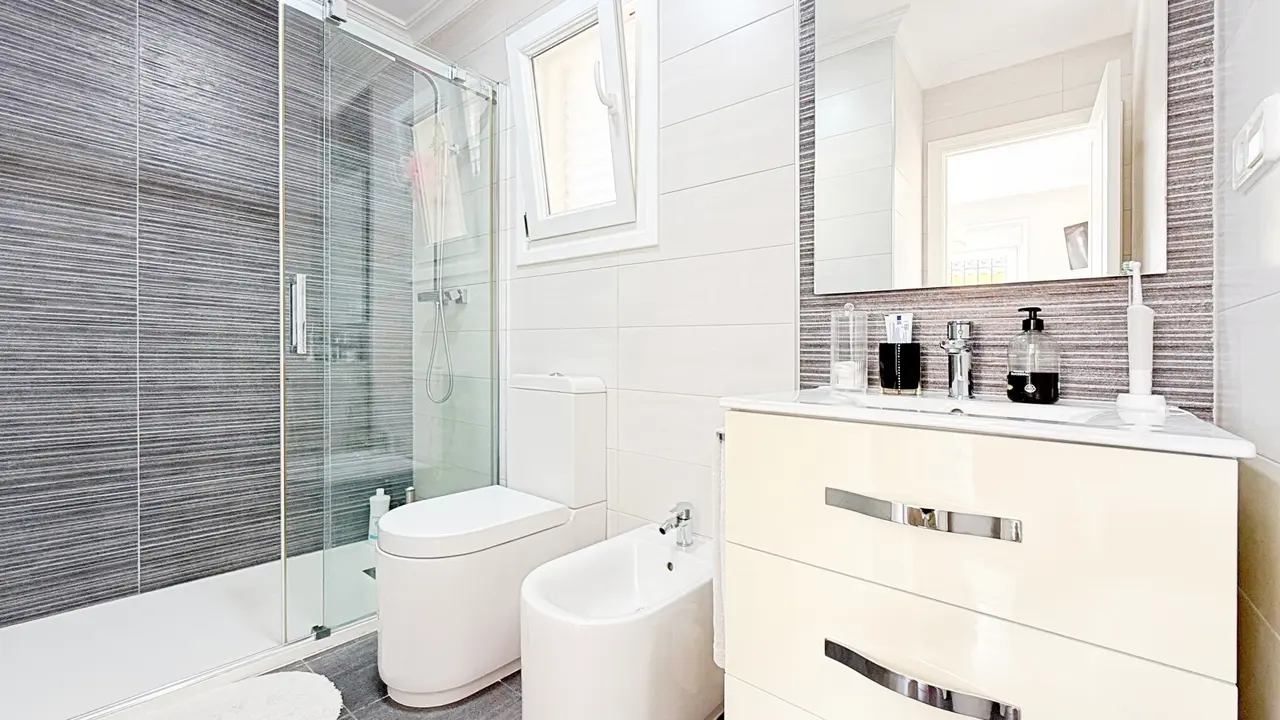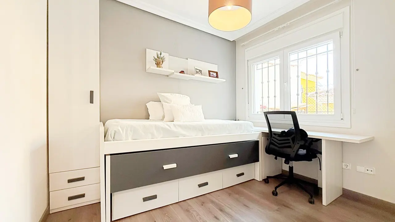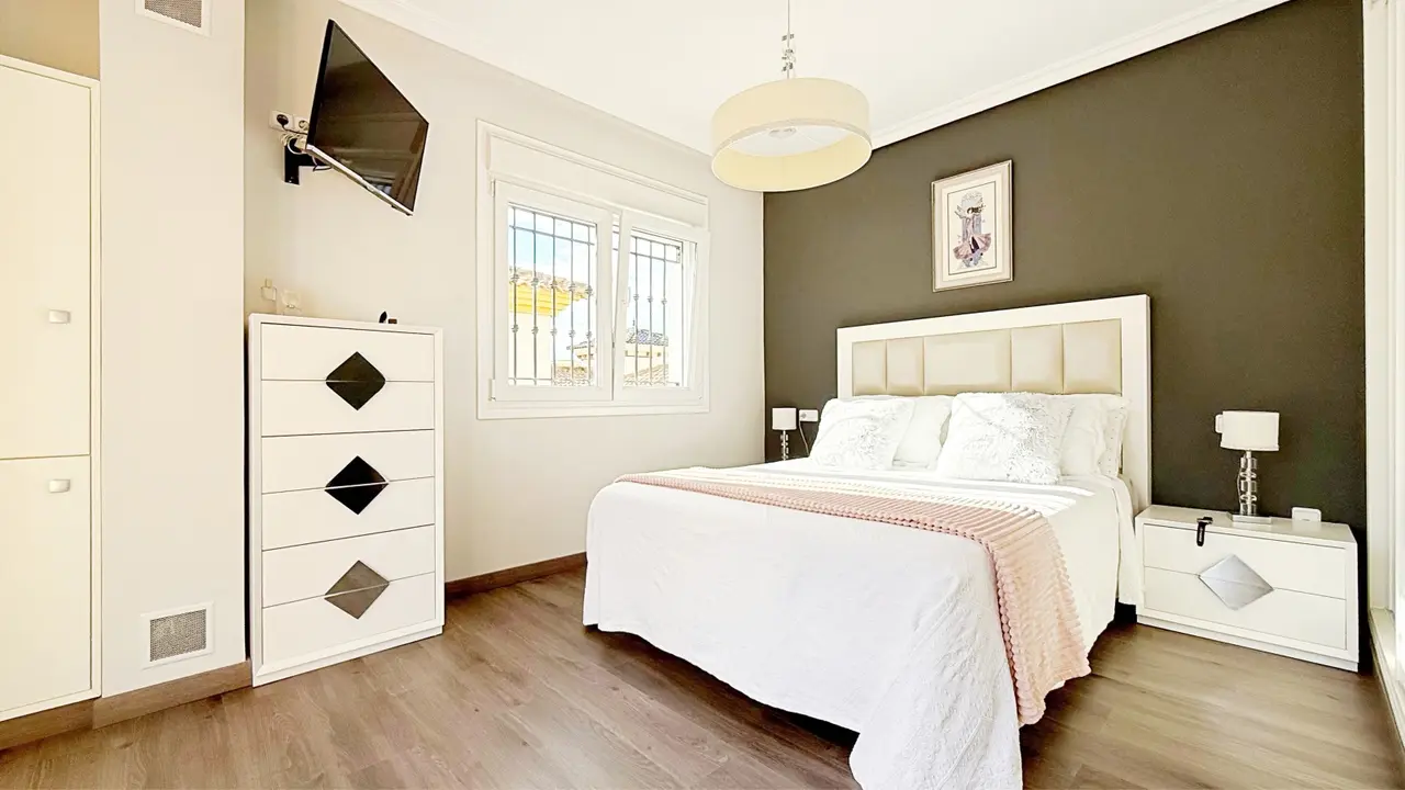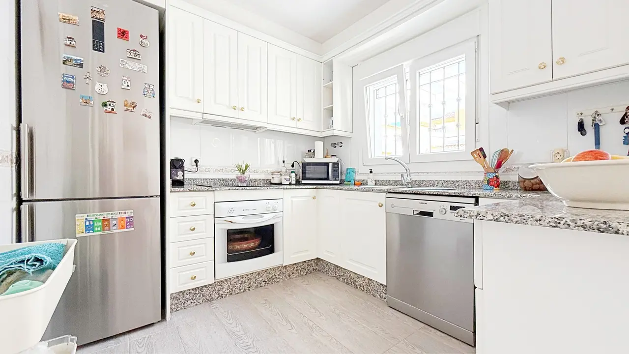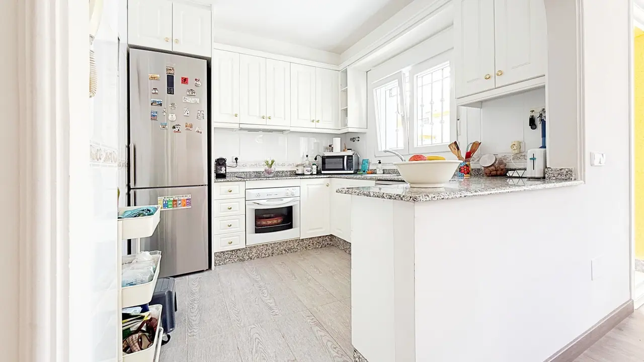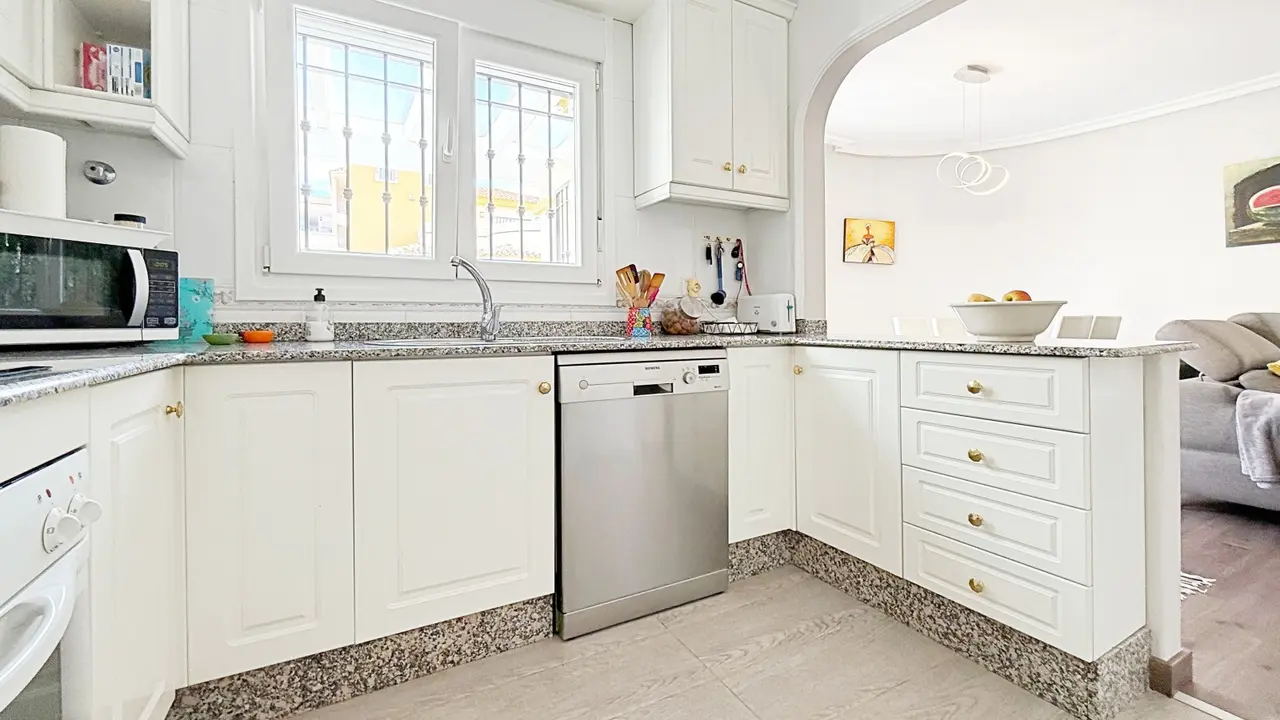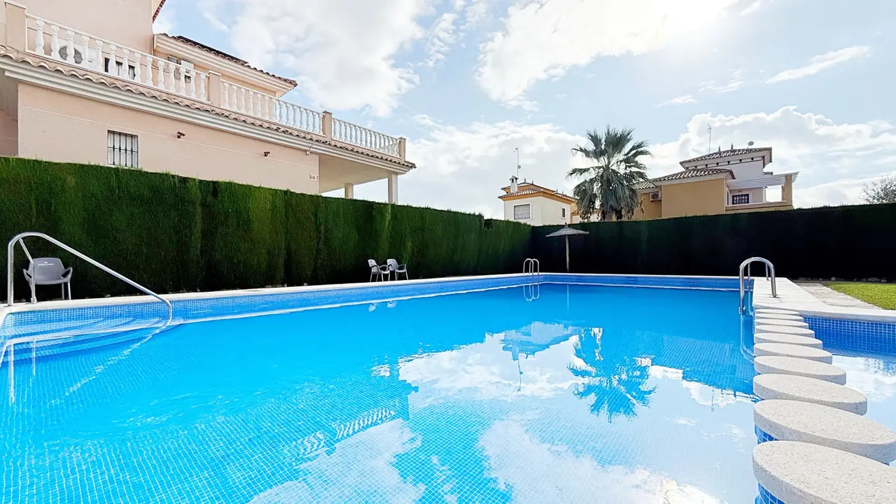 Na zewnątrz willa oferuje prywatną działkę z miejscem parkingowym i schowkiem, co zapewnia dodatkową wygodę i przestrzeń. Osiedle strzeżone oferuje zagospodarowane części wspólne i wspólny basen, idealny do cieszenia się śródziemnomorskim klimatem.