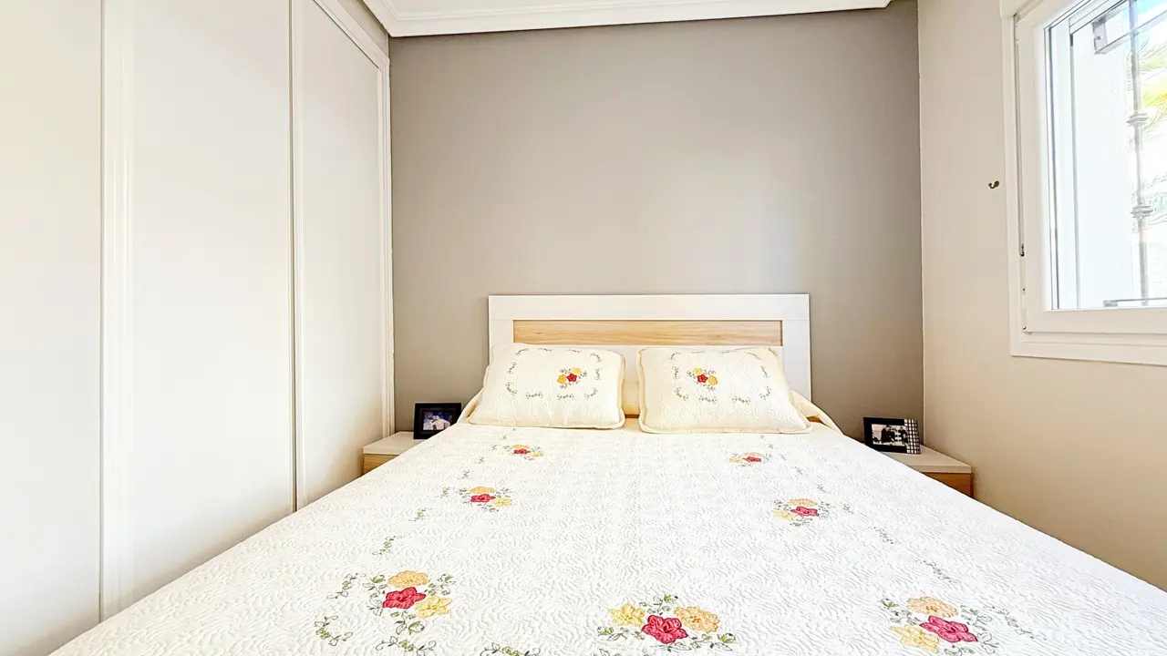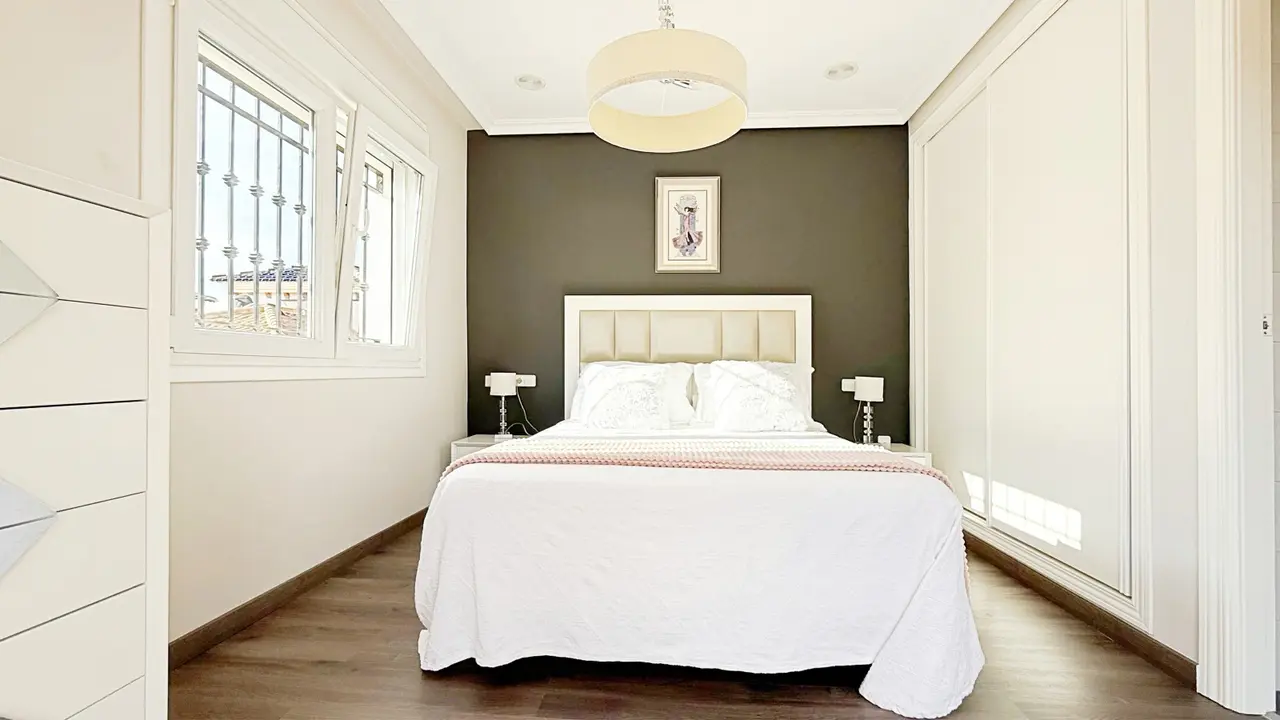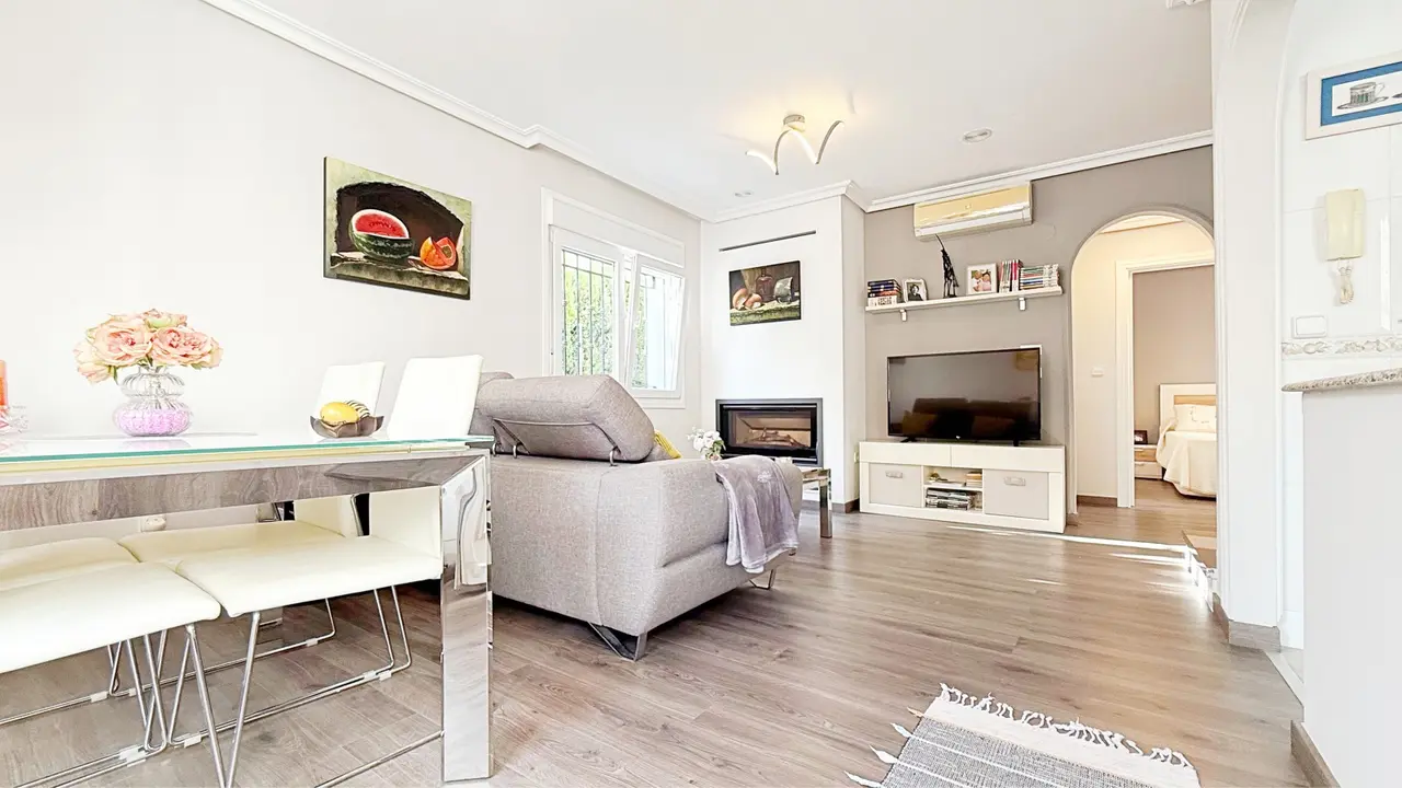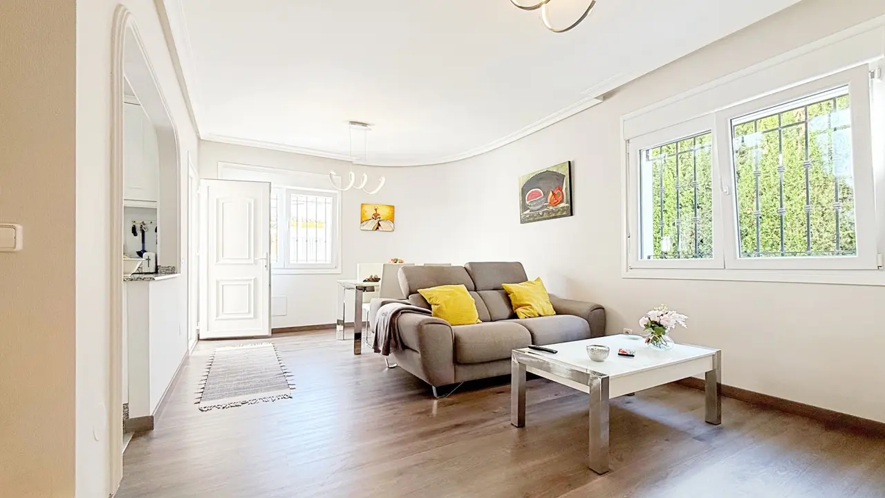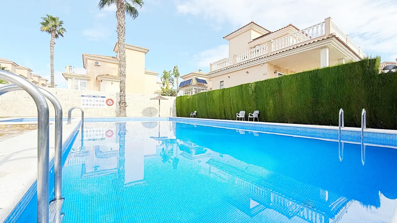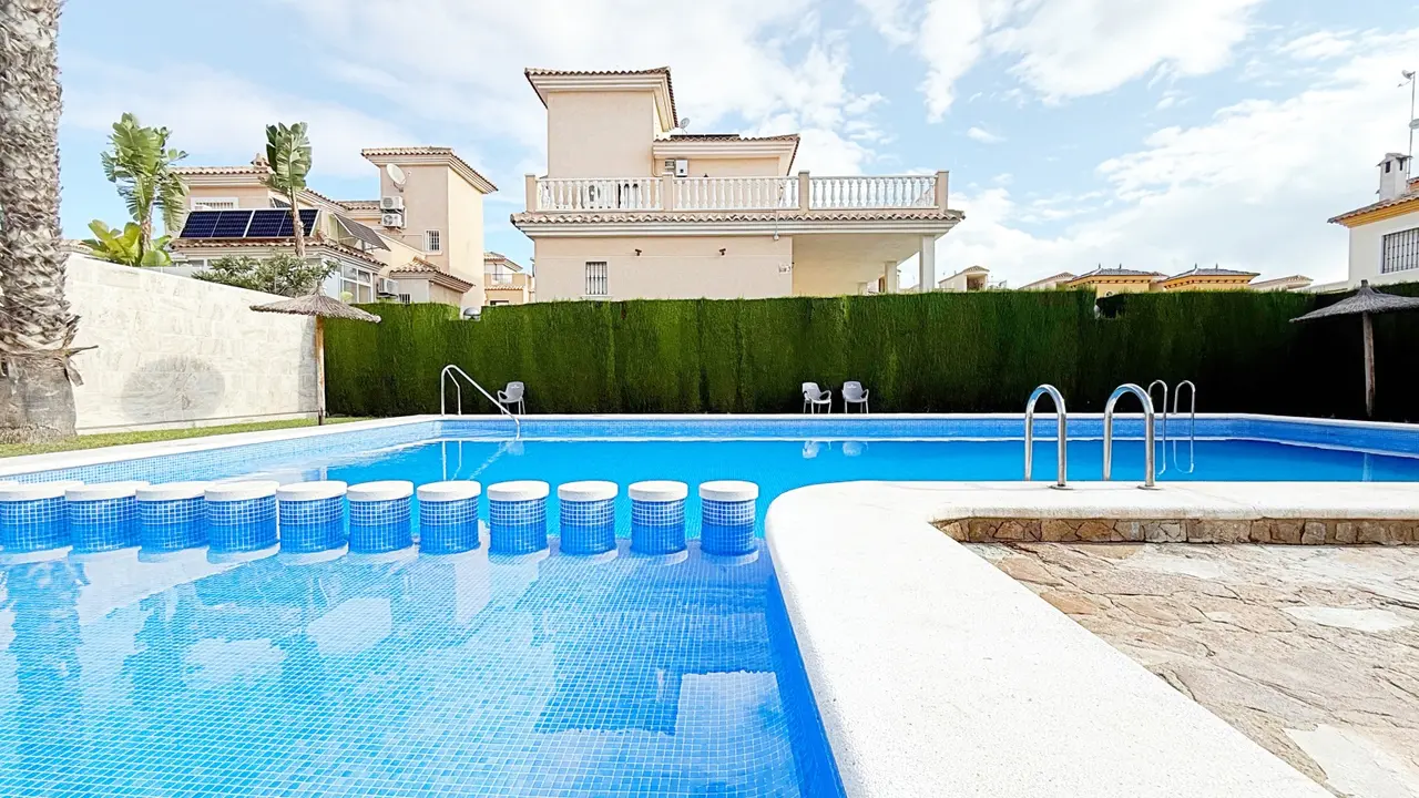 Ta wspaniała, wolnostojąca willa o powierzchni 105 m², całkowicie odnowiona i rozłożona na dwóch piętrach, znajduje się w prywatnym kompleksie mieszkalnym ze wspólnym basenem, w niewielkiej odległości od plaży.