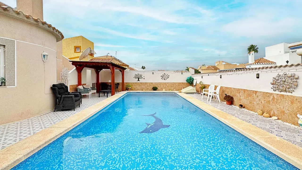 Ta piękna, wolnostojąca willa na sprzedaż w La Florida, Orihuela Costa, łączy w sobie prywatność, komfort i niezrównaną lokalizację w samym sercu południowego wybrzeża Costa Blanca. Nieruchomość o powierzchni 75 m², położona na działce o powierzchni 260 m², znajduje się w spokojnej dzielnicy mieszkalnej, w pobliżu wszystkich niezbędnych usług, takich jak supermarkety, restauracje, ośrodki zdrowia i transport publiczny.