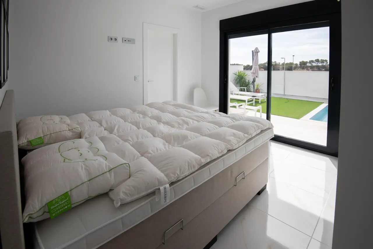 NOWE WILLE BUDOWLANE W PINAR DE CAMPOVERDE Nowoczesne osiedle nowo wybudowanych willi w Pinar de Campoverde. Niewielka inwestycja składająca się z zaledwie 5 willi, zbudowanych na jednym piętrze z 3 sypialniami i 2 łazienkami, salonem i jadalnią na otwartym planie, w pełni wyposażoną kuchnią z centralną wyspą i widokiem na prywatny basen, na niezależnych działkach o powierzchni od 300,00 m2. Istnieje również duże solarium, aby cieszyć się słońcem i pięknymi widokami przez cały rok. Wille znajdują się w uprzywilejowanej lokalizacji obok rezerwatu przyrody Rio Seco, w pobliżu udogodnień, obiektów sportowych i pobliskiego pola golfowego Lo Romero, hiszpańskiego miasta Pilar de la Horadada i zaledwie 15 minut jazdy od białych piaszczystych plaż La Torre De la Horadada. Idealne miejsce, jeśli chcesz być w spokojnej okolicy, w otoczeniu przyrody i blisko wszystkich udogodnień, golfa i pięknych plaż.