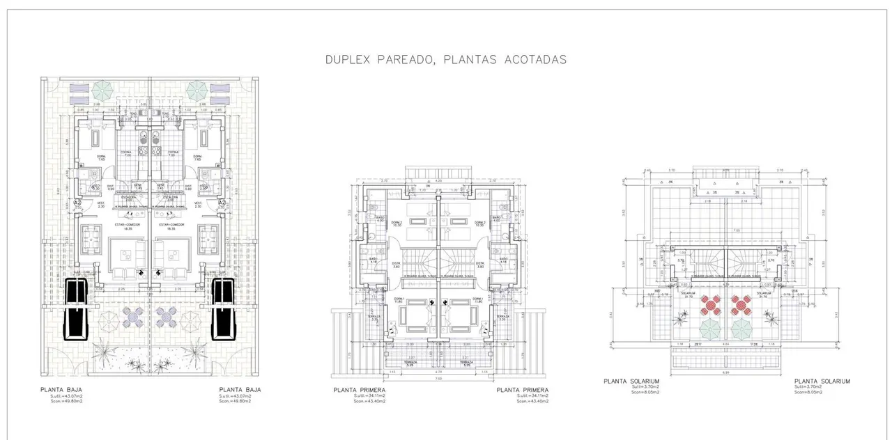 Nowoczesne bliźniacze wille z widokiem na morze w Puerto de Mazarron Ekskluzywne nowe domy w pobliżu plaży Odkryj te fantastyczne, nowo wybudowane bliźniacze wille położone w popularnej okolicy Mar de Plata, El Alamillo, w Puerto de Mazarron. Położone zaledwie 350 metrów od plaży, te nowoczesne domy oferują piękne widoki na morze z prywatnych solariów, zapewniając wyjątkową okazję do cieszenia się śródziemnomorskim stylem życia na Costa Calida. Okolica jest cicha, mieszkalna i dobrze zagospodarowana, idealna do zamieszkania przez cały rok lub jako miejsce wypoczynku wakacyjnego. Przestronny układ z prywatnym solarium Każda willa ma powierzchnię zabudowy 101 m² na działce narożnej o powierzchni 126 m², rozmieszczonej na dwóch piętrach plus solarium. Na parterze znajduje się jasny salon, niezależna kuchnia z dostępem do tylnej części działki, jedna sypialnia dwuosobowa i jedna w pełni wyposażona łazienka. Na pierwszym piętrze znajdują się dwie sypialnie, jedna z dostępem do dwóch tarasów z otwartym widokiem, a druga z łazienką, oraz dodatkowa łazienka rodzinna. Najwyższe piętro przeznaczone jest na prywatne solarium o powierzchni 31 m² z przepięknym widokiem na morze, idealne do opalania się, spożywania posiłków na świeżym powietrzu lub relaksu z przyjaciółmi. Przestrzeń zewnętrzna i basen wspólnotowy Na zewnątrz znajduje się działka narożna z miejscem na prywatny parking z boku i pralnią z tyłu. Kompleks mieszkaniowy oferuje również wspólny basen, tworząc przyjemne środowisko dla rodzin i mieszkańców, którzy mogą spędzać wolny czas w bezpiecznym i przyjaznym otoczeniu. Wysokiej jakości specyfikacje Domy te są zbudowane z wysokiej jakości materiałów i wyposażone w wzmocnione drzwi wejściowe, instalację do klimatyzacji kanałowej, łazienki z meblami, lustrami i kabinami prysznicowymi, system ciepłej wody zasilany energią aerotermiczną, elektryczne rolety w sypialniach i głównych otworach fasadowych oraz aluminiową stolarkę zewnętrzną z podwójnymi szybami. Kuchnia jest dostarczana bez mebli, co pozwala nabywcom na dostosowanie jej do własnych upodobań. Życie w Puerto de Mazarron Puerto de Mazarron jest jednym z najbardziej atrakcyjnych nadmorskich miast w regionie Murcji, znanym z pięknych plaż, krystalicznie czystej wody, uroczej przystani i relaksującej atmosfery. Okolica oferuje doskonałe usługi, sklepy, restauracje, szkoły, centra medyczne i możliwości spędzania wolnego czasu na świeżym powietrzu. Pobliskie tereny naturalne, takie jak Sierra de las Moreras, są idealne do uprawiania turystyki pieszej i rowerowej, a miłośnicy sportów wodnych mogą uprawiać żeglarstwo, nurkowanie i kajakarstwo. Odległości do interesujących miejsc Playa Negra 0,35 km Przystań Mazarron 2 km Centrum handlowe Mazarron Park 5 km Camposol Golf 25 km Hacienda del Alamo Golf 35 km Kartagena 35 km Murcja 70 km Lotnisko Murcja Corvera 45 km Twój dom nad morzem czeka Te nowo wybudowane bliźniacze wille w Puerto de Mazarron łączą w sobie widok na morze, nowoczesny design i doskonałą lokalizację w pobliżu plaży i wszystkich usług. Skontaktuj się z nami już dziś, aby uzyskać więcej informacji lub umówić się na prywatną wizytę.