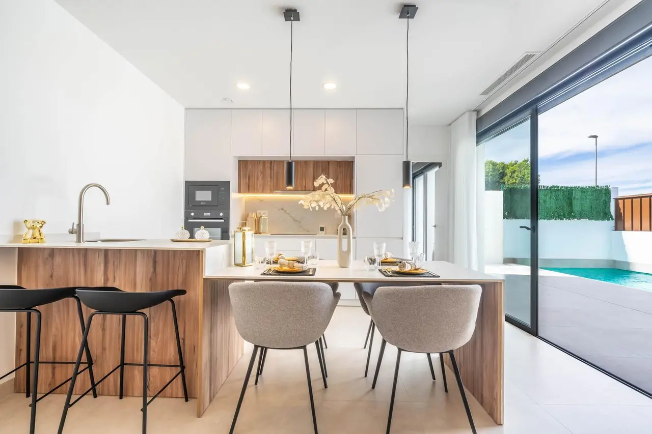 Nowe, wolnostojące wille z prywatnym basenem w Roldán, Torre-Pacheco Nowoczesne, dwupiętrowe wille o ekskluzywnym projekcie Te nowo wybudowane wille z 3 sypialniami i 3 łazienkami, położone w Roldán, Torre-Pacheco, oferują współczesny i ekologiczny projekt, zaprojektowany z myślą o komforcie i śródziemnomorskim stylu życia. Każda z nich ma dwa piętra i składa się z przestronnego salonu z jadalnią i nowoczesną, w pełni wyposażoną kuchnią, która płynnie przechodzi w duże tarasy. Wille zostały starannie zaprojektowane, żeby połączyć funkcjonalność i estetykę, eleganckie wykończenia i dużo miejsca na zewnątrz, gdzie można cieszyć się śródziemnomorskim słońcem przez cały rok. Prywatna przestrzeń na zewnątrz i najwyższej jakości wyposażenie Każda willa ma: Prywatny basen z dostępem do plaży i prysznic na świeżym powietrzu Taras na pierwszym piętrze i ogród na parterze Prywatny wjazd na parking poza ulicą Pakiet oświetlenia LED do wnętrz i na zewnątrz Instalacja pod klimatyzację Wszystkie 3 sypialnie mają łazienki, zaprojektowane w nowoczesnym stylu i wykończone z wysokiej jakości materiałów. Idealna lokalizacja w pobliżu plaż i pól golfowych Roldán to urocza hiszpańska miejscowość w gminie Torre-Pacheco, znana z tradycyjnej atmosfery i bogatej oferty usług, w tym supermarketów, restauracji, ośrodków zdrowia i szkół. Lokalizacja zapewnia bliskość wielu interesujących miejsc: Lotnisko Corvera (RMU) – 15 km Plaże Morza Menor i Morza Śródziemnego – 20 km Pola golfowe (La Torre Golf i Las Terrazas de La Torre): mniej niż 4 km Centrum Kartageny: 32 km Centrum handlowe Zenia Boulevard: 35 km Marina Los Alcázares: 22 km Niezależnie od tego, czy szukasz domu wakacyjnego, stałego miejsca zamieszkania, czy solidnej inwestycji pod wynajem, ta lokalizacja zapewnia łatwy dostęp do atrakcji wybrzeża, obiektów sportowych i udogodnień miasta. Twoje nowe życie w słońcu czeka na Ciebie Nie przegap okazji, aby nabyć jedną z tych eleganckich nowych willi w Roldán. Skontaktuj się z nami już dziś, aby uzyskać więcej informacji, umówić się na wizytę lub zapewnić sobie nowy dom na Costa Cálida, zanim zostaną one wyprzedane.