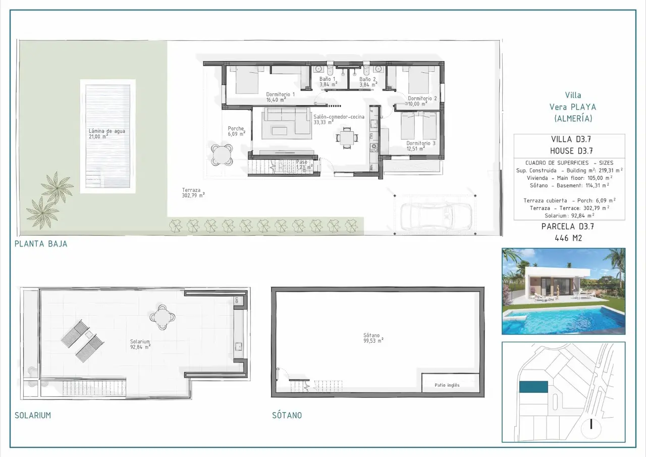 Nowo wybudowane wille w Vera Playa, Almería: nowoczesne domy blisko morza Współczesne życie w Pueblo Salinas, zaledwie 2 km od plaży Przedstawiamy imponującą nową inwestycję mieszkaniową położoną w popularnej okolicy Vera Playa, na terenie ekskluzywnej urbanizacji Pueblo Salinas. Ten nowoczesny kompleks oferuje wyjątkowy styl życia zaledwie 2 km od plaż Vera (Almería), ze spektakularnymi widokami na morze i spokojną śródziemnomorską atmosferą, idealną do zamieszkania przez cały rok lub spędzania wakacji. Eleganckie domy z nowoczesnym komfortem i stylem Nowa faza obejmuje 17 wysokiej jakości willi z 3 lub 4 sypialniami i 2 lub 3 łazienkami na jednym piętrze dla większej wygody. Z prywatnym basenem z pompą ciepła i parkingiem na działce z instalacją elektryczną do ładowania pojazdów, oferują maksymalny komfort w doskonałej lokalizacji, idealnej do cieszenia się słońcem, plażą i jakością życia na Morzu Śródziemnym przez cały rok. Niektóre z tych domów posiadają piwnicę (zapewniającą dodatkową przestrzeń, która można dostosować do własnych potrzeb i stylu życia) i/lub prywatny solarium na dachu z letnią kuchnią i pergolą z panelami słonecznymi. Wille mają eleganckie i funkcjonalne wnętrza, w pełni wyposażone kuchnie ze wszystkimi urządzeniami AGD, a także instalację klimatyzacji kanałowej. Wszystkie domy posiadają: W pełni wyposażone otwarte kuchnie z wbudowaną lodówką, zmywarką, płytą indukcyjną, piekarnikiem, kuchenką mikrofalową i okapem Przestronne i jasne pomieszczenia z oświetleniem LED w całym domu (z wyjątkiem sypialni) Zasłony z napędem elektrycznym w sypialniach Łazienki z nowoczesnymi wykończeniami, w tym ogrzewacze do ręczników, brodziki z szklanymi ściankami i wbudowane meble Instalacja klimatyzacji kanałowej System aerotermiczny do wydajnego wytwarzania ciepłej wody Drzwi wejściowe z zabezpieczeniem Doskonała lokalizacja z doskonałym połączeniem komunikacyjnym Vera Playa to popularna nadmorska miejscowość znana z rozległych piaszczystych plaż i spokojnego stylu życia. Lokalizacja osiedla zapewnia łatwy dostęp do wszystkich niezbędnych usług i atrakcji: Plaża: 2 km Desert Springs Golf Resort: 8 km Centrum Vera: 5 km Przystań jachtowa i restauracje w Garrucha: 6 km Park handlowy Mojácar: 10 km Lotnisko w Almerii: 85 km (1 godzina jazdy samochodem) Niech Vera Playa stanie się Twoim nowym domem Niezależnie od tego, czy szukasz stałego miejsca zamieszkania, wakacyjnej przystani, czy też mądrej inwestycji, te nowo wybudowane wille oferują niezrównaną wartość w jednej z najbardziej pożądanych lokalizacji na wybrzeżu Almerii. Skontaktuj się z nami już dziś, aby uzyskać więcej informacji i umówić się na wizytę.