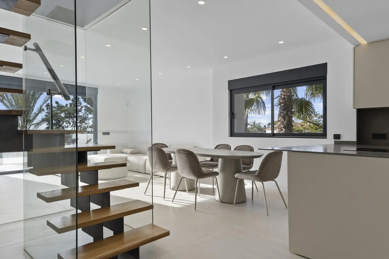 Luksusowe domy dwupoziomowe w dzielnicy El Paraiso w okolicy Estepony i Marbelli Ekskluzywne, nowo wybudowane rezydencje w doskonałej lokalizacji na Costa del Sol Odkryj tę wyjątkową, nową inwestycję obejmującą 40 luksusowych domów położonych w El Paraiso, jednej z najbardziej pożądanych dzielnic mieszkaniowych między Marbellą a Esteponą. Otoczona polami golfowymi i położona zaledwie 1500 metrów od plaży, ta uprzywilejowana lokalizacja oferuje idealne połączenie spokoju, ekskluzywności i łatwego dostępu do tętniącego życiem wybrzeża. El Paraiso słynie z spokojnej atmosfery, zielonej okolicy i bliskości najpopularniejszych miejsc, takich jak Puerto Banús, Marbella i Estepona. Mieszkańcy cieszą się wysoką jakością życia dzięki pobliskim restauracjom, sklepom, obiektom sportowym i międzynarodowym usługom. Przestronne domy dwupoziomowe z prywatnymi przestrzeniami zewnętrznymi Inwestycja oferuje wybór domów z 3, 4 i 5 sypialniami, zaprojektowanych z myślą o maksymalnym komforcie i nowoczesnym stylu życia. Nabywcy mogą wybierać między dwupoziomowymi nieruchomościami na parterze z prywatnymi ogrodami i basenami a dwupoziomowymi penthouse’ami z dużymi tarasami, solarium na dachu i prywatnymi jacuzzi z przepięknym widokiem na morze. Nowoczesne wnętrza z wysokiej klasy wykończeniem Każdy dom posiada jasną, otwartą część dzienną i jadalnię połączoną z w pełni wyposażoną kuchnią z piekarnikiem i kuchenką mikrofalową. Projekt skupia się na stworzeniu przestronnych i funkcjonalnych wnętrz, idealnych zarówno do codziennego życia, jak i do przyjmowania gości. Domy na parterze posiadają wydzieloną strefę grillową, idealną do spożywania posiłków na świeżym powietrzu i cieszenia się śródziemnomorskim klimatem. Zaawansowana technologia i funkcje premium Nieruchomości te zostały zbudowane z materiałów najwyższej jakości i wyposażone w nowoczesną technologię, aby zapewnić komfort i wydajność. Wyposażenie obejmuje klimatyzację kanałową z systemem Airzone, elektryczne rolety oraz wzmocnione drzwi wejściowe z inteligentnymi systemami zamykania. Kompletny system automatyki domowej pozwala na sterowanie oświetleniem, klimatyzacją i zabezpieczeniami, zapewniając wygodę i spokój ducha. Każda nieruchomość posiada co najmniej jedno miejsce parkingowe oraz pomieszczenie gospodarcze. Wyjątkowe przestrzenie wspólne i udogodnienia Mieszkańcy mogą korzystać z pięknie zaprojektowanych przestrzeni wspólnych, w tym z podgrzewanego basenu, w pełni wyposażonej siłowni oraz ogrodów krajobrazowych. Osiedle posiada również plac zabaw dla dzieci, windy z dostępem do piwnicy oraz systemy bezpiecznego wejścia z monitoringiem wizyjnym. Doskonała lokalizacja w pobliżu pól golfowych, plaży i kluczowych atrakcji Osiedle jest idealnie położone w pobliżu kilku prestiżowych pól golfowych, takich jak El Paraiso Golf Club i El Campanario Golf, oba w odległości 1 km. Plaża znajduje się zaledwie 1,5 km dalej, Puerto Banús około 8 km, a centrum Marbelli około 15 km. Międzynarodowe lotnisko w Maladze znajduje się w odległości około 65 km, zapewniając doskonałe połączenia dla podróży międzynarodowych. Idealna inwestycja i okazja do luksusowego stylu życia Te ekskluzywne domy oferują idealne połączenie lokalizacji, projektu i stylu życia, co czyni je idealnymi jako stałe miejsce zamieszkania, dom wakacyjny lub inwestycję na Costa del Sol. Skontaktuj się z nami już dziś, aby uzyskać więcej informacji lub umówić się na oglądanie i zapewnić sobie nowy luksusowy dom w El Paraiso. 968